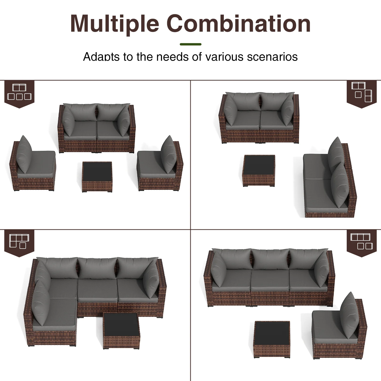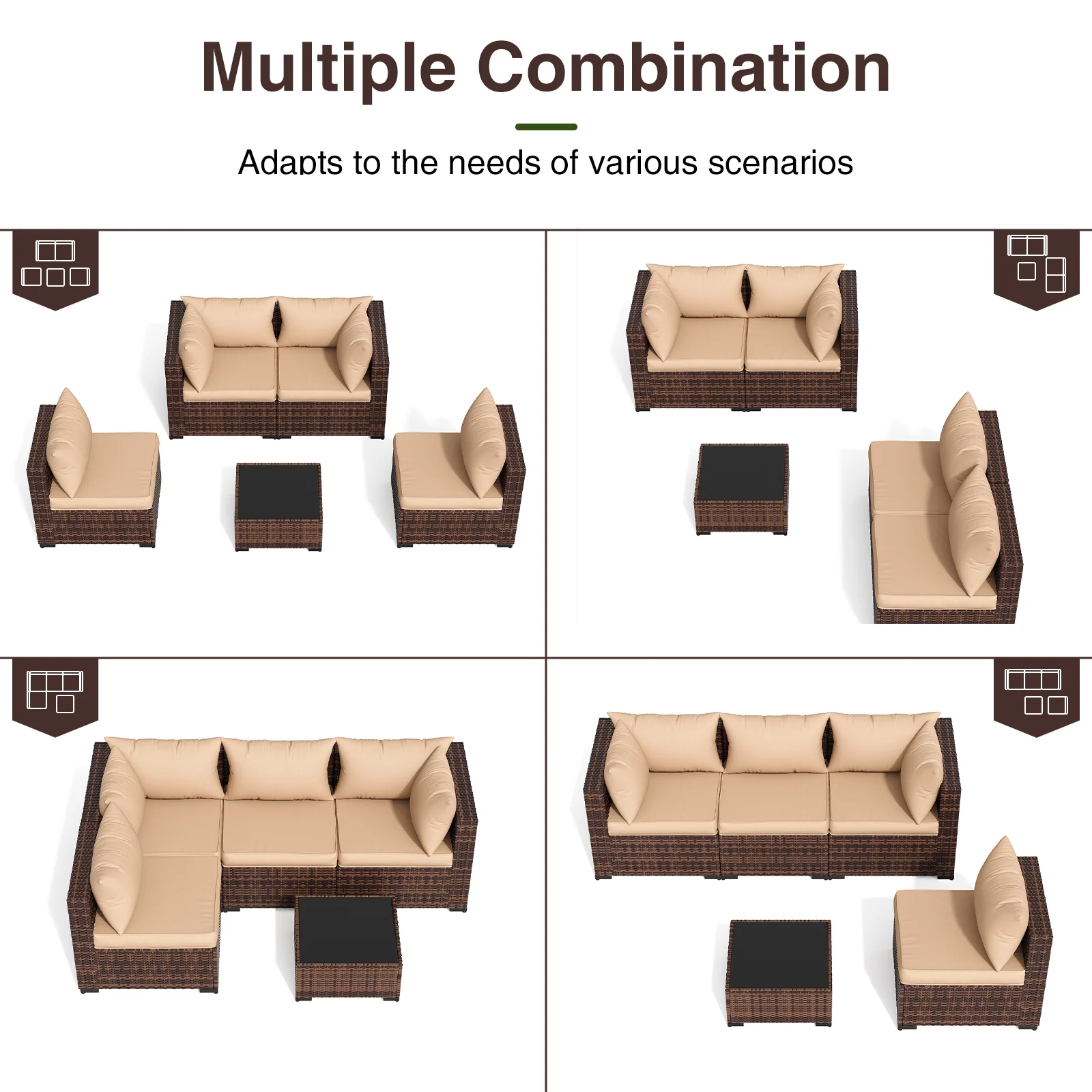 - Free Combination & Worry-free Assembly: The outdoor sofa comes with a detailed instruction, you can easily install this patio conversation sets outdoor couch according to the tutorial. This small patio furniture outdoor furniture set can be easily changed into different layouts, you can freely combine the patio furniture sets patio sofa according to your needs.