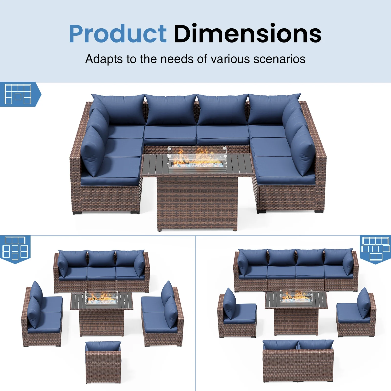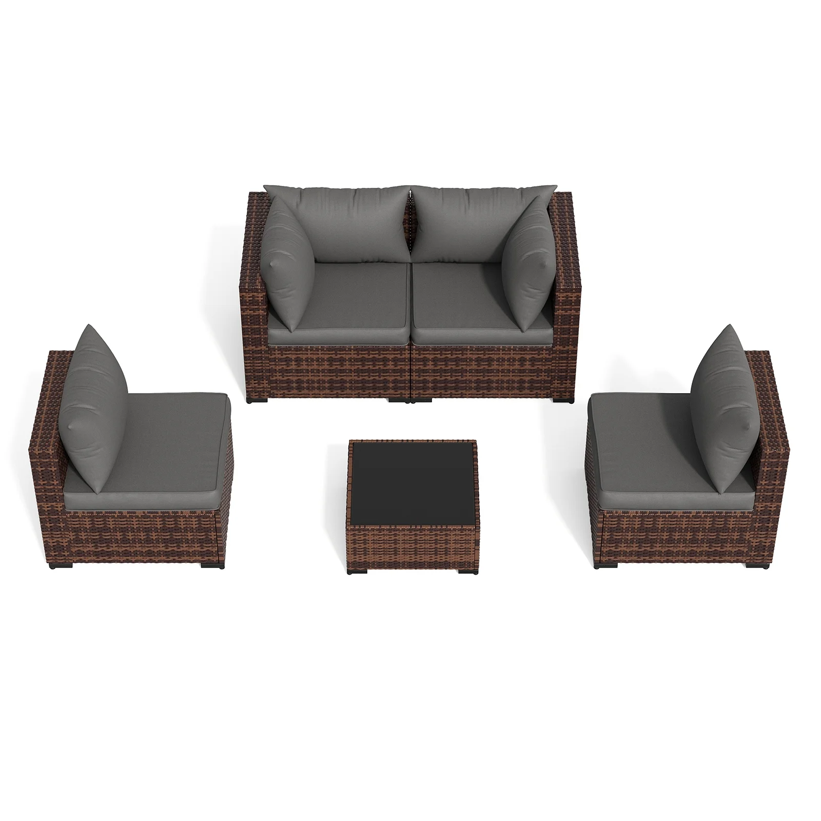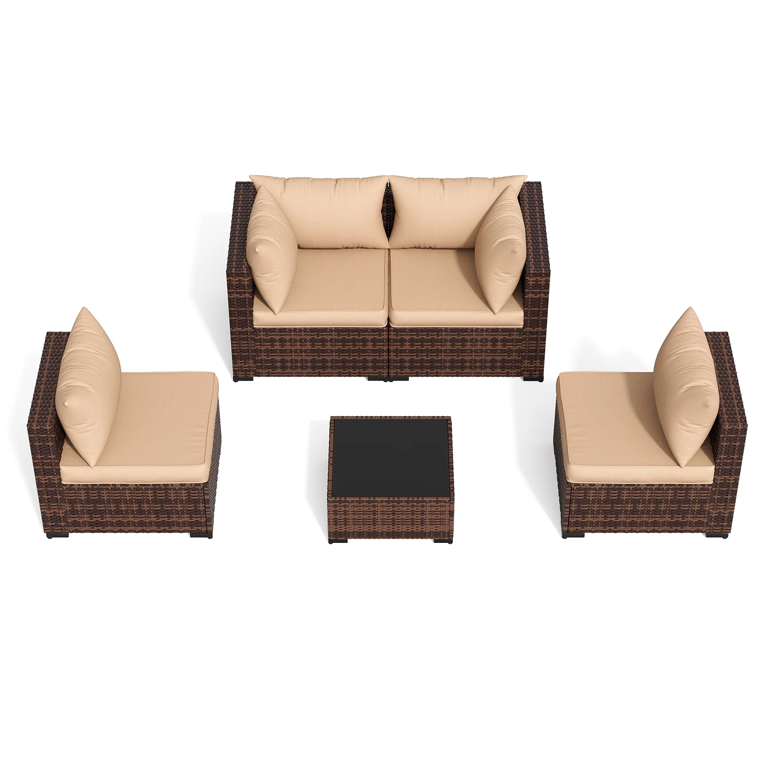 - Comfortable Patio Furniture Sets & Modern Design: This outdoor patio furniture set offers a super comfortable seating experience. Its couch set cushion and Back pillow are filled with high-rebound sponge. The sofa sectional seat has sufficient width and depth, and the 3-inch thickened seat cushion is very soft. Placing the small patio furniture in your outdoor space makes your home more beautiful and elegant.