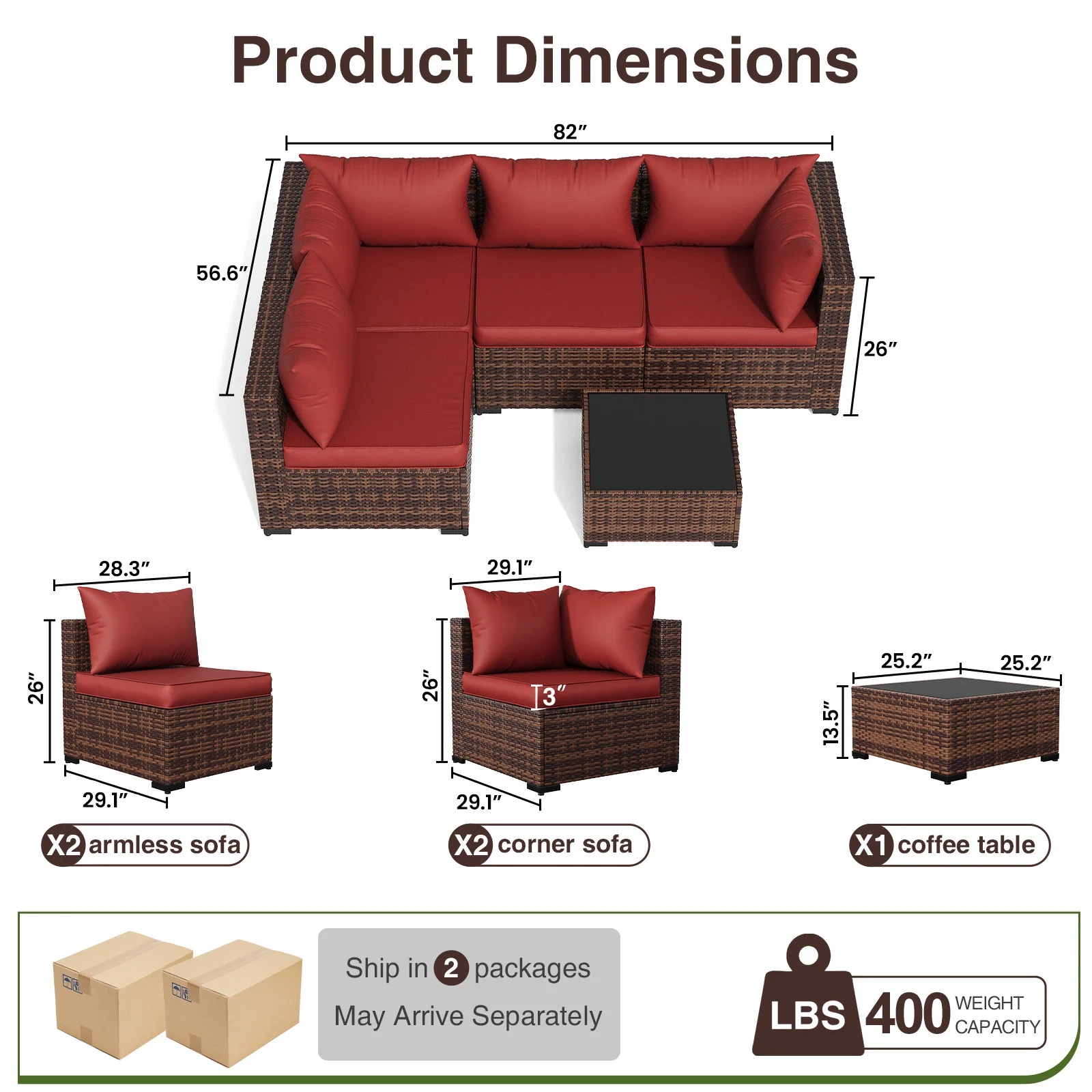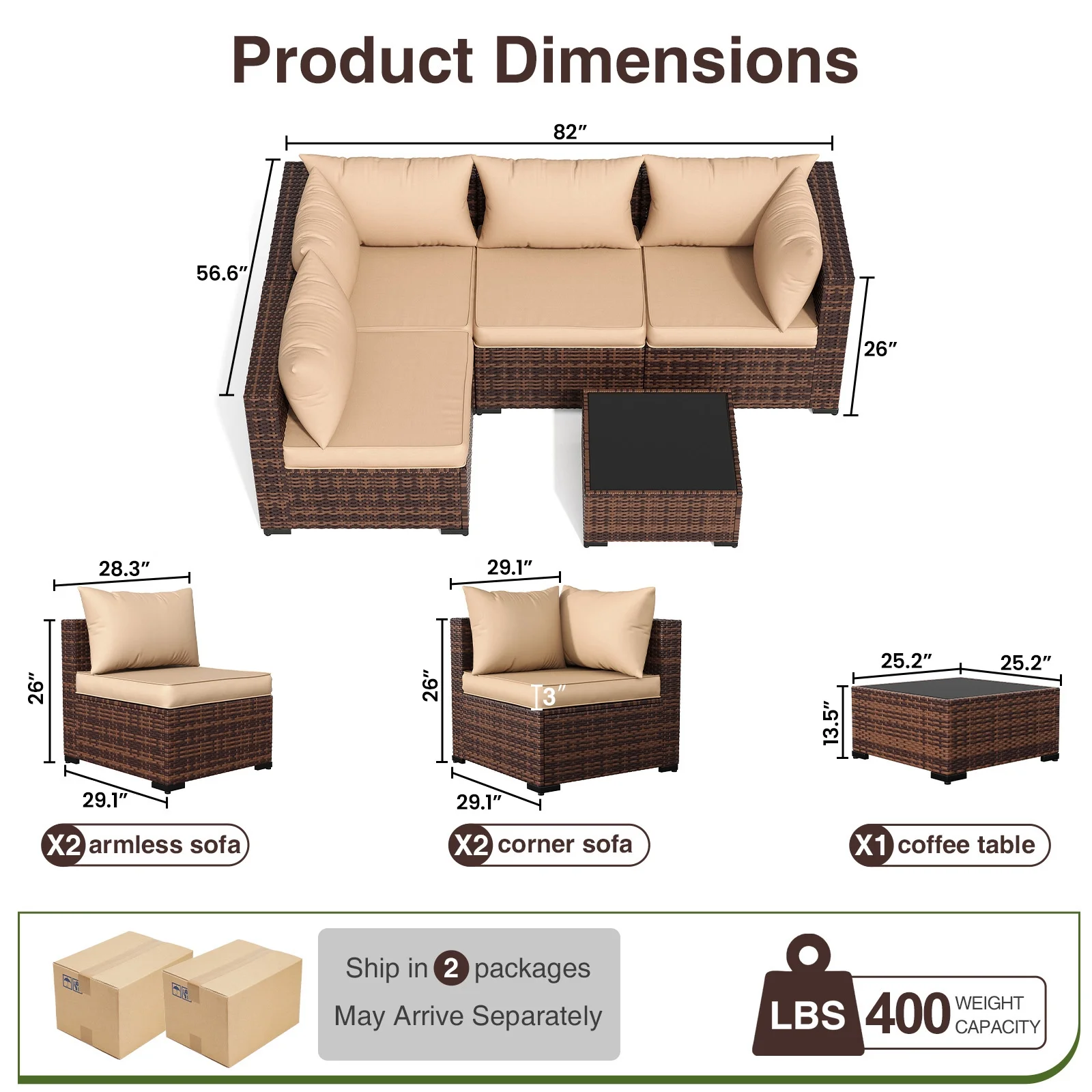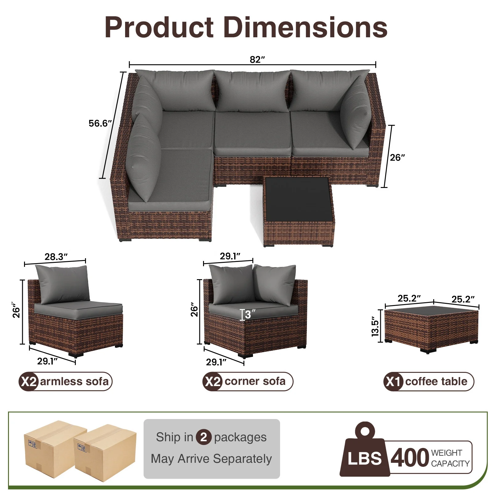 - This patio furniture sofa comes packaged in 2 separate cardboard boxes, you may receive wicker outdoor furniture porch furniture set at different days.