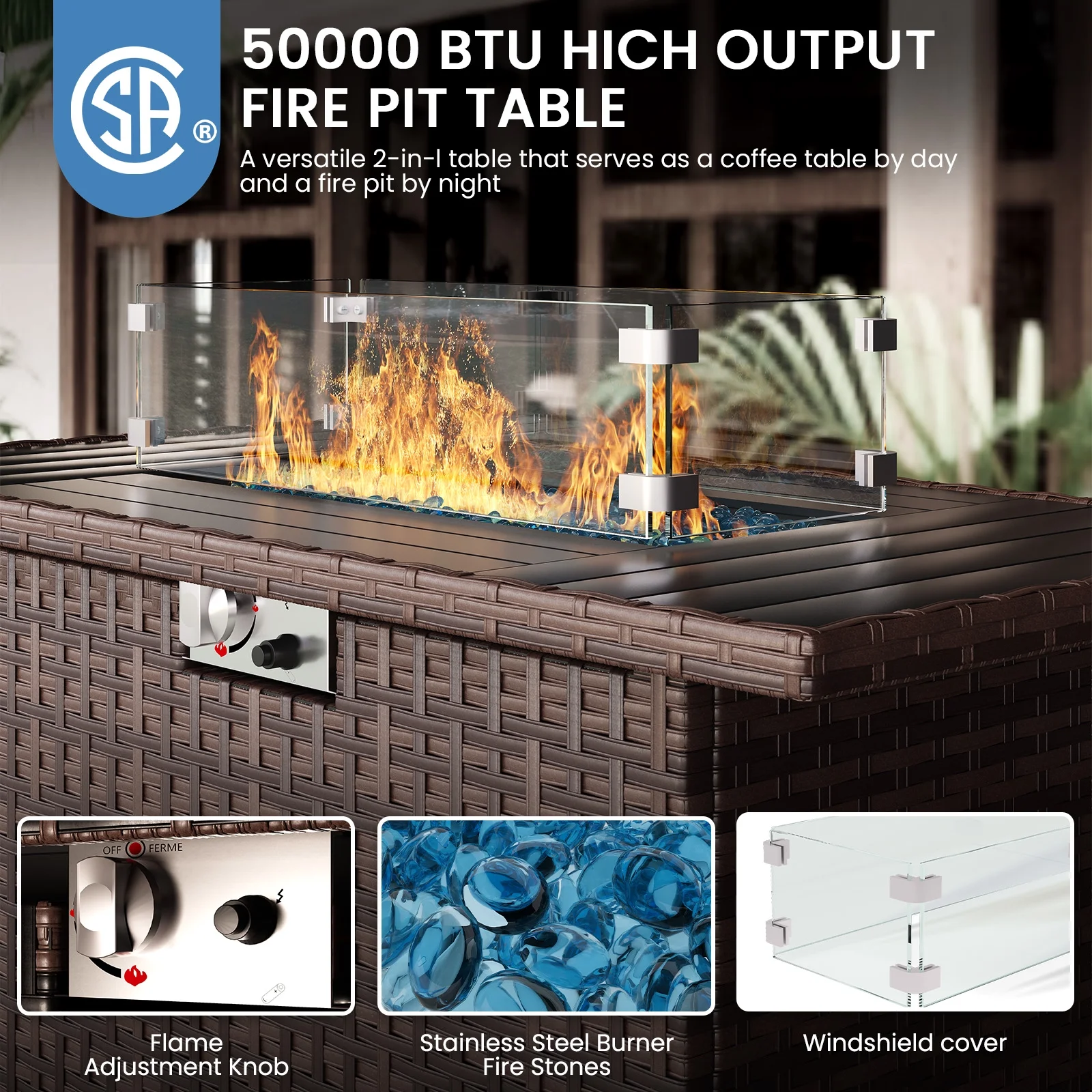 - 1 tempered glass rattan coffee table