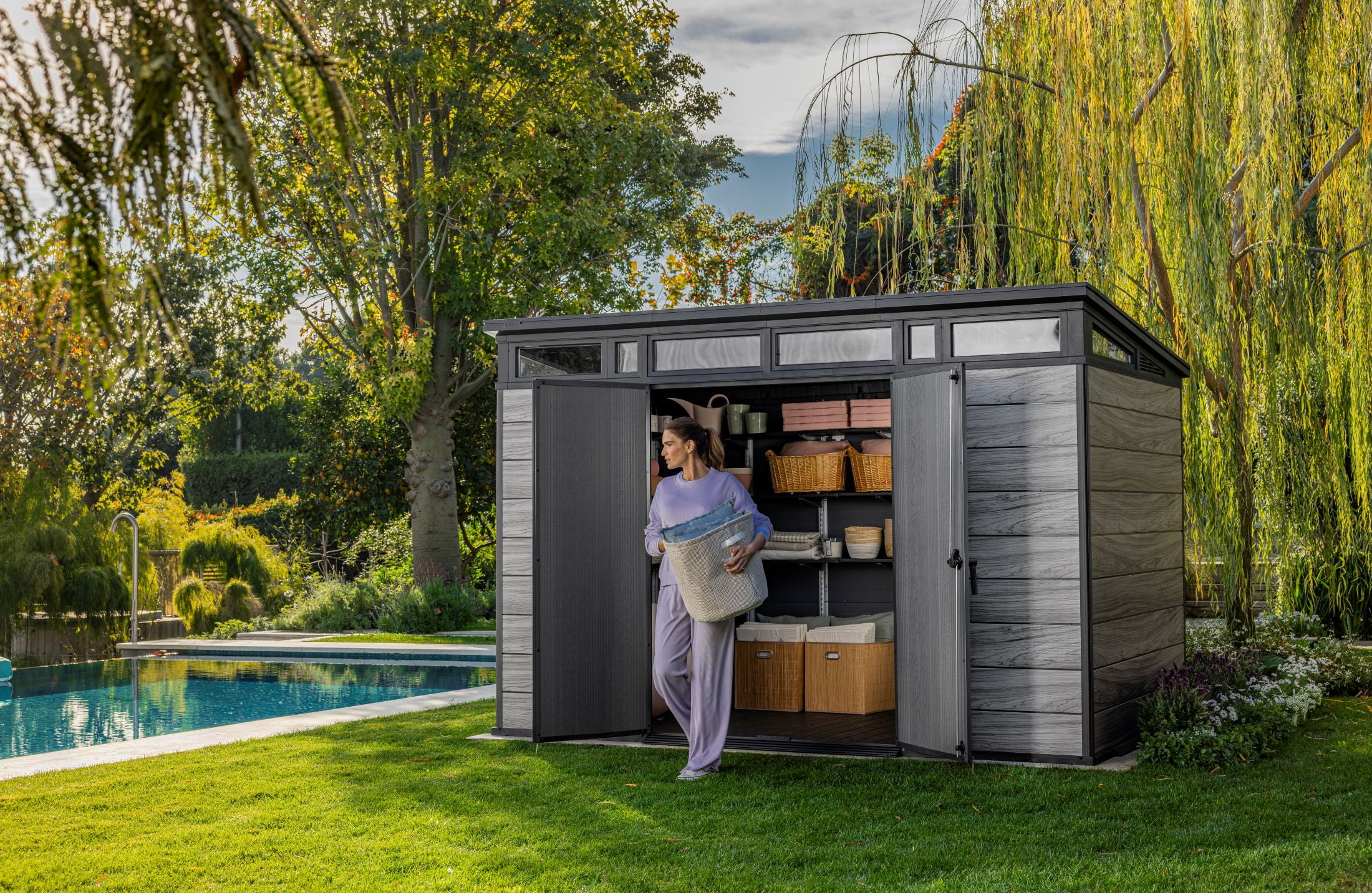 - Premium construction in stunning wood-look finishes, delivers style and beauty your outdoor storage.