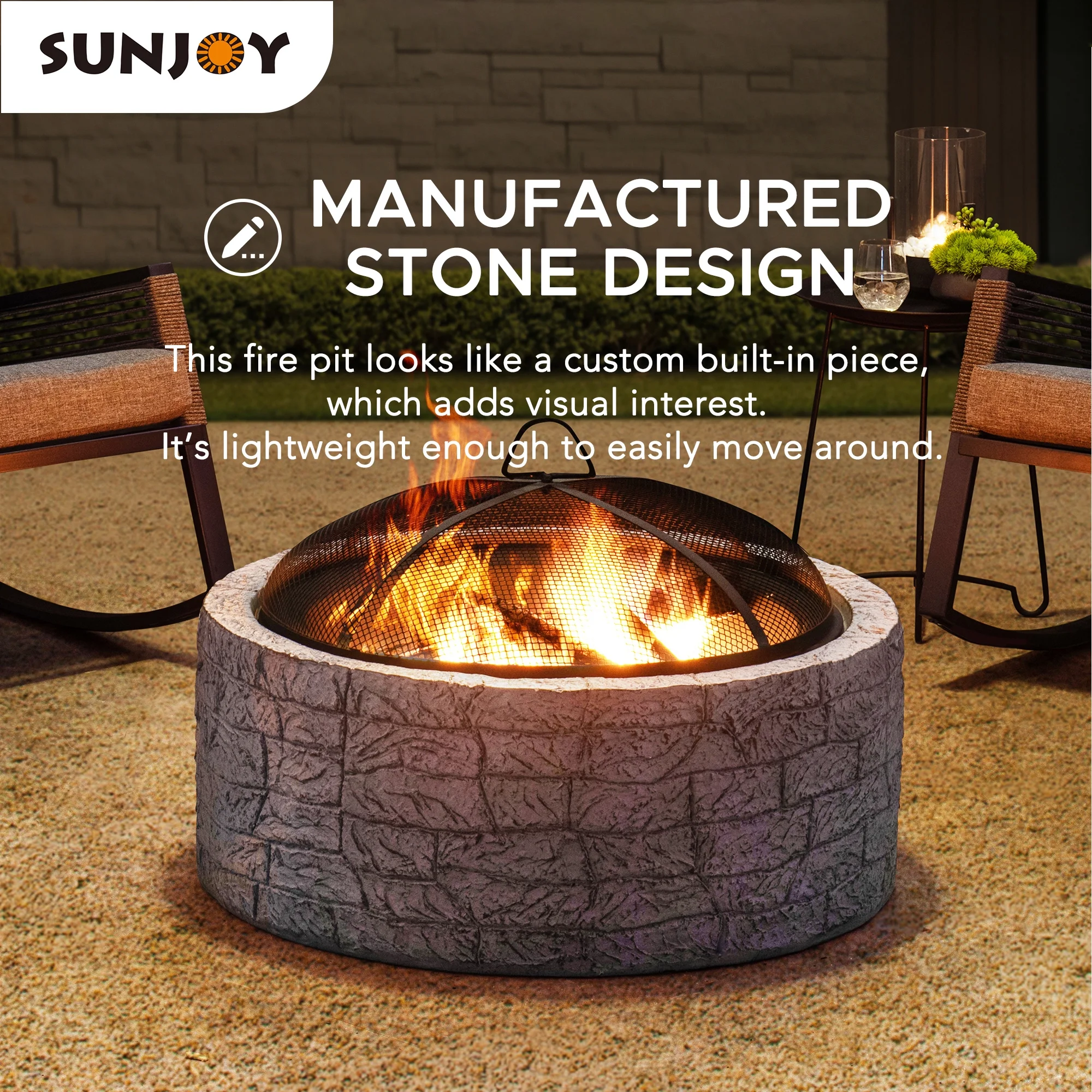 - Manufactured Stone Design: Featuring a unique manufactured stone design, this wood burning fire pit looks like a custom built-in piece, which adds visual interest. In addition, it��s lightweight enough to easily move around.