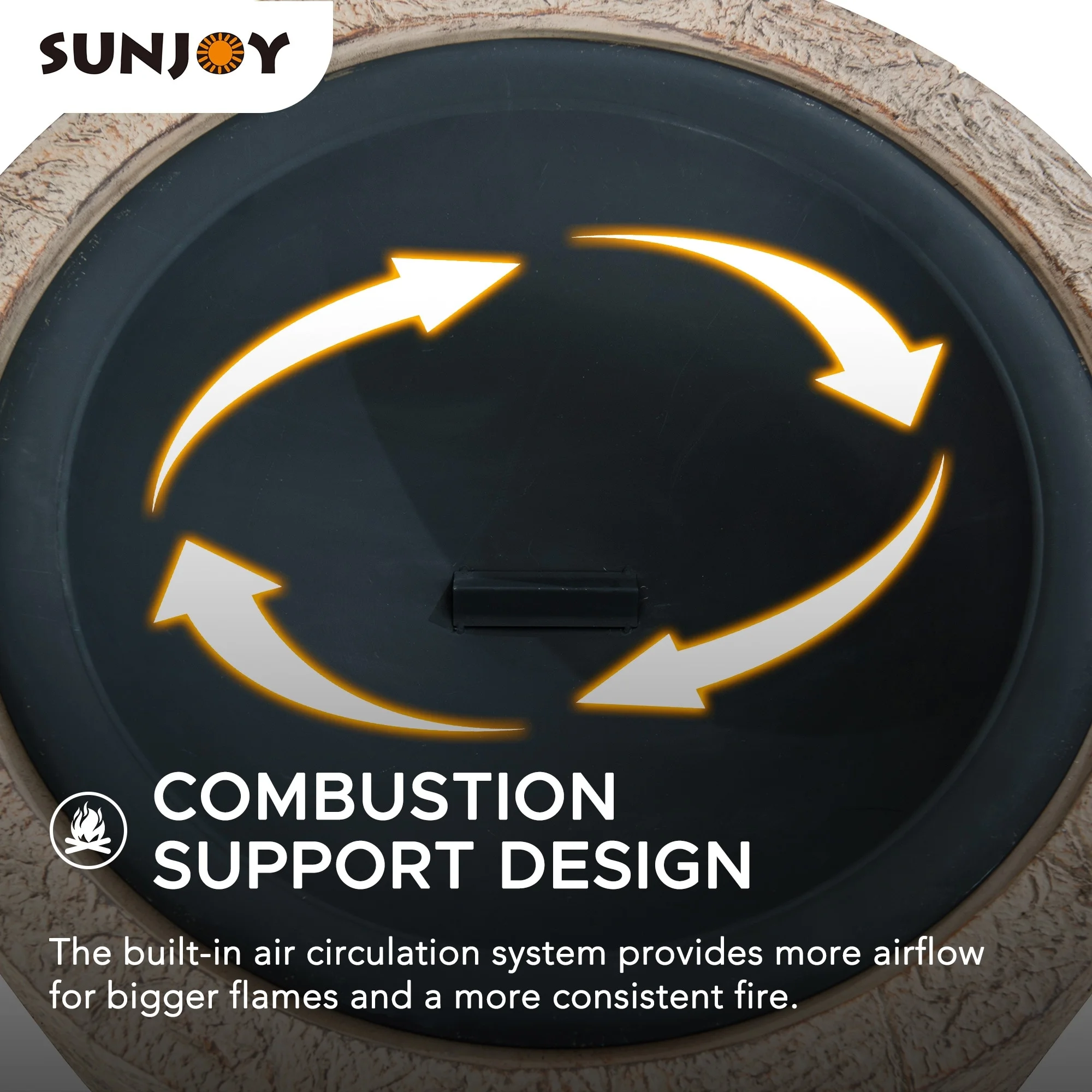 - Combustion Support Design: The built-in air circulation system provides more airflow for bigger flames and a more consistent fire, by improving air circulation and combustion.