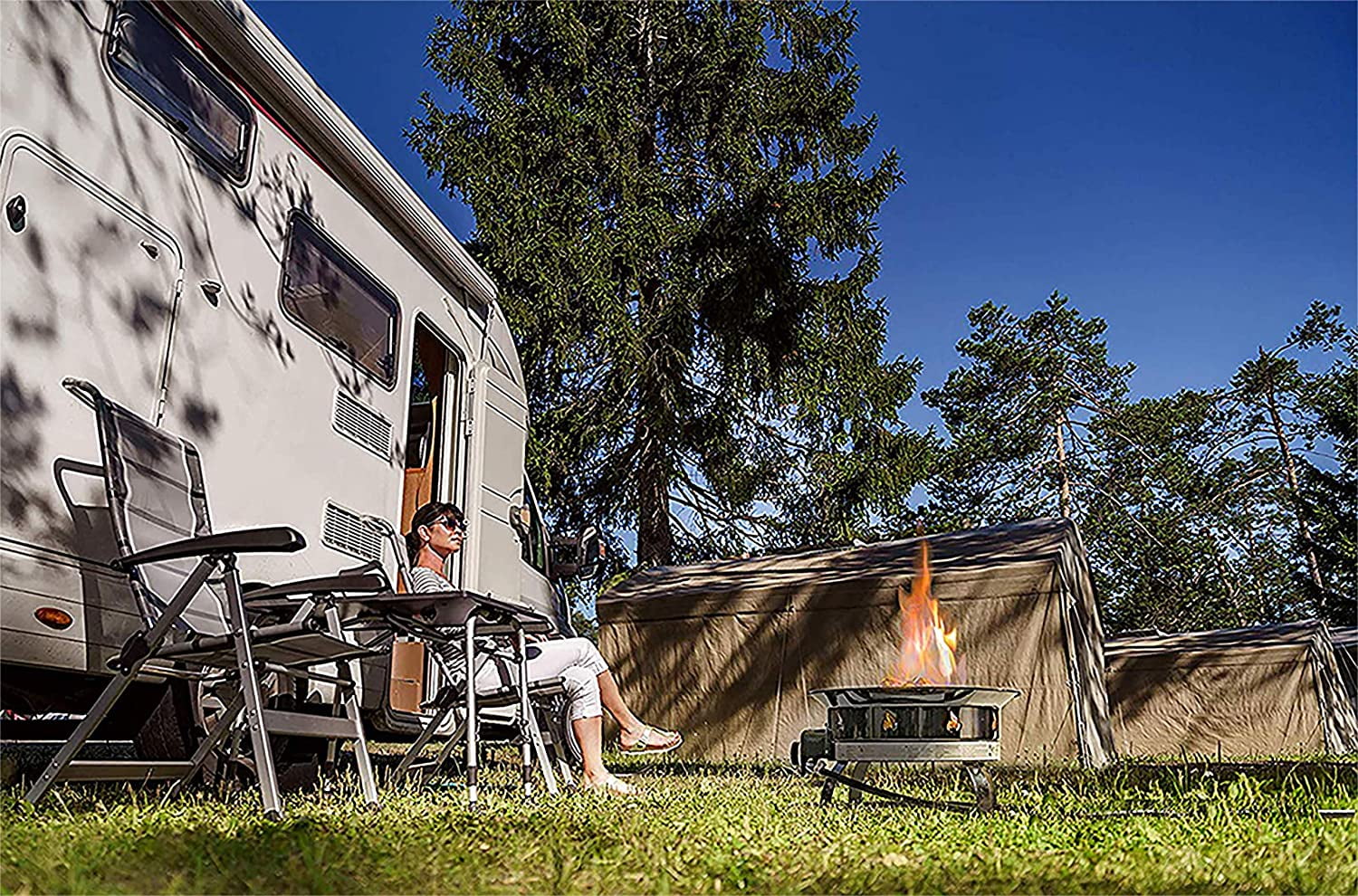 - Perfect no mess campfire: with our fire pit say goodbye to dirty ash, expensive firewood, and bothersome smoke and enjoy a clean realistic propane fire pits for outside. The perfect outdoor fireplace for camping trips, RV travels, tailgating get-togethers, beach parties, and family evenings on the backyard patio.