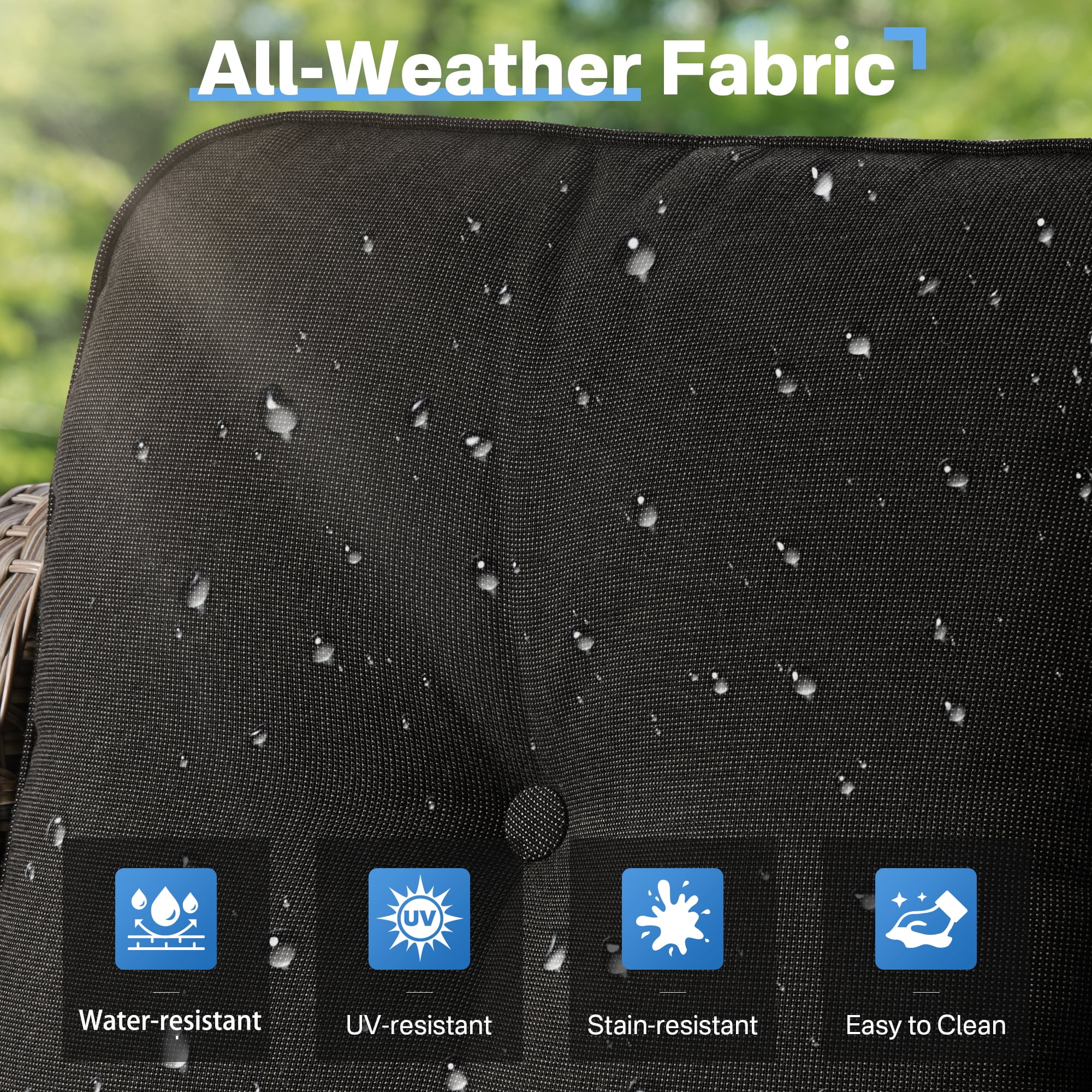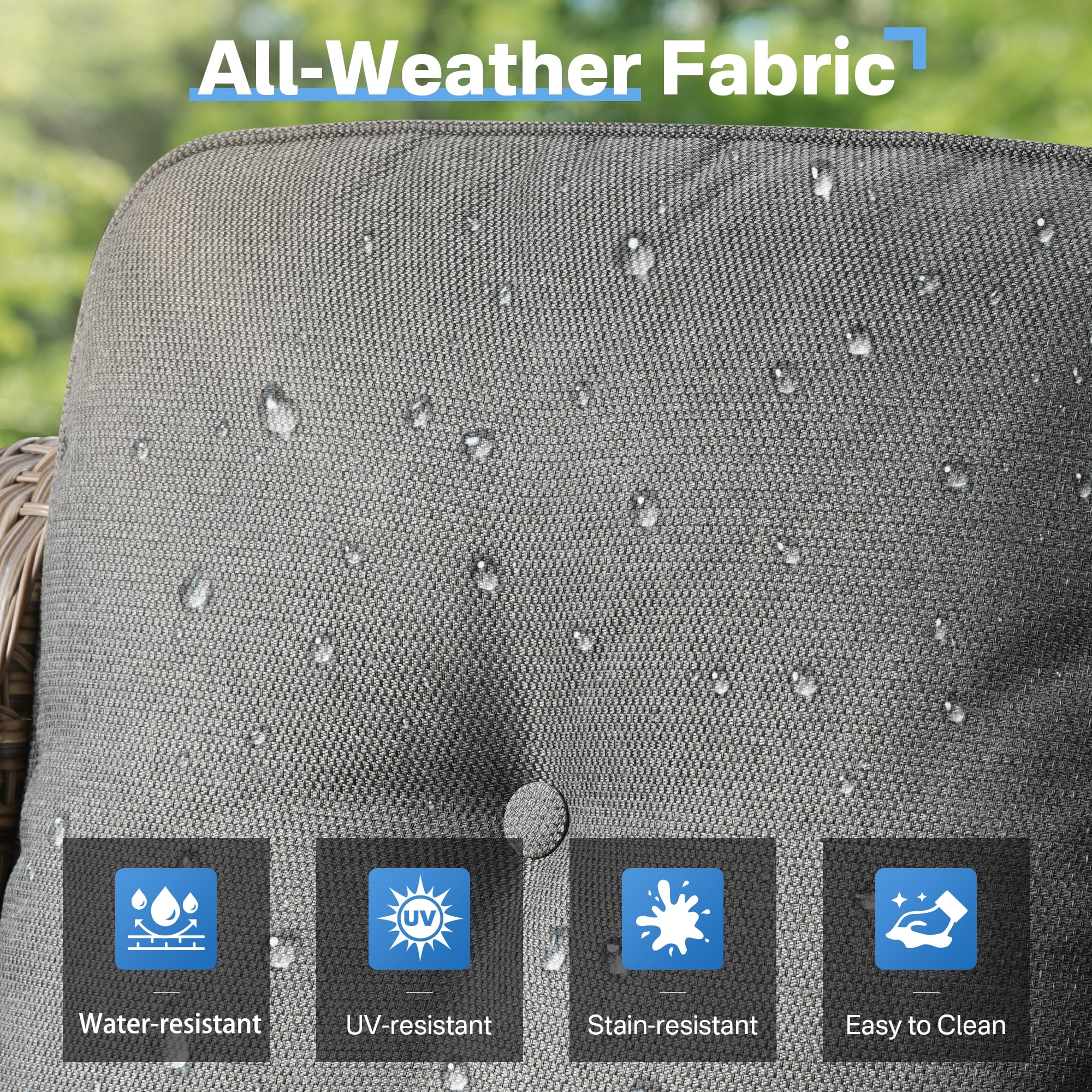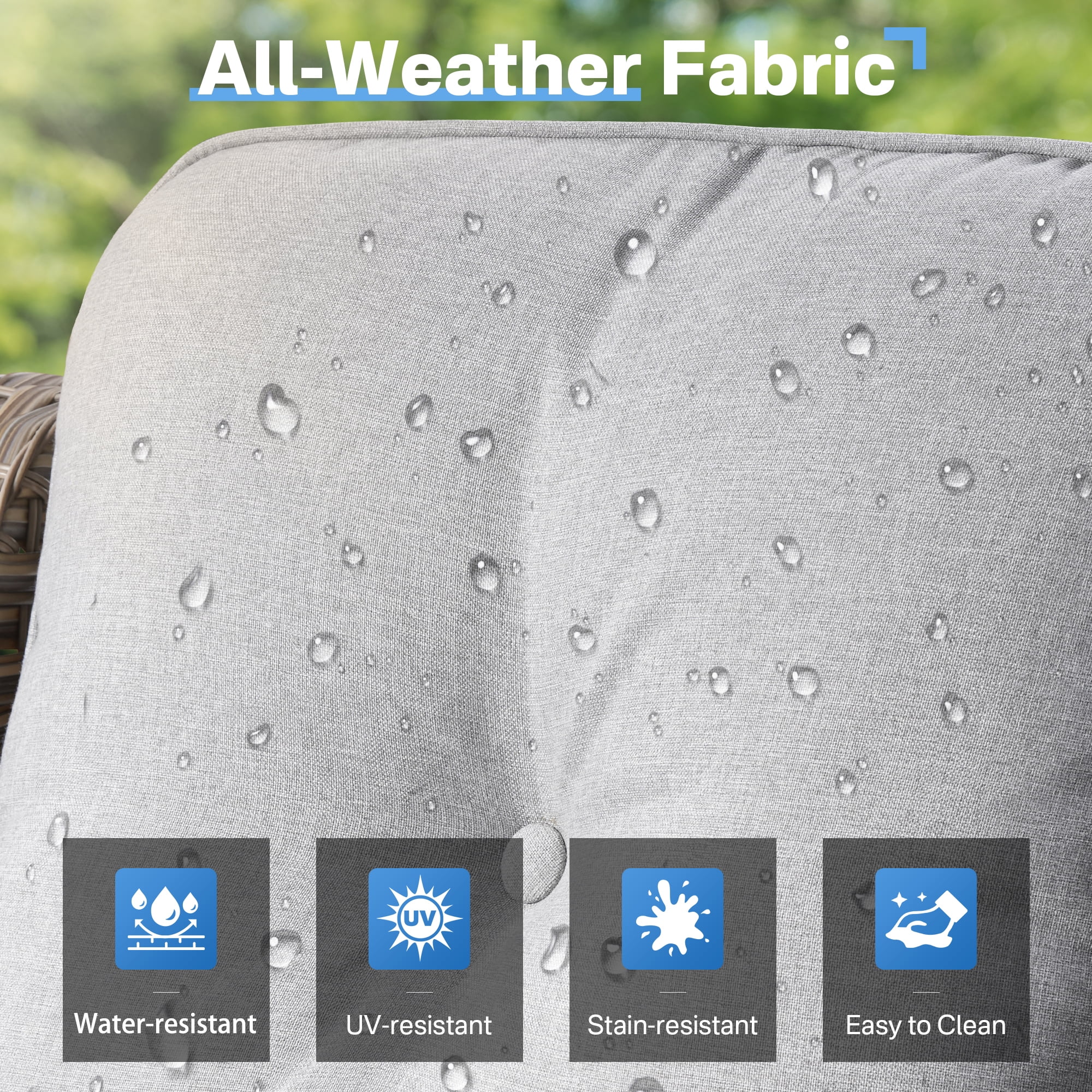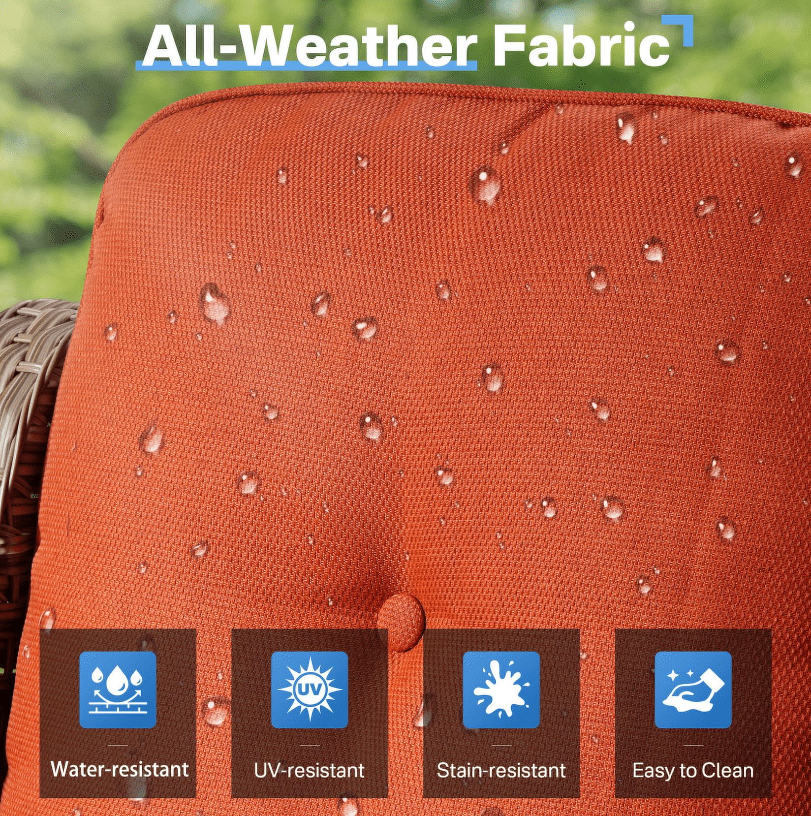 - Durable All Weather Wicker : Crafted for longevity, it is designed to withstand the elements. UV-resistant to prevent sun damage, anti-tear for lasting durability, and anti-aging to keep it looking great for years, its all-weather ensures it holds up against wind, and sun