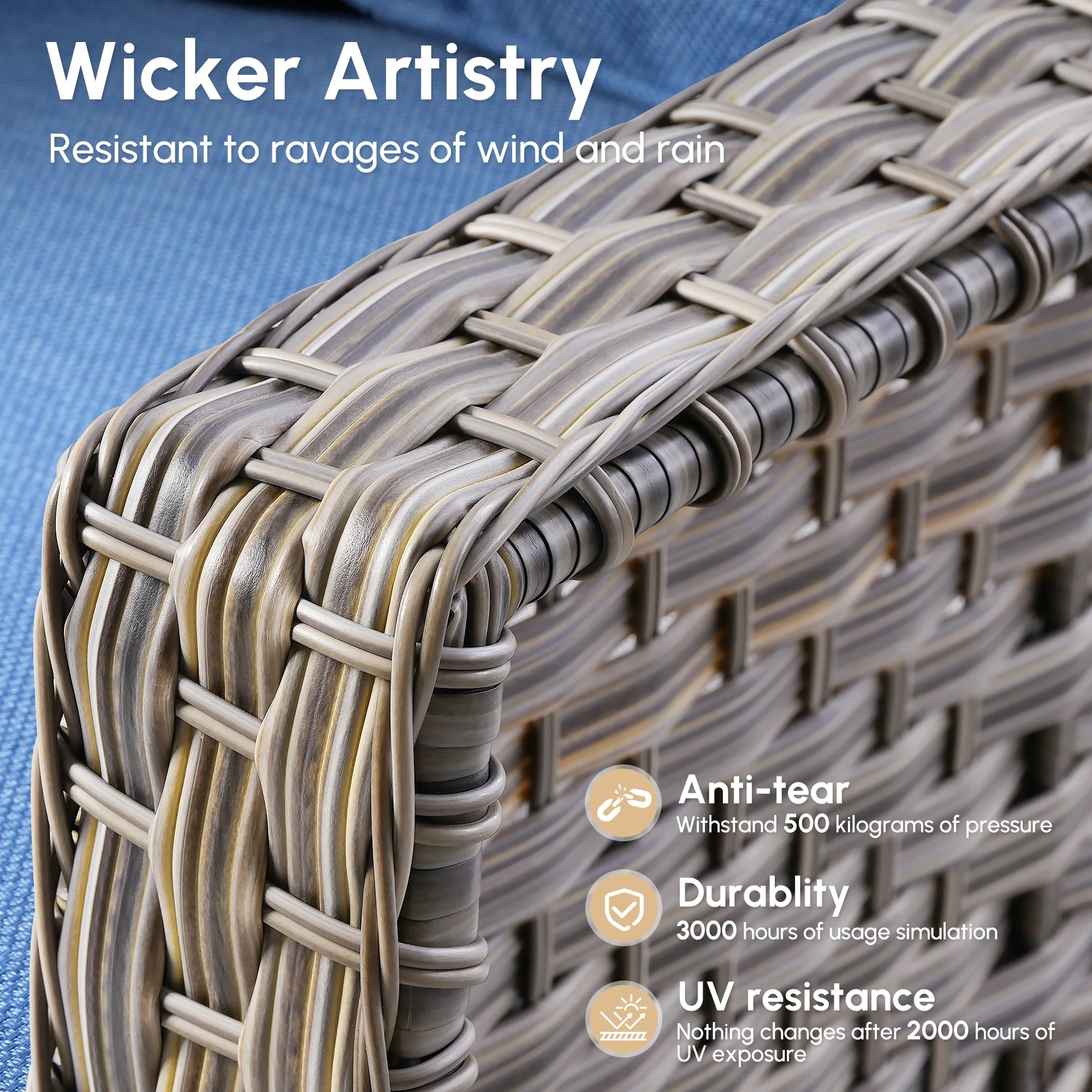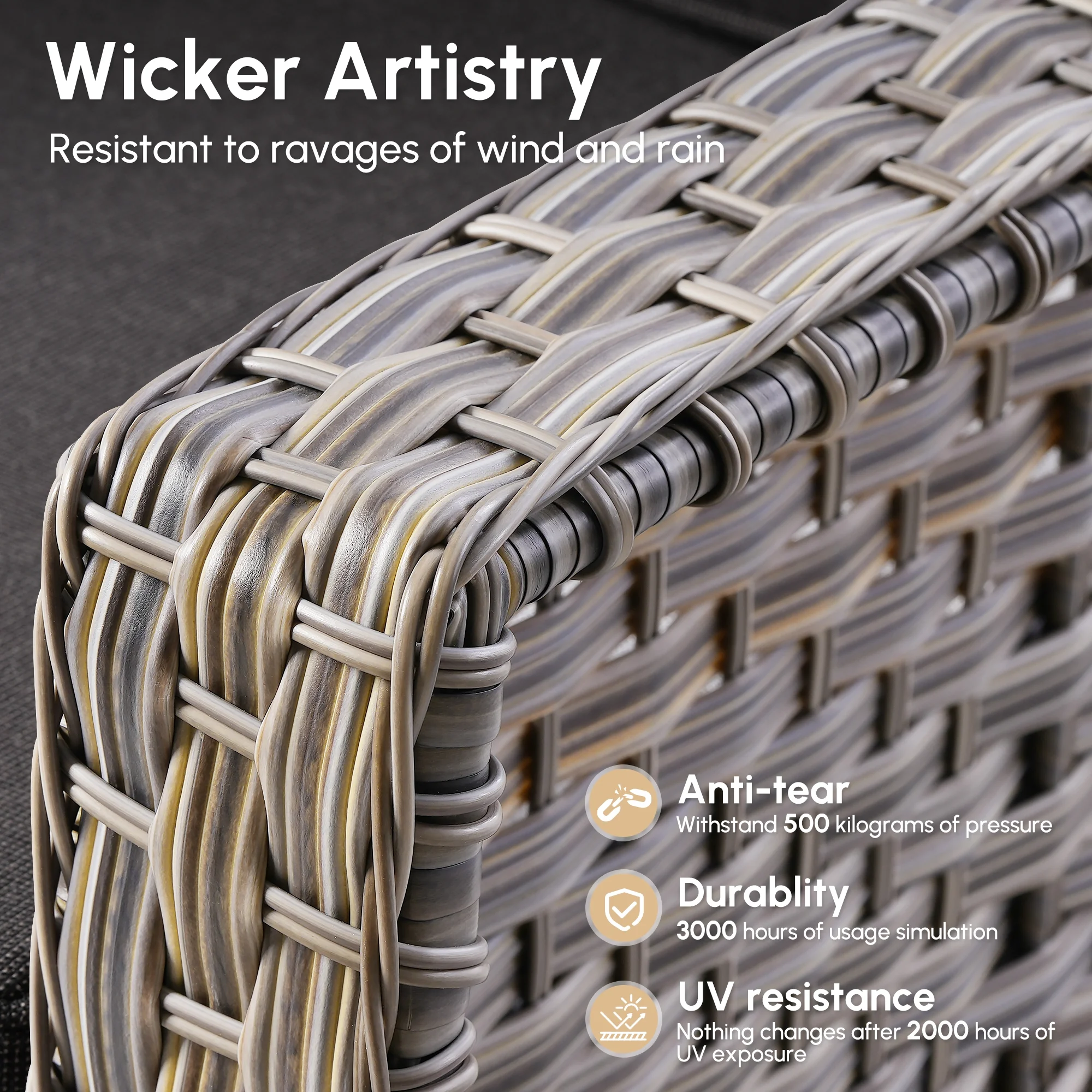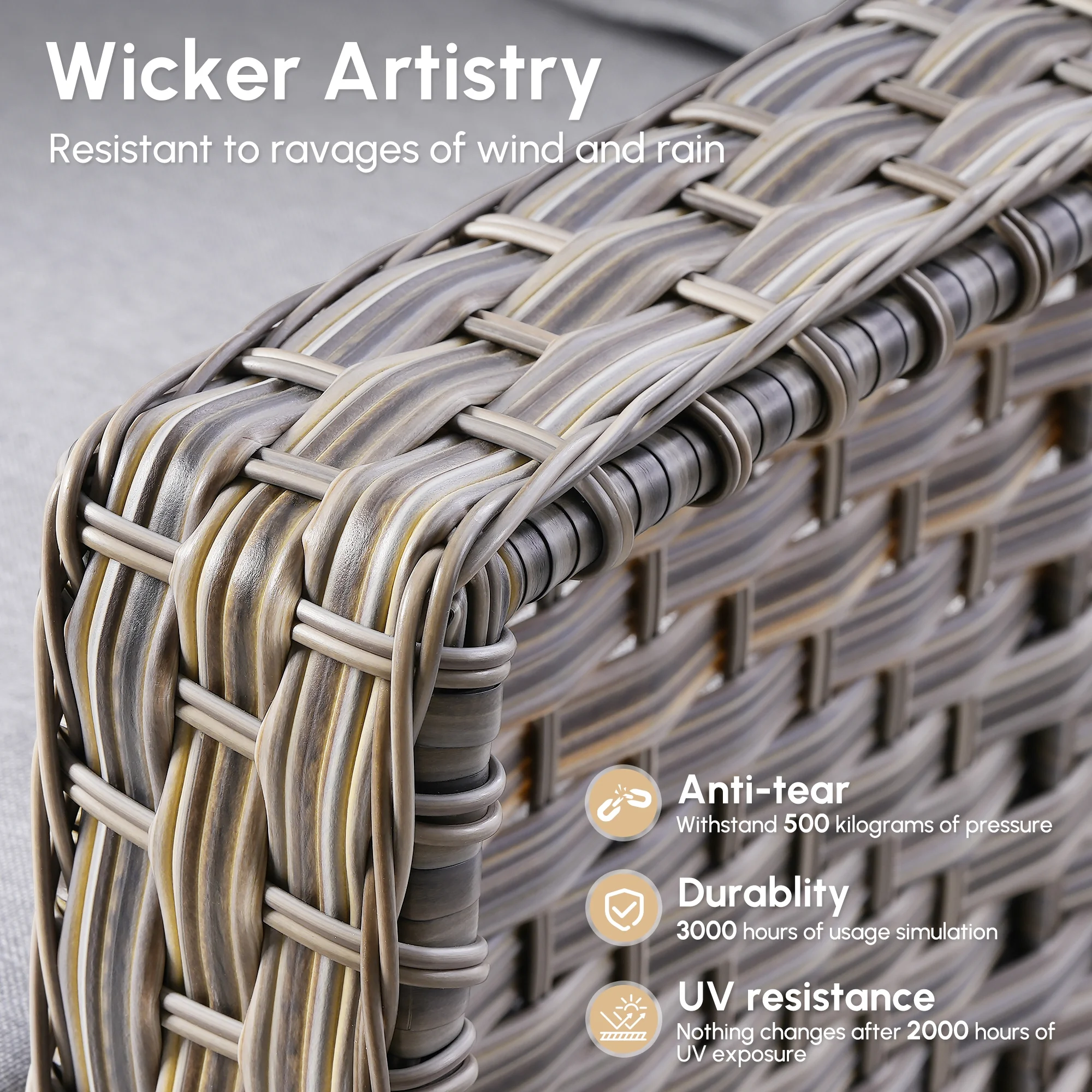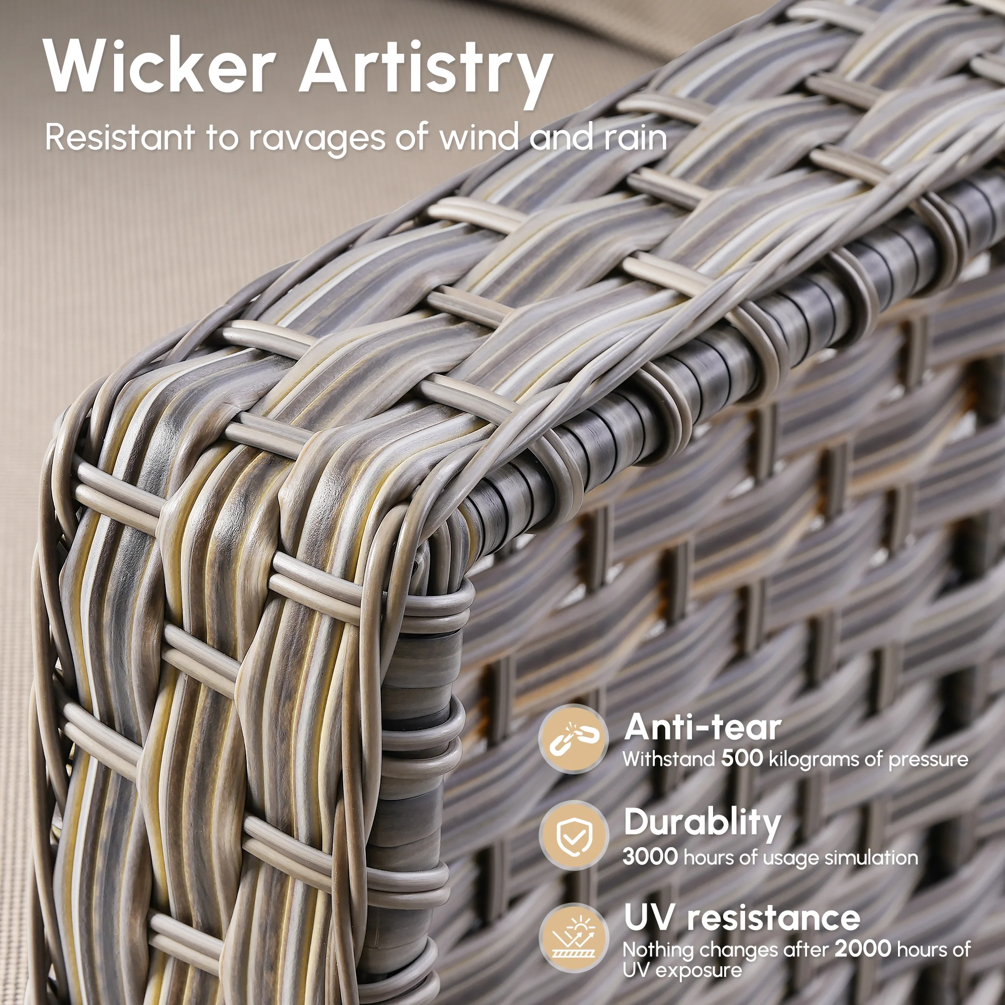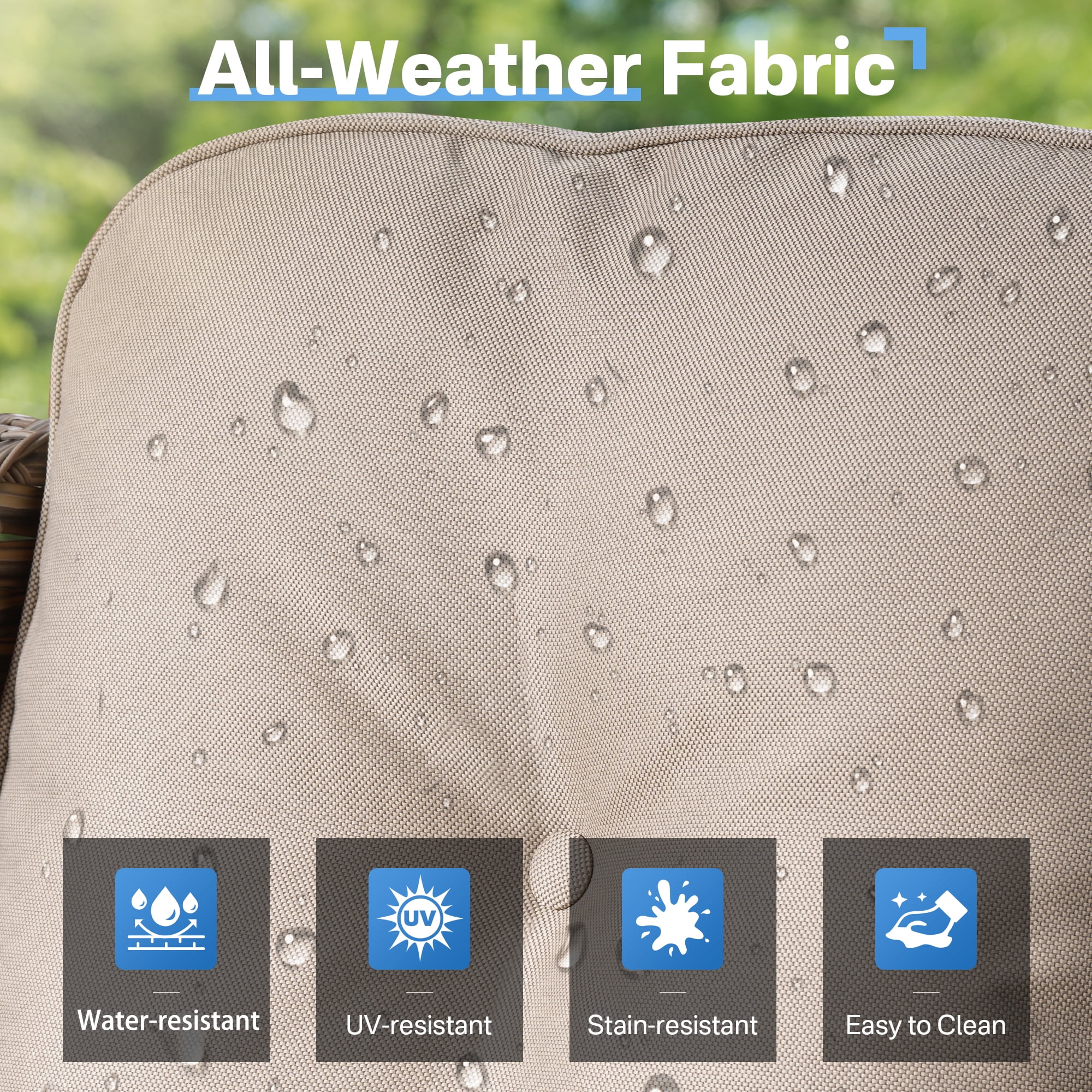 - Durable All Weather Wicker : Crafted for longevity, it is designed to withstand the elements. UV-resistant to prevent sun damage, anti-tear for lasting durability, and anti-aging to keep it looking great for years, its all-weather ensures it holds up against wind, and sun