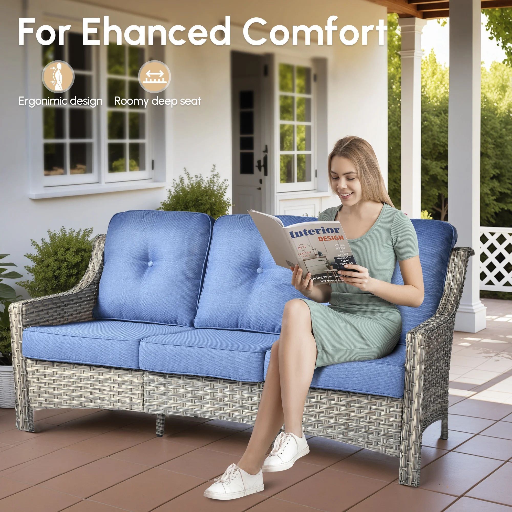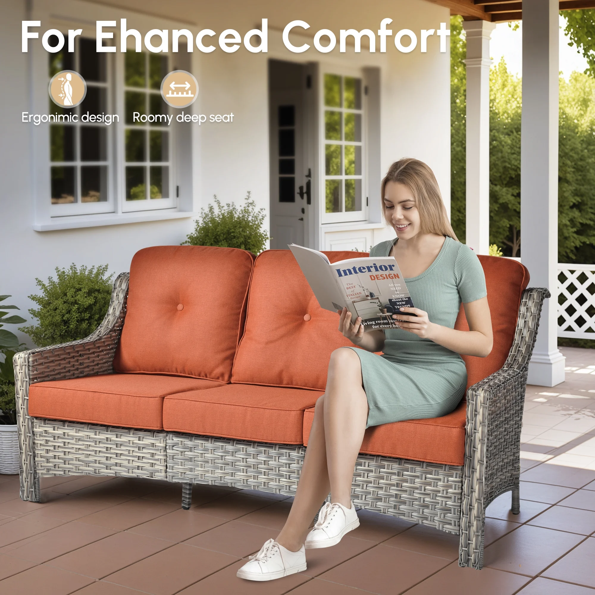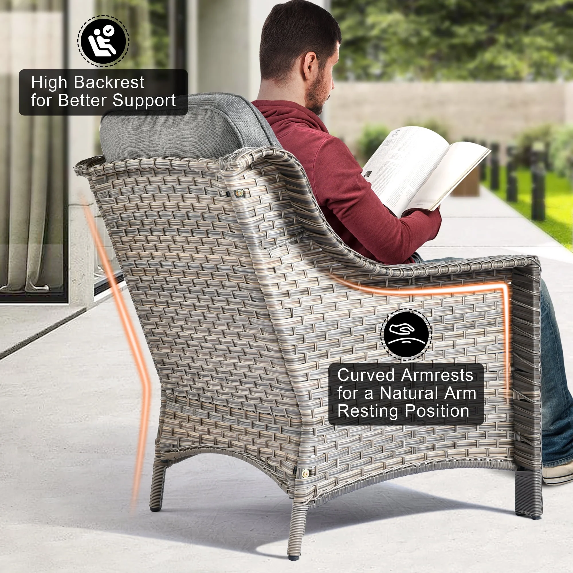 - Comfortable Seating: This conversation set features generously padded 3.54" thick cushions and high density sponge, designed to offer exceptional support for extended periods of sitting, ideal for long. The thickness helps maintain the shape and resilience of the cushions
