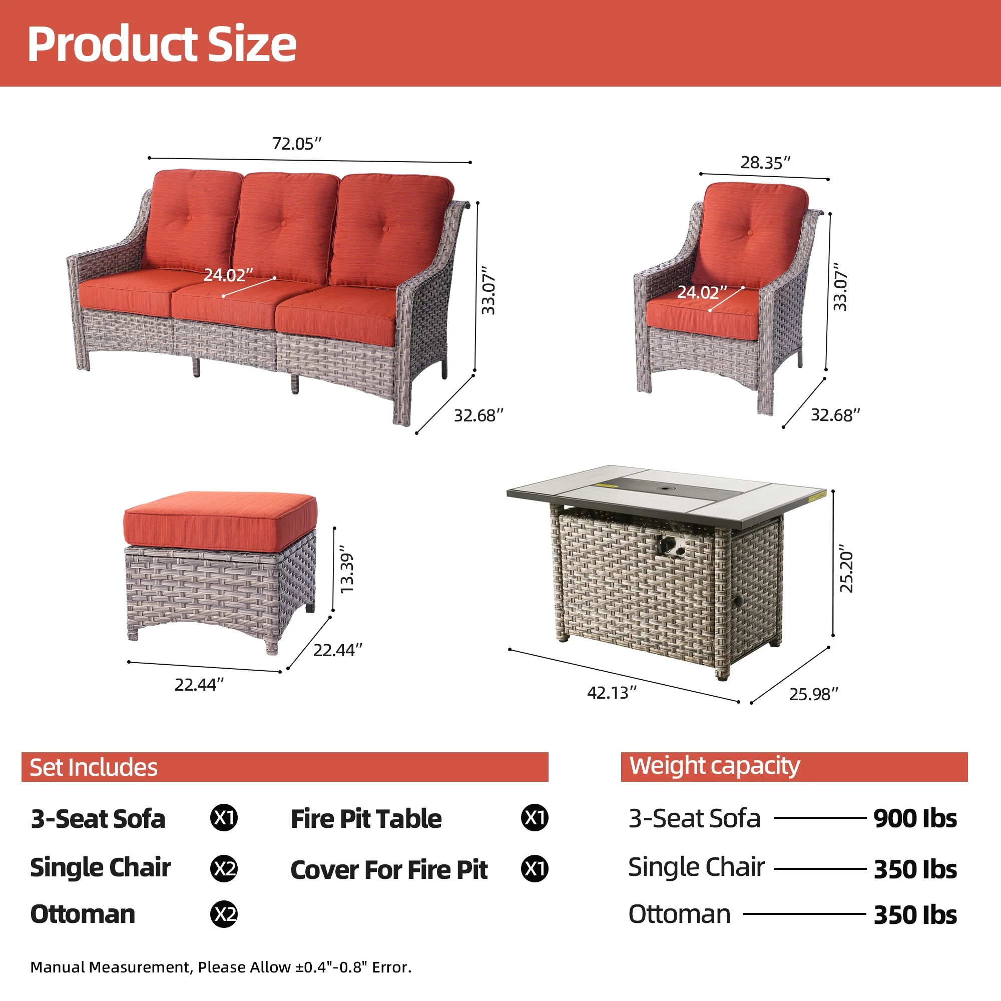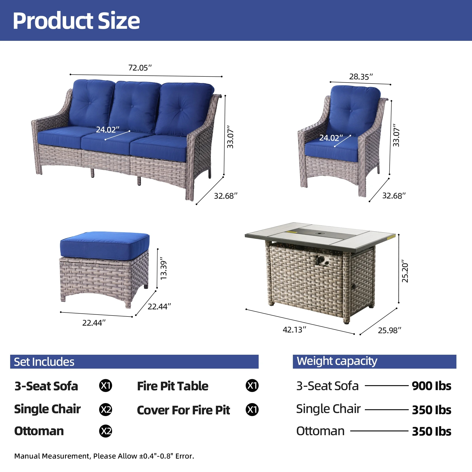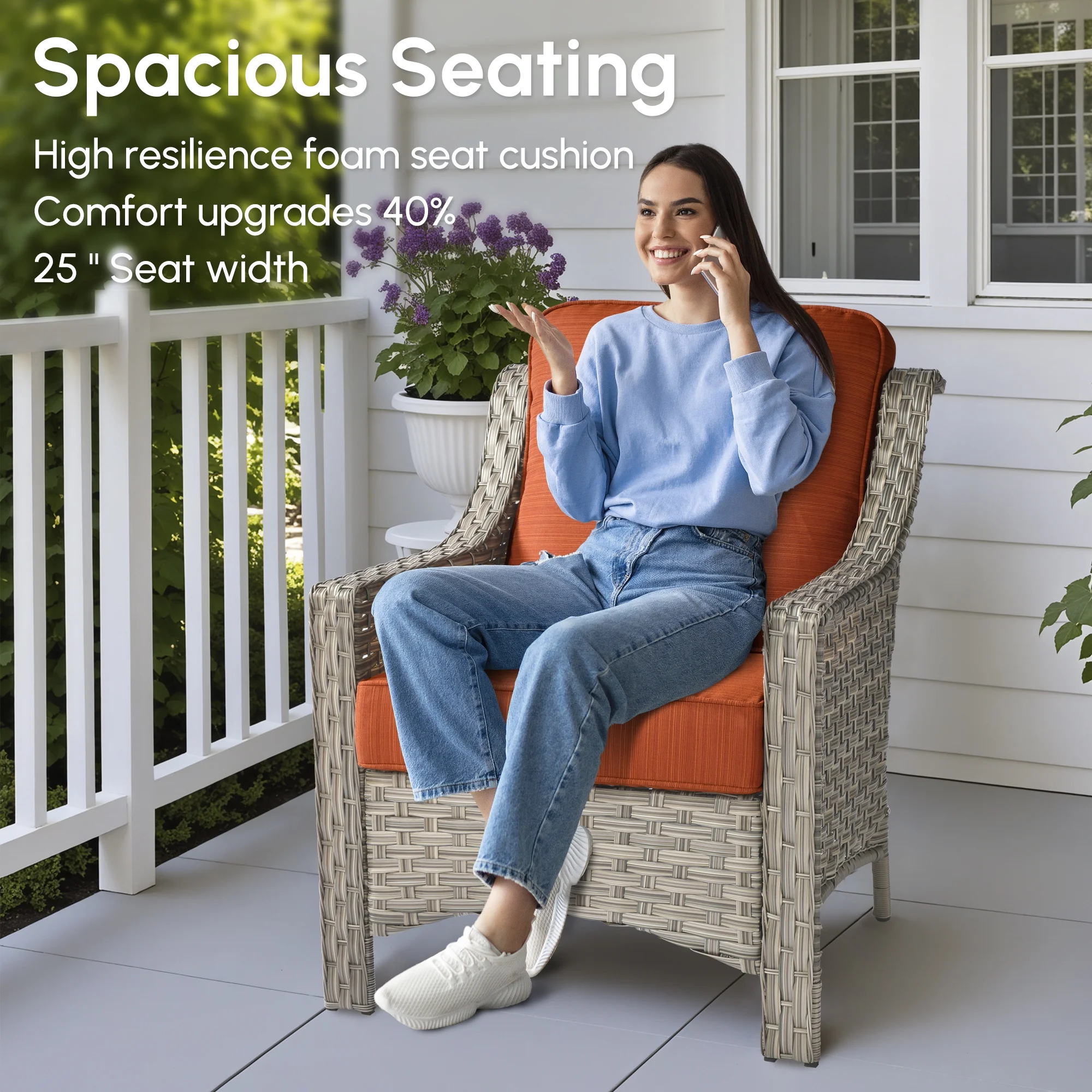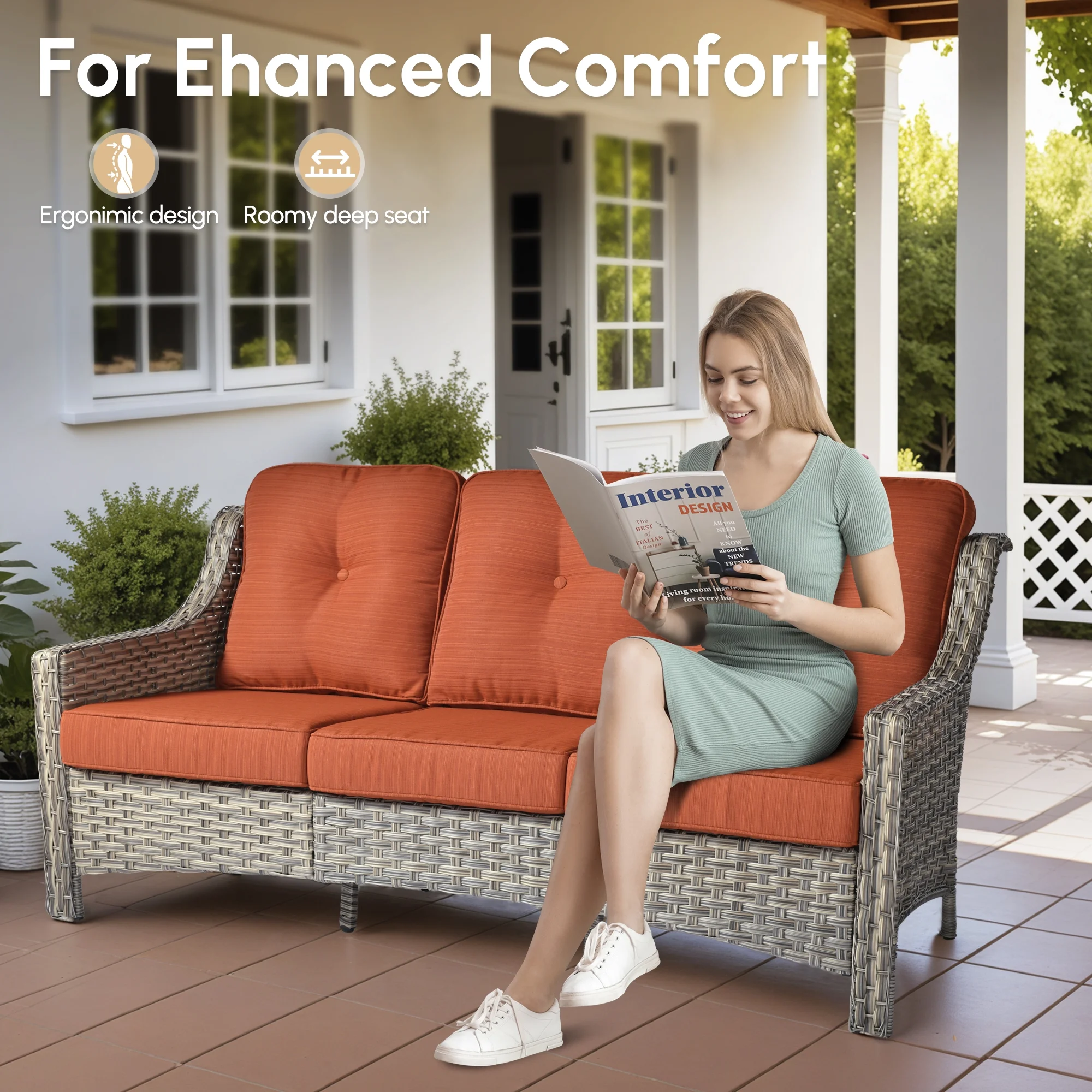 - Comfortable Seating: This conversation set features generously padded 3.54" thick cushions and high density sponge, designed to offer exceptional support for extended periods of sitting, ideal for long. The thickness helps maintain the shape and resilience of the cushions