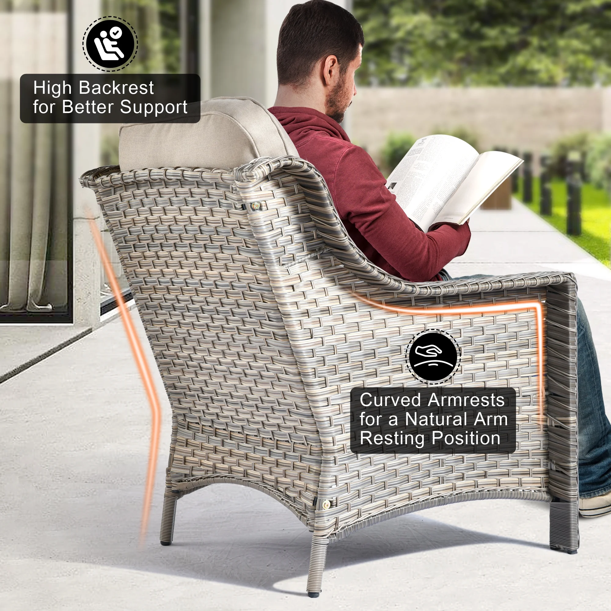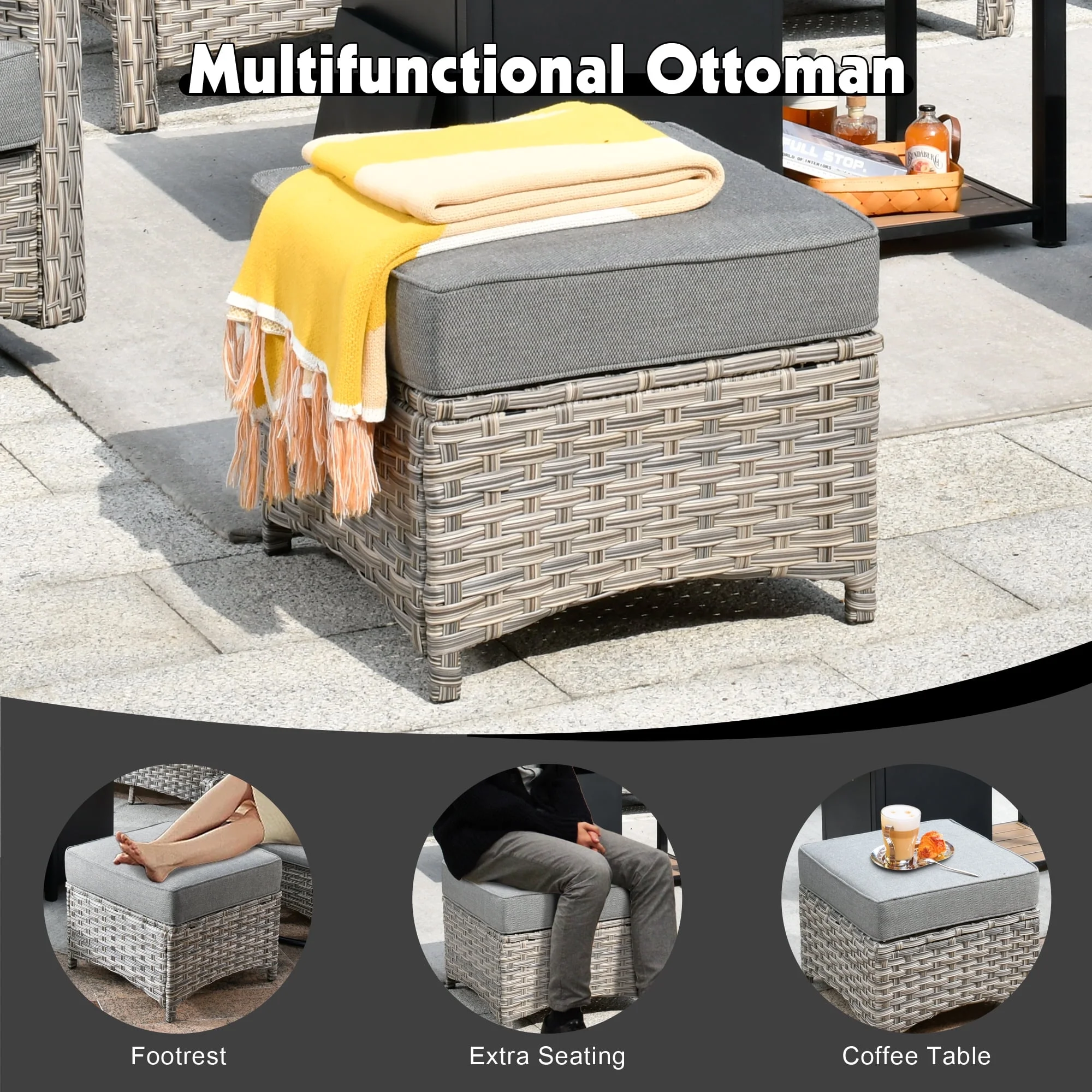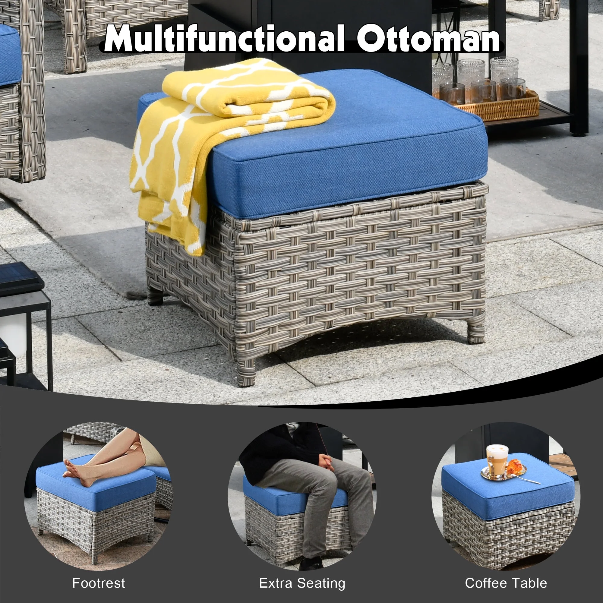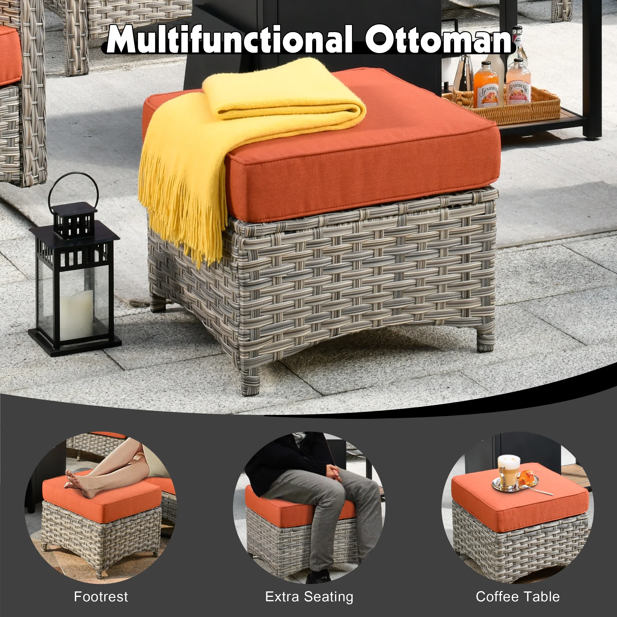 - Versatile Patio Furniture Set: Perfect for any outdoor setting, this wicker patio furniture set seamlessly fits patios, decks, gardens, backyards, or balconies. Designed to elevate your leisure time, creates an inviting space to relax and enjoy quality moments with friends and family