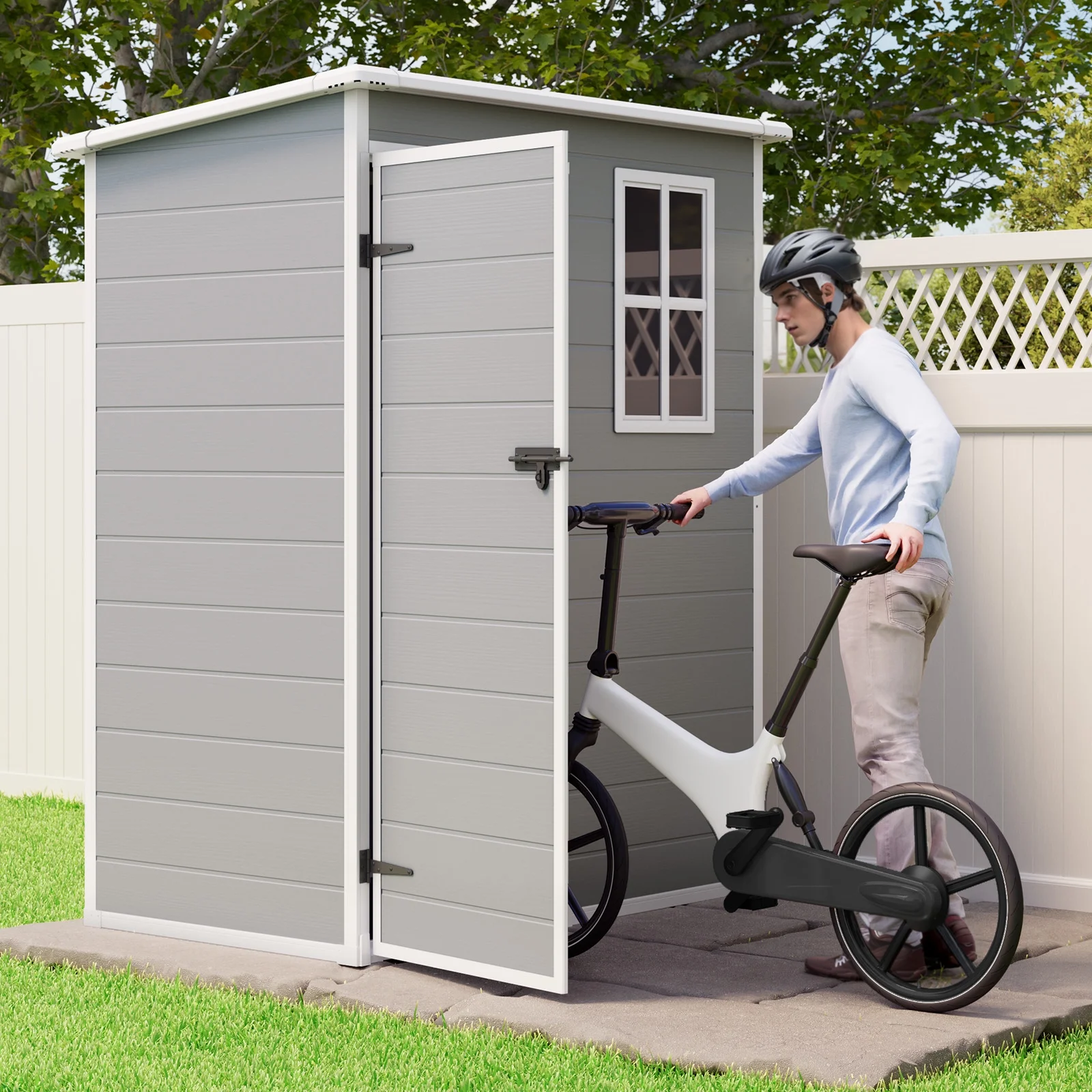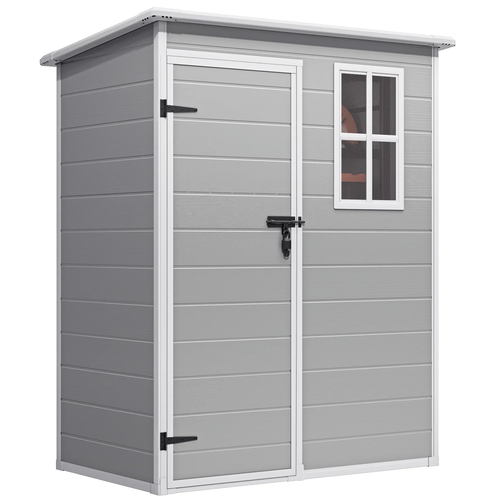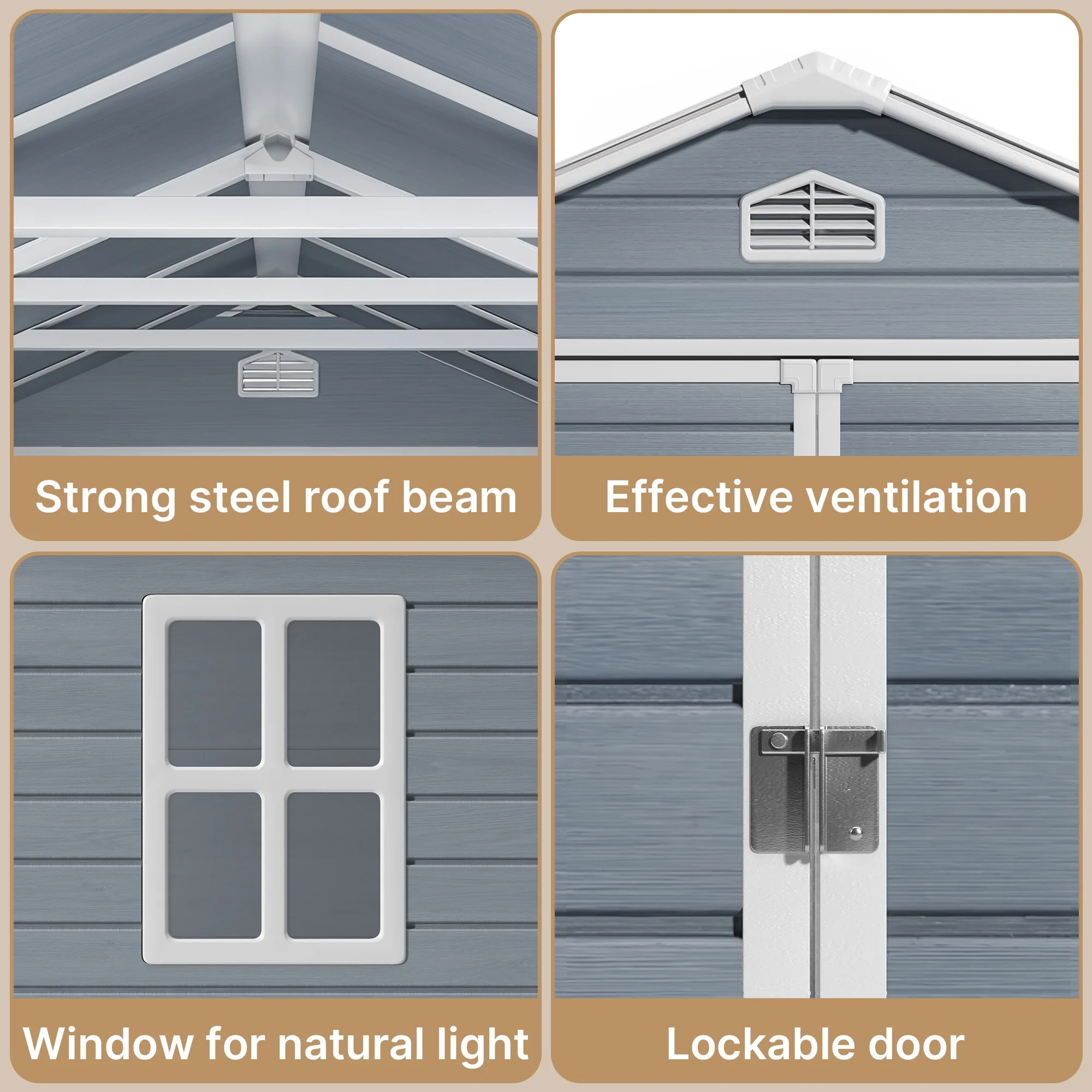 ??Thoughtful Design: The sheds & outdoor storage includes the sloped roof to prevent water accumulation; a lockable door for security; the built-in ventilation prevents the items from getting damp and mouldy; the side windows allow natural light to shine into the shed so that the items inside the shed can be clearly seen during the day. These thoughtful designs make the outdoor shed more convenient to use.