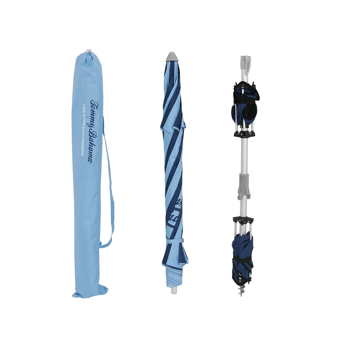 - Lightweight of 5.2 lbs (incl. carry bag with shoulder strap) ; Folded Dim. 46.5 x 6 x 6 (inches) ; Folding ABS Handle is contoured for maximum gripping and increase torque to insert integrated anchor pole into the sand.
