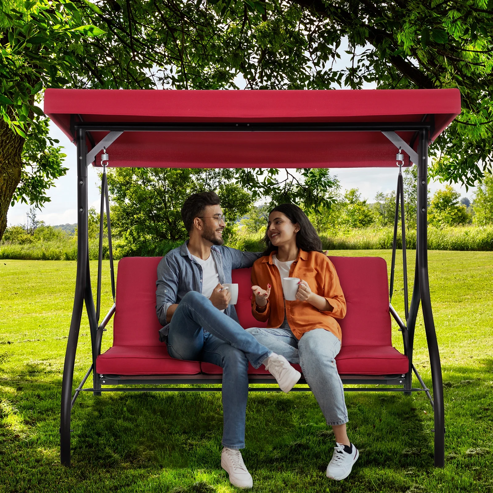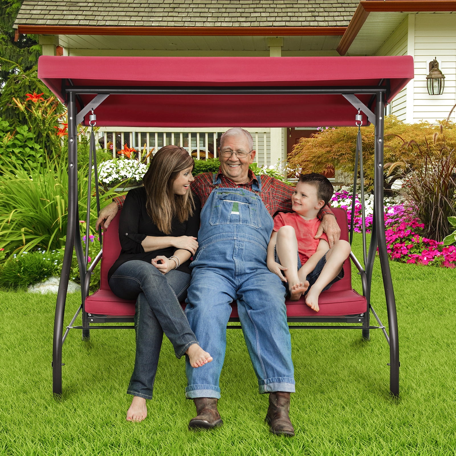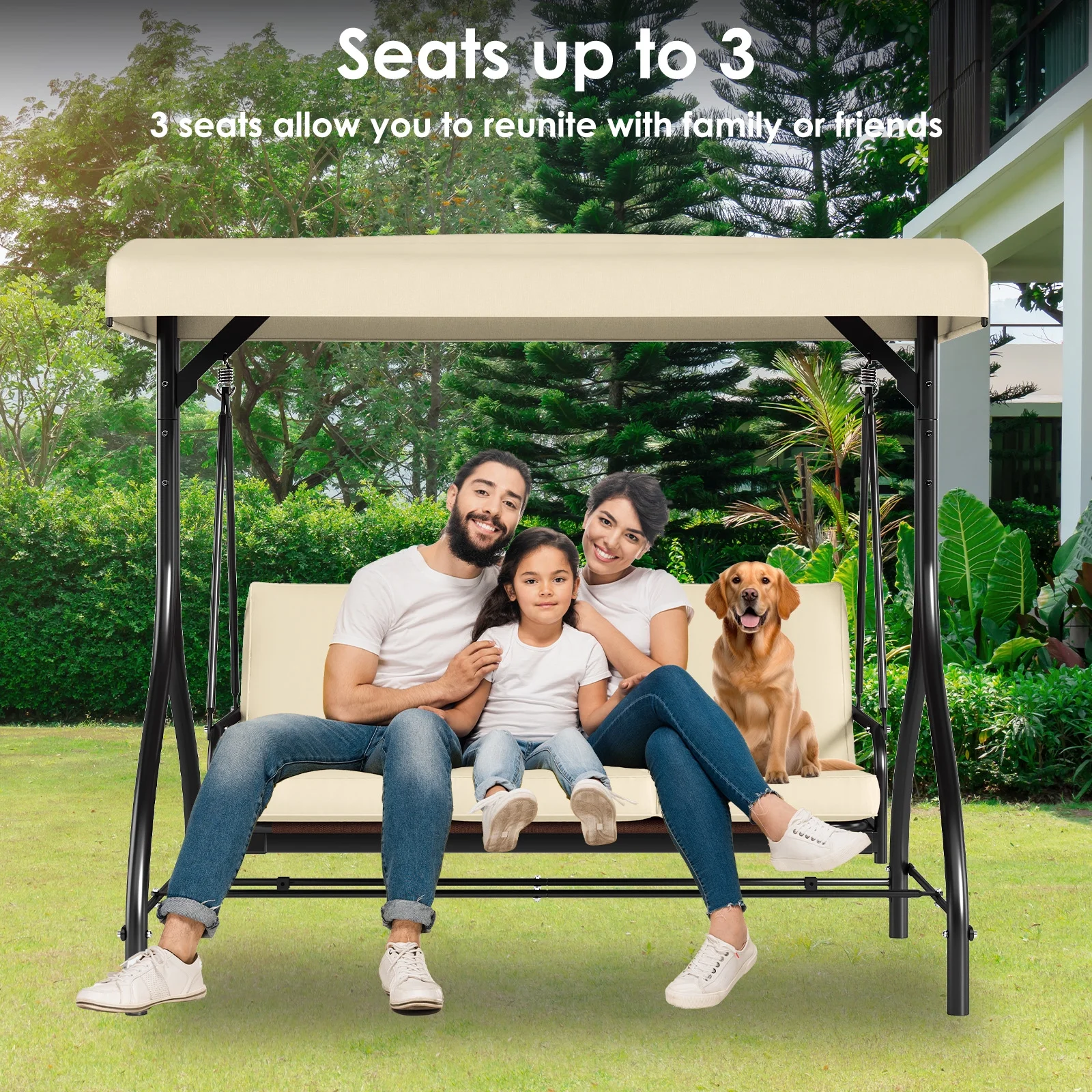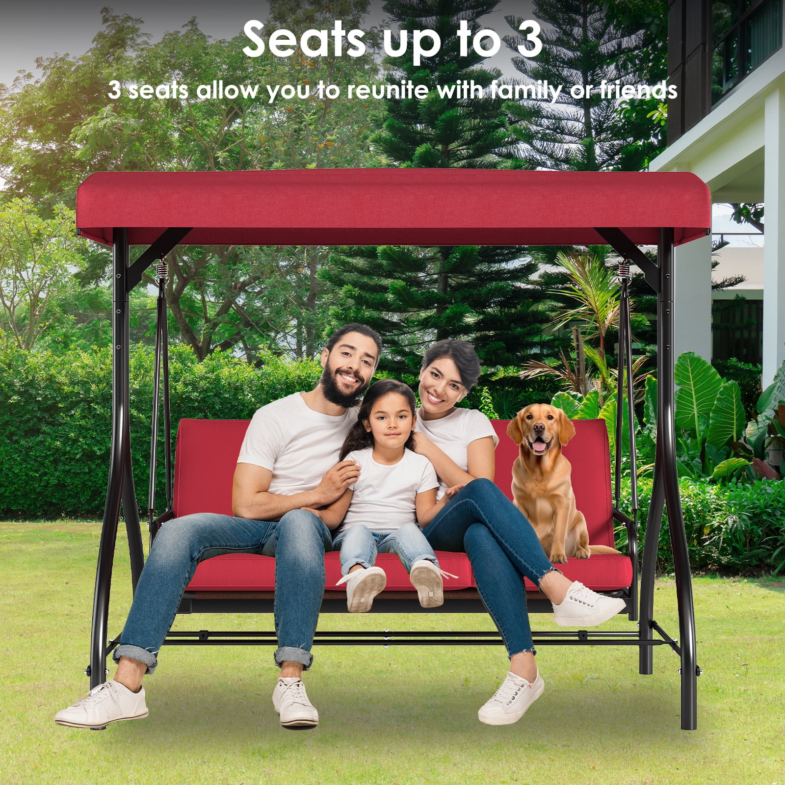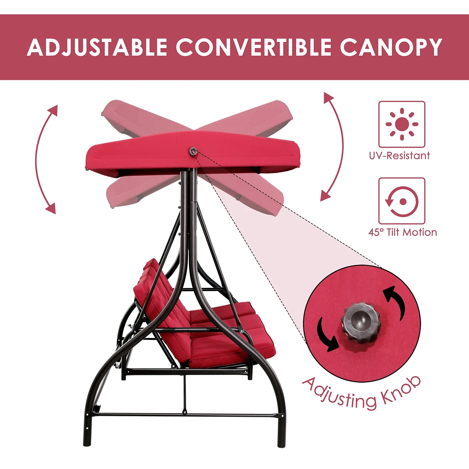 - 2-in-1 Convertible Design: Arlopu Patio Swing��s backrest has a 2-in-1 design. Pull tabs to lower and lock it flat for flexible seating/lounging.