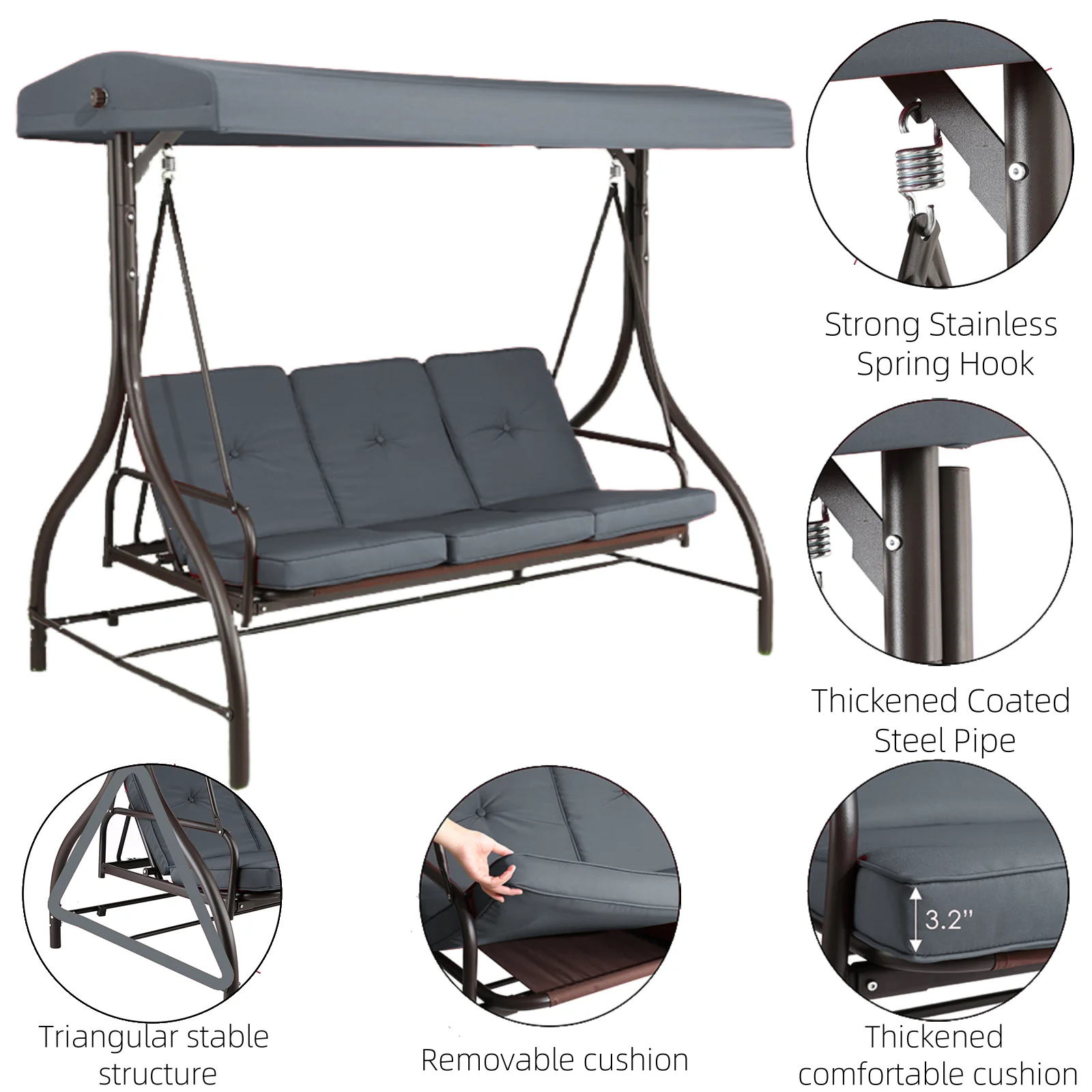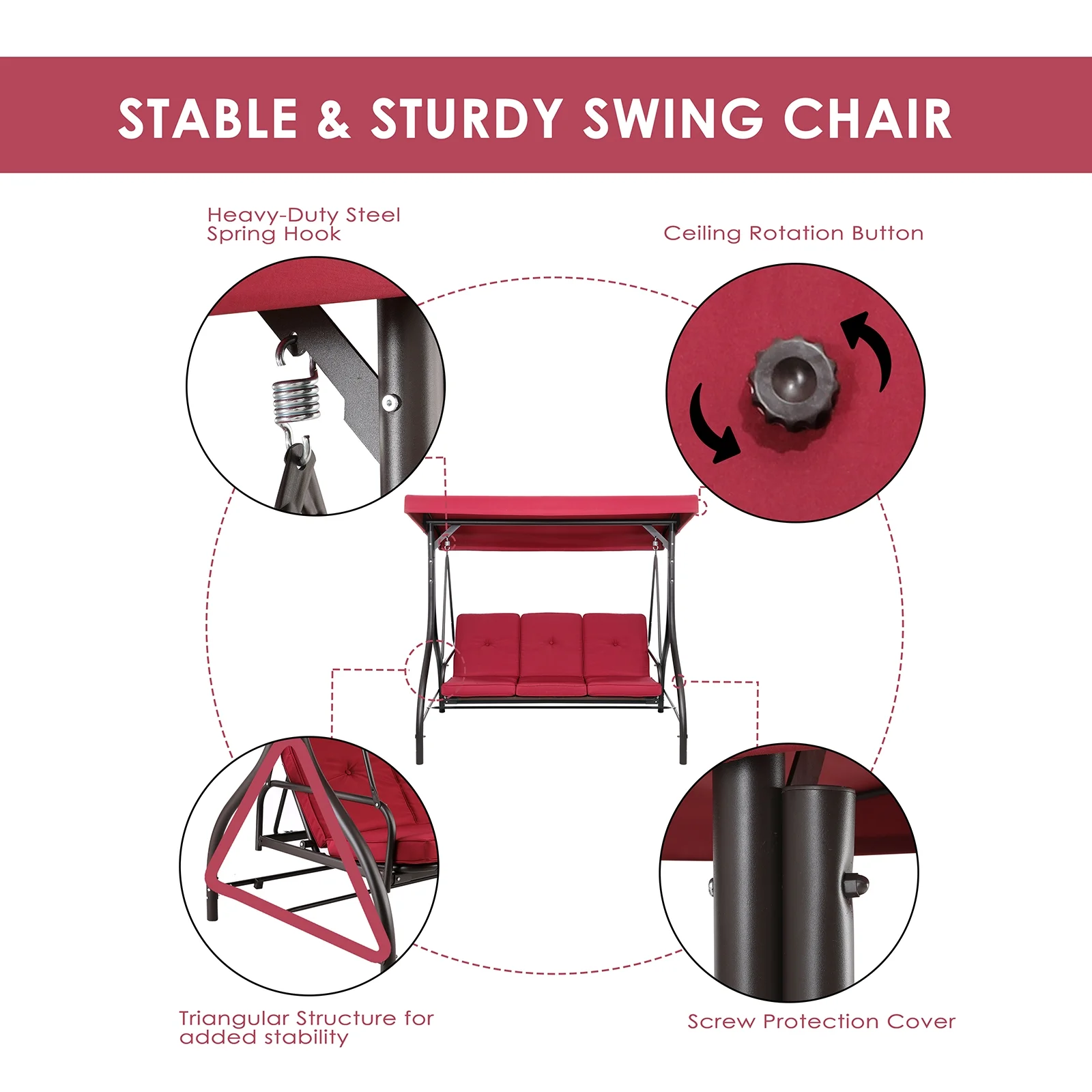 - Easy-Clean Padded Cushion: Comes with a removable, washable cushion. Keeps the swing fresh and comfortable.