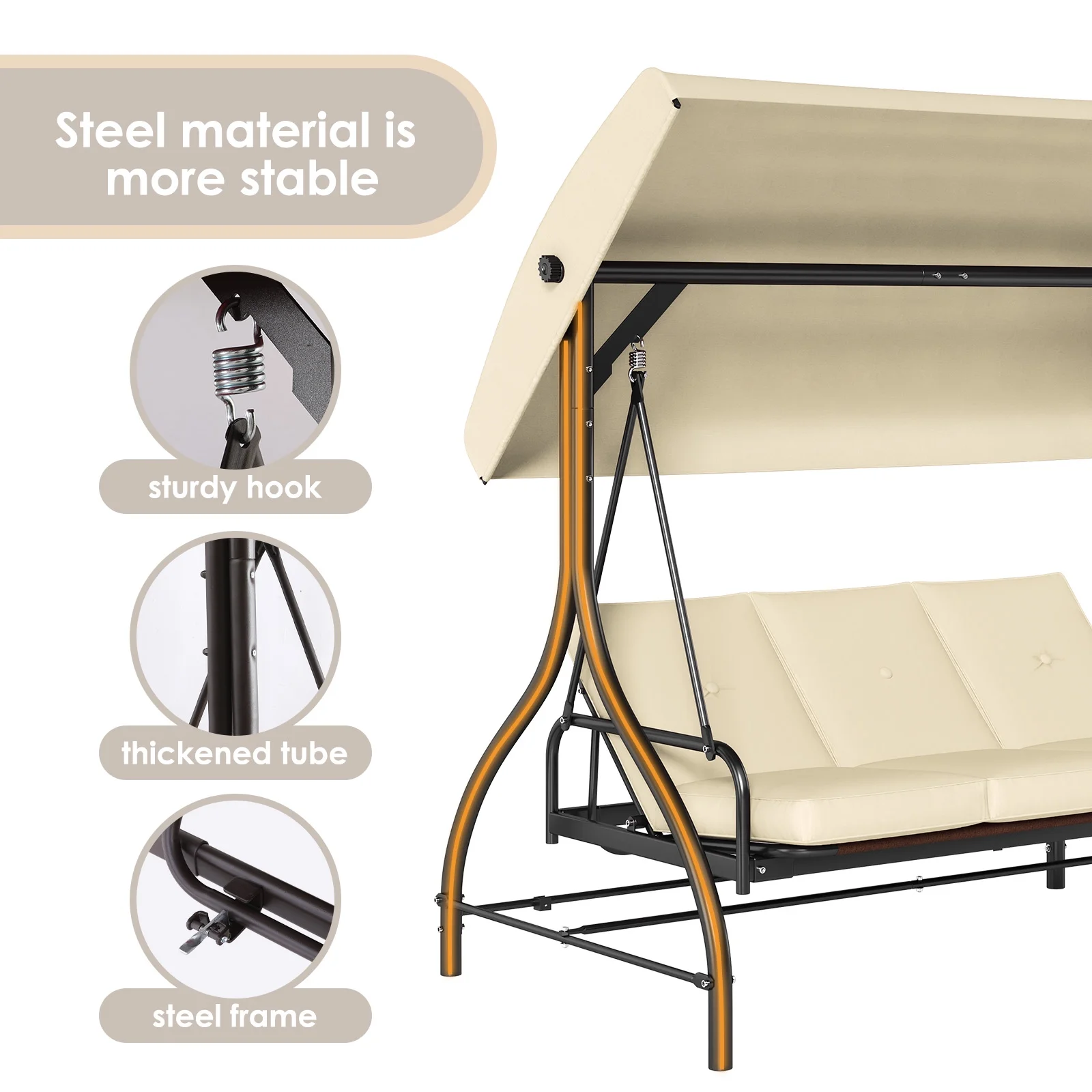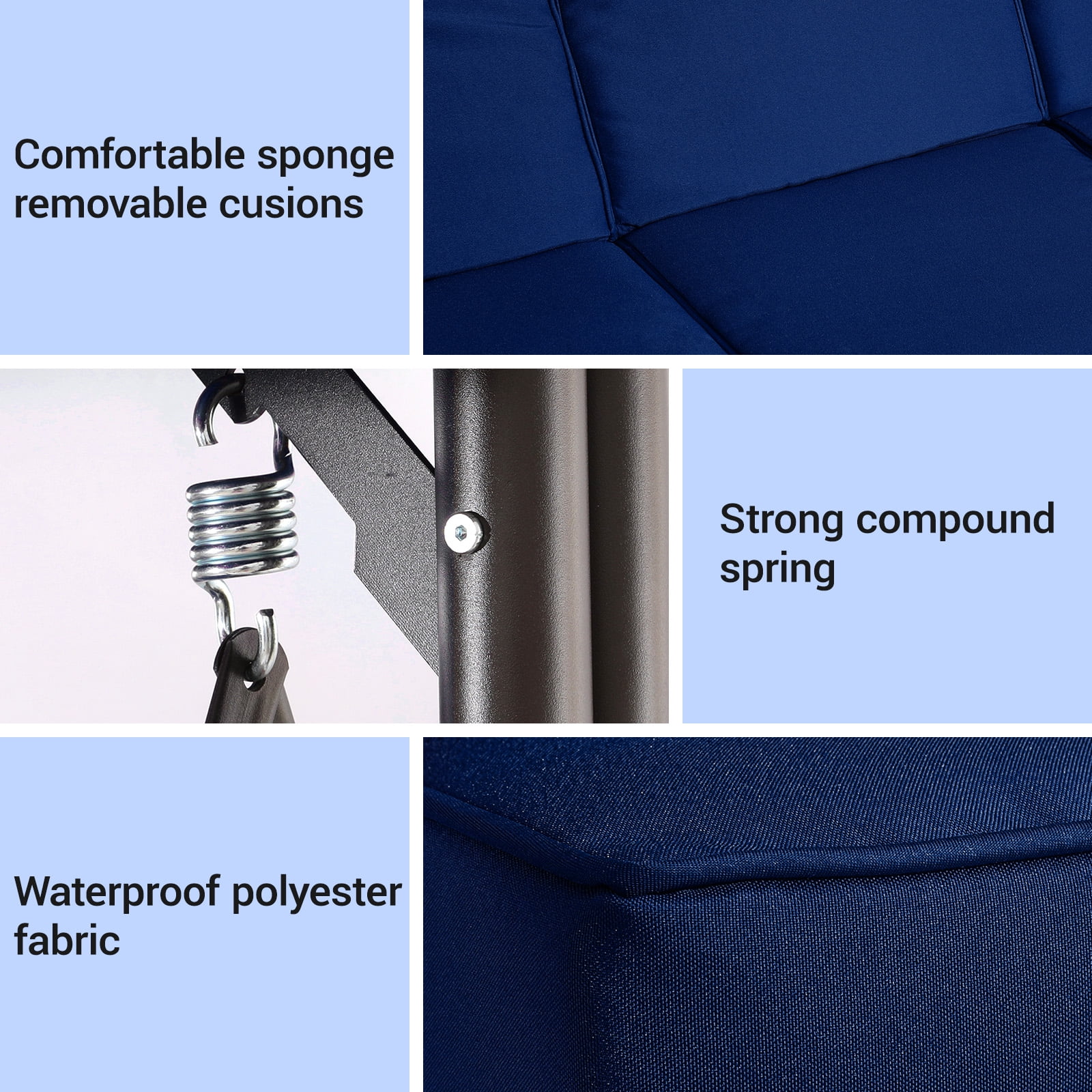 - Stable All-Metal Build: All-metal frame, sturdy hooks/tubing support 750 lbs. Heavy-duty springs enable smooth, safe rocking.