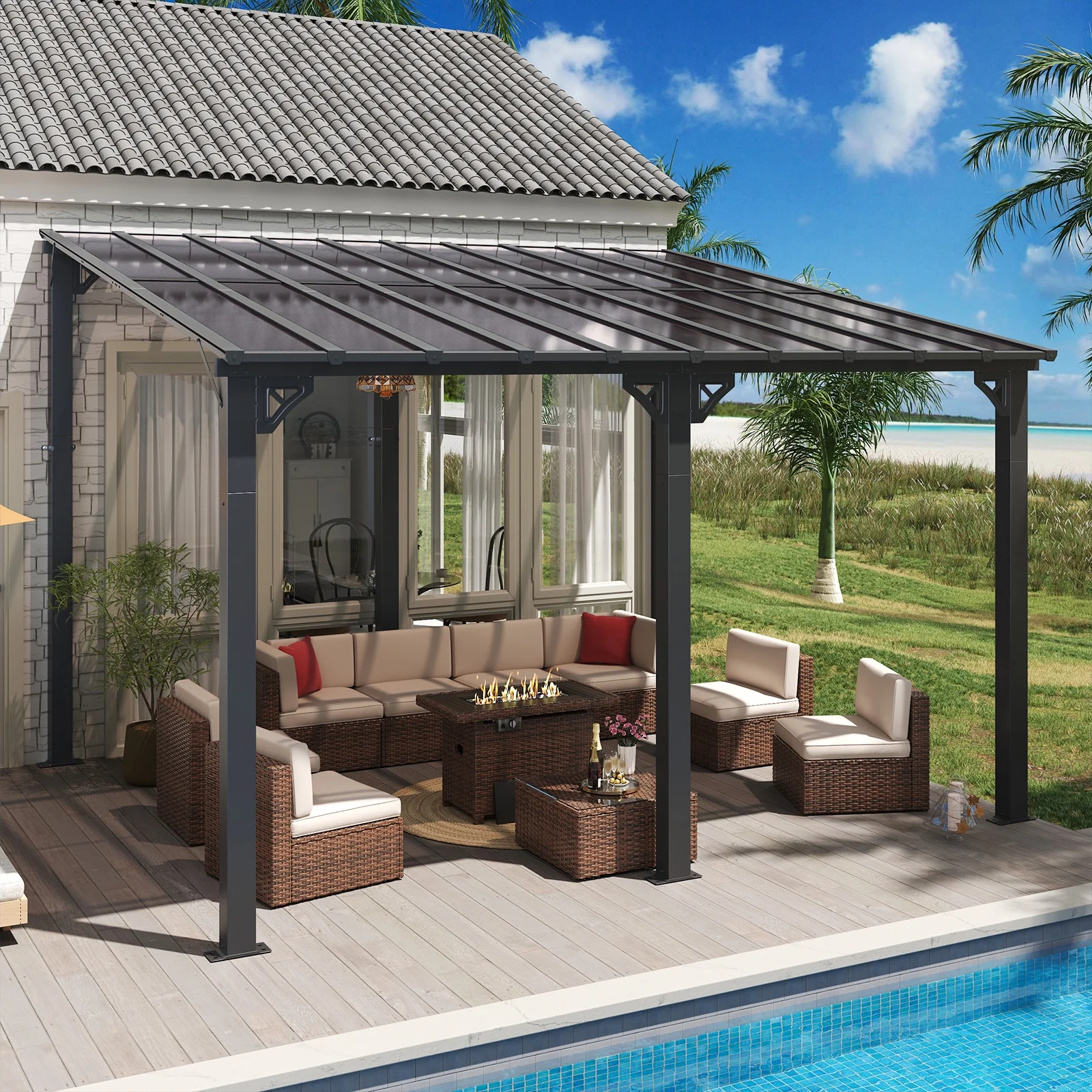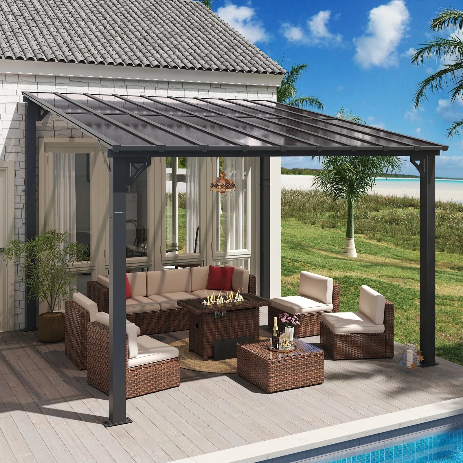 - Practical and Versatile:This pergola is ideal for multiple purposes, such as near a pool, hot tub, outdoor dining area, or used as as an entertainment space. It can also be used as a grill gazebo, under the shed to shelter your grill. It can be also adored with string lights, hanging plants, or outdoor furniture to further enhance the ambiance