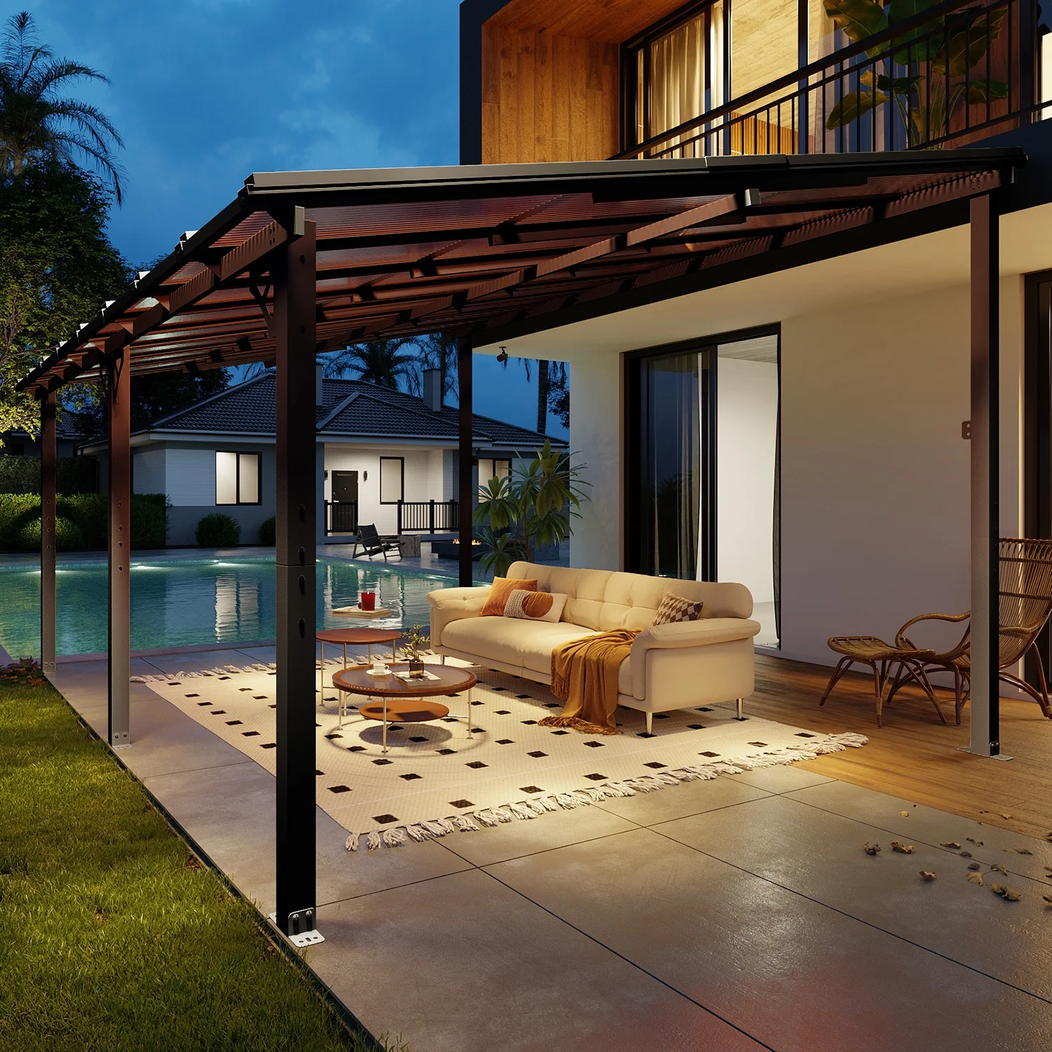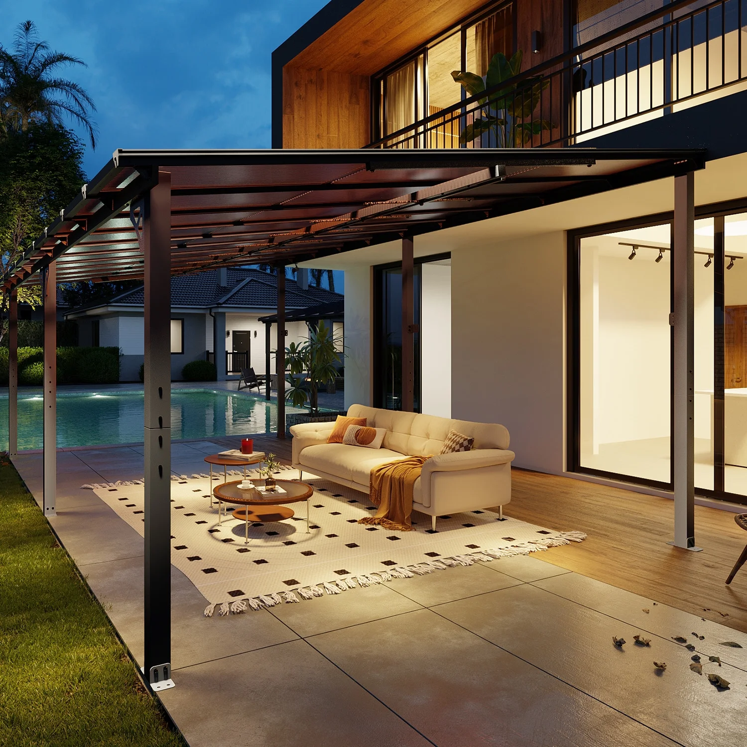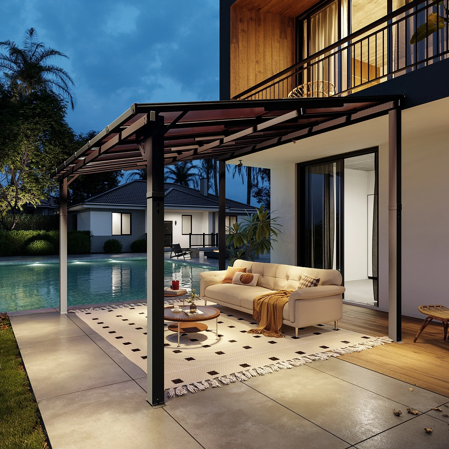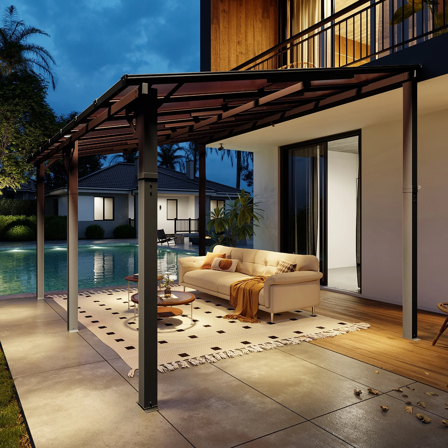 - High Quality Material: Crafted with material polycarbonate hollow sheets, our gazebo delivers exceptional sun protection by blocking direct sunlight, creating a cool and comfortable shaded area