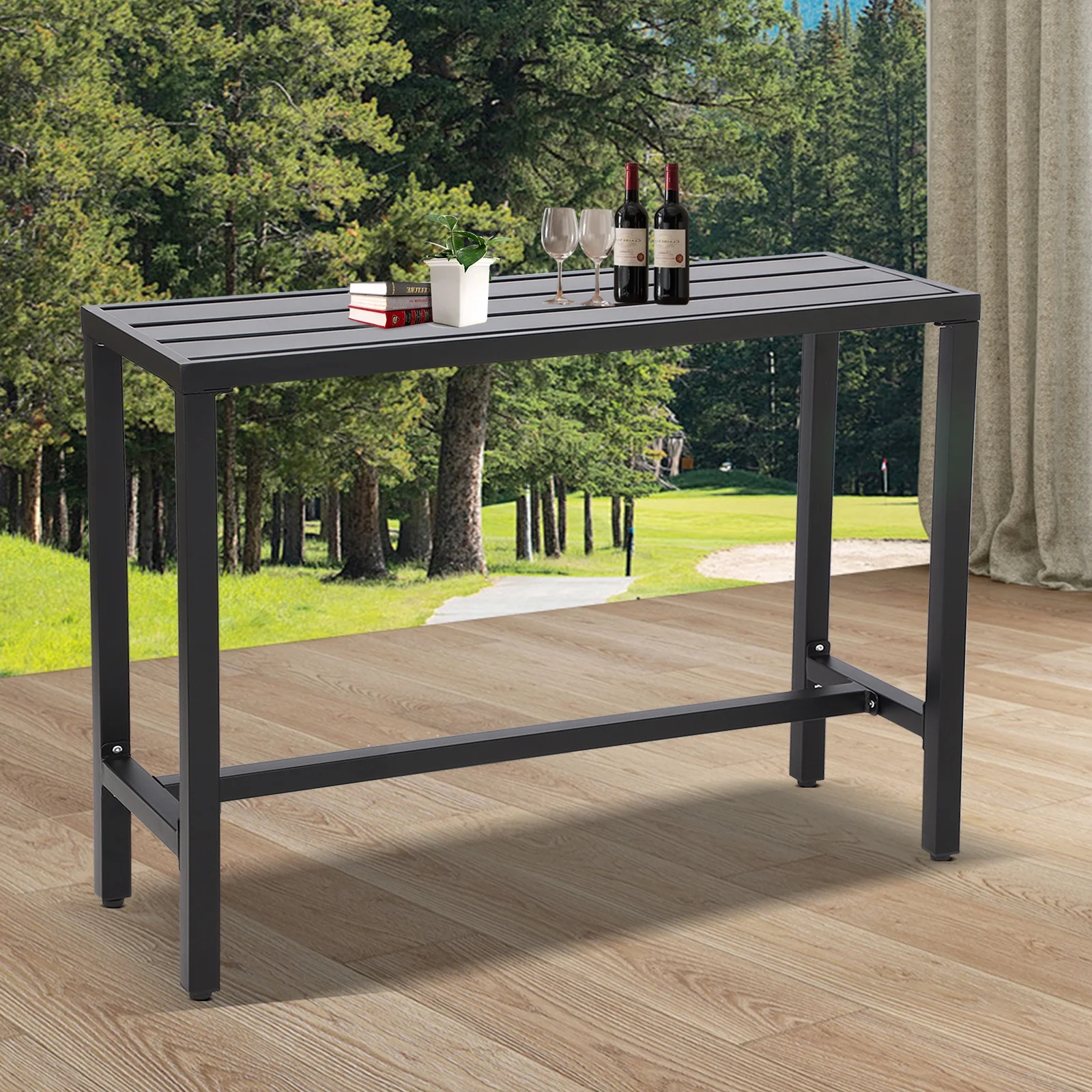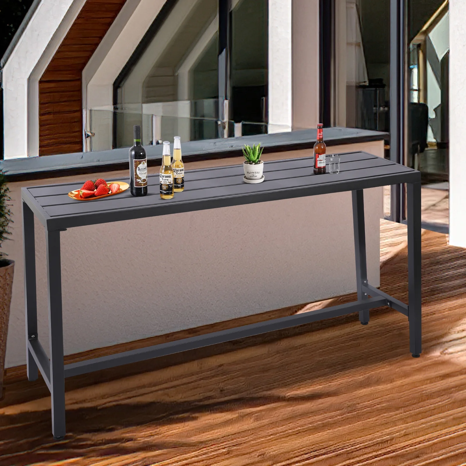 Outdoor Bar Table, 63 Patio Console Pub Height Table with Powder Coated Steel Frame and Weather Resistant Waterproof Top for Hot Tub, Balcony, Garden, Yard, Poolside, Indoor Outdoor