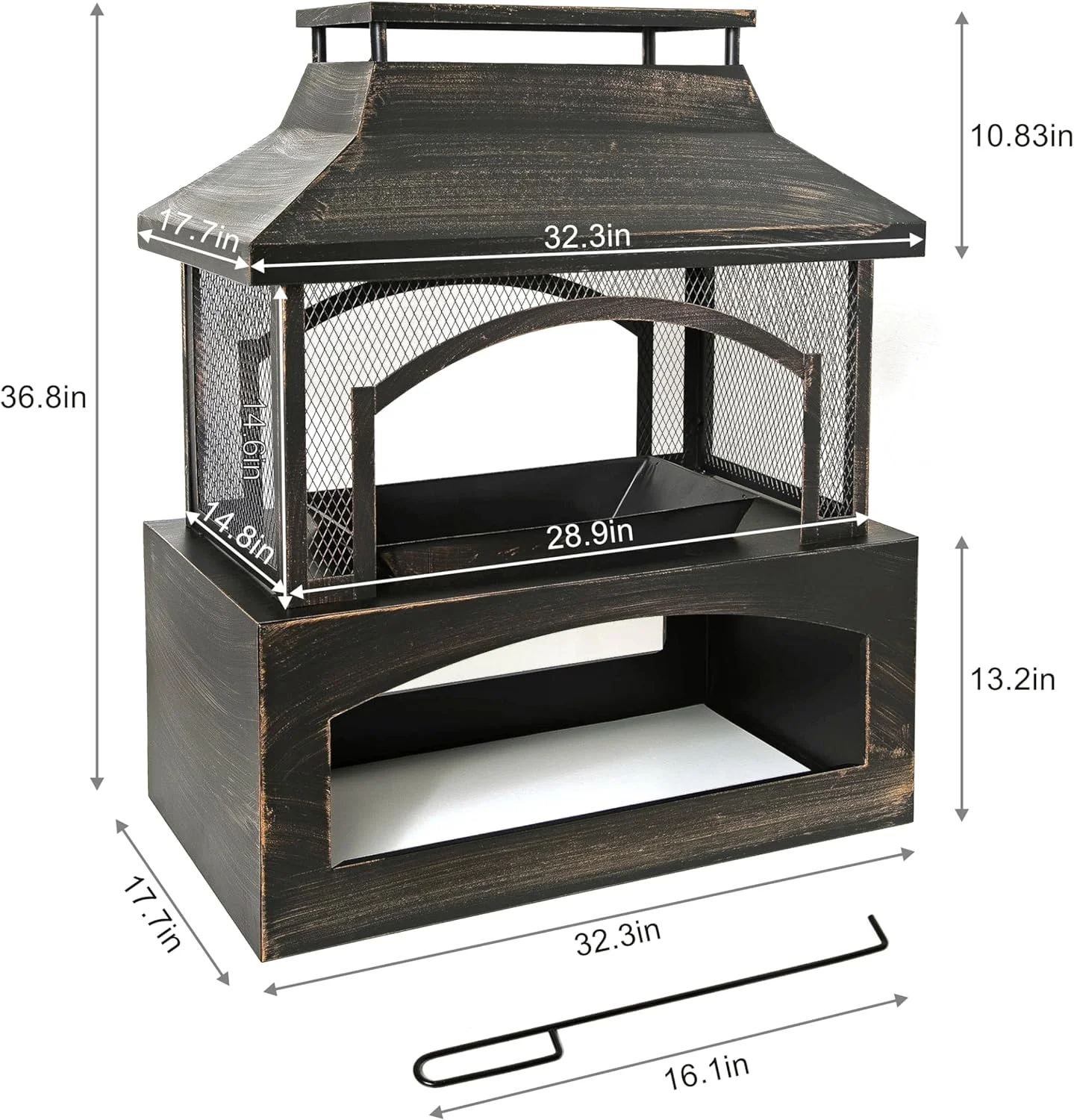- Outdoor Fire Pit with Poker: Our outdoor patio fireplace comes complete with all the necessary accessories for you to fully enjoy the fireplace experience. Use the included poker to adjust the firewood easily and safely. Once the flames are extinguished and fully cooled, effortlessly remove the ash pan from its built-in slot to dispose of the ashes. Cover the fireplace with the sturdy protective cover to shield it from outdoor elements.