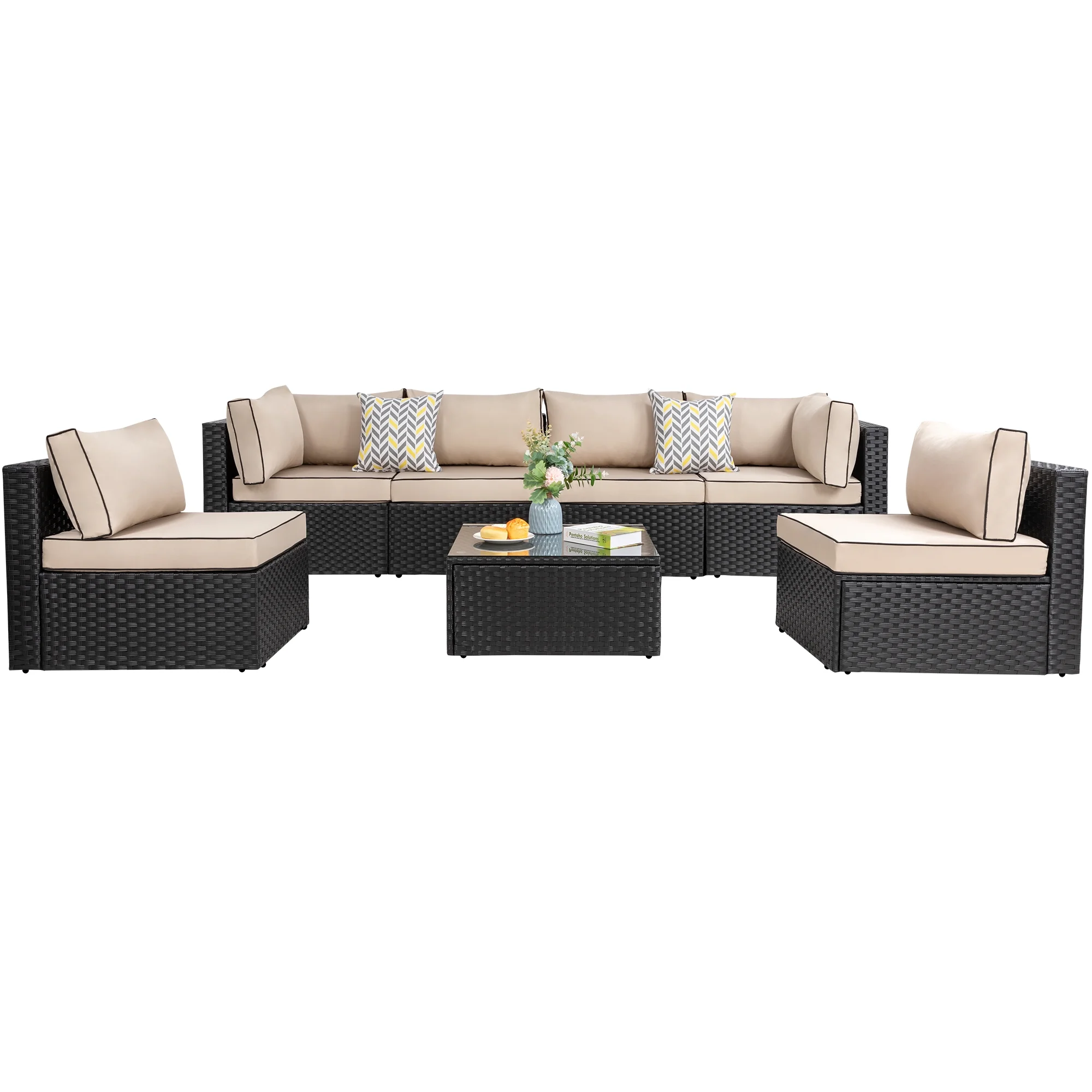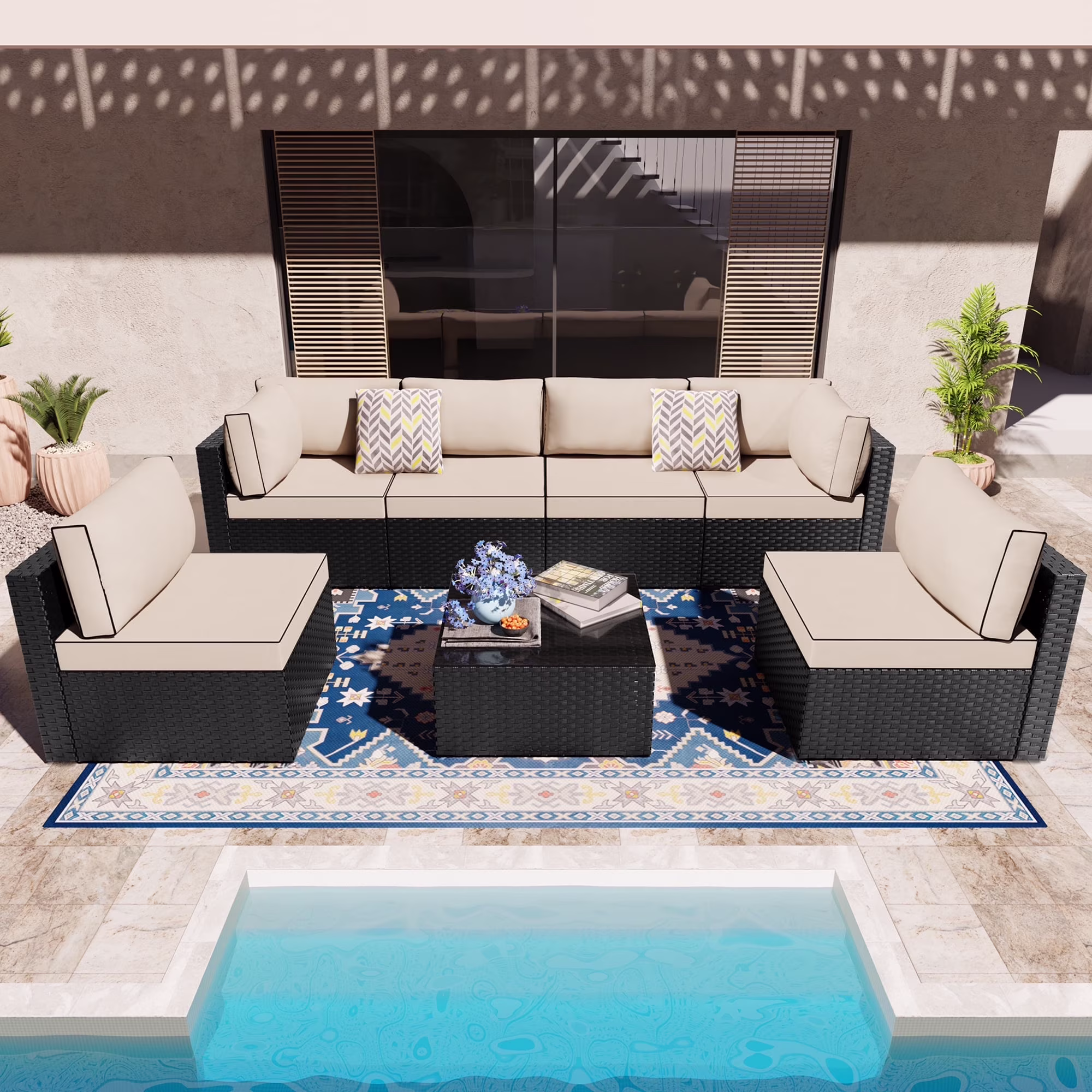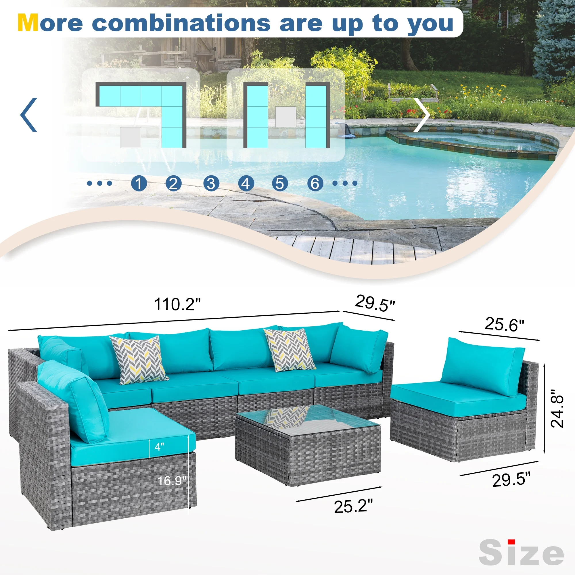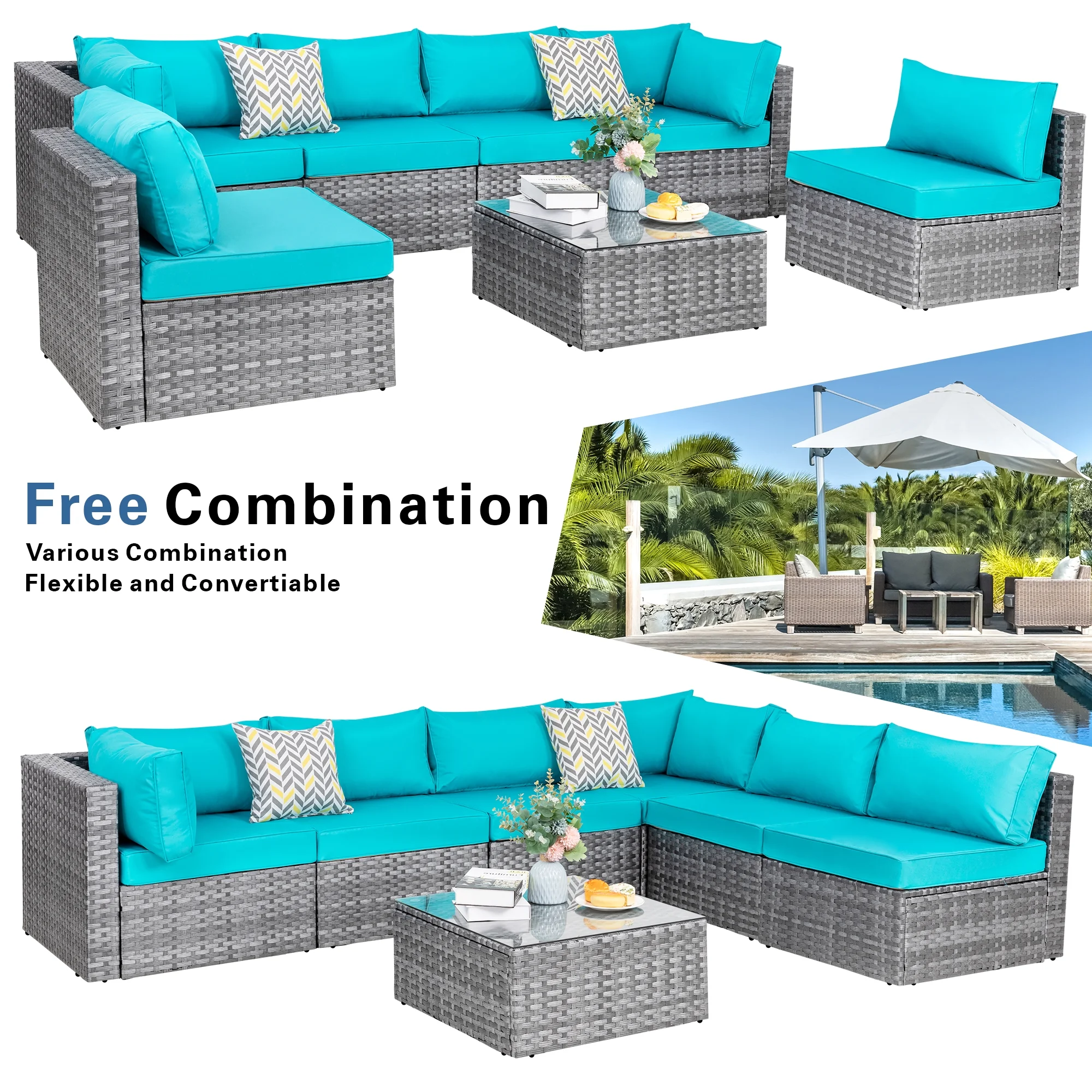 This 7 piece conversation set can have many configuration options based on your preference and geography; you can easily reconfigure the seat to different sitting positions since this wicker sectional set are lightweight.