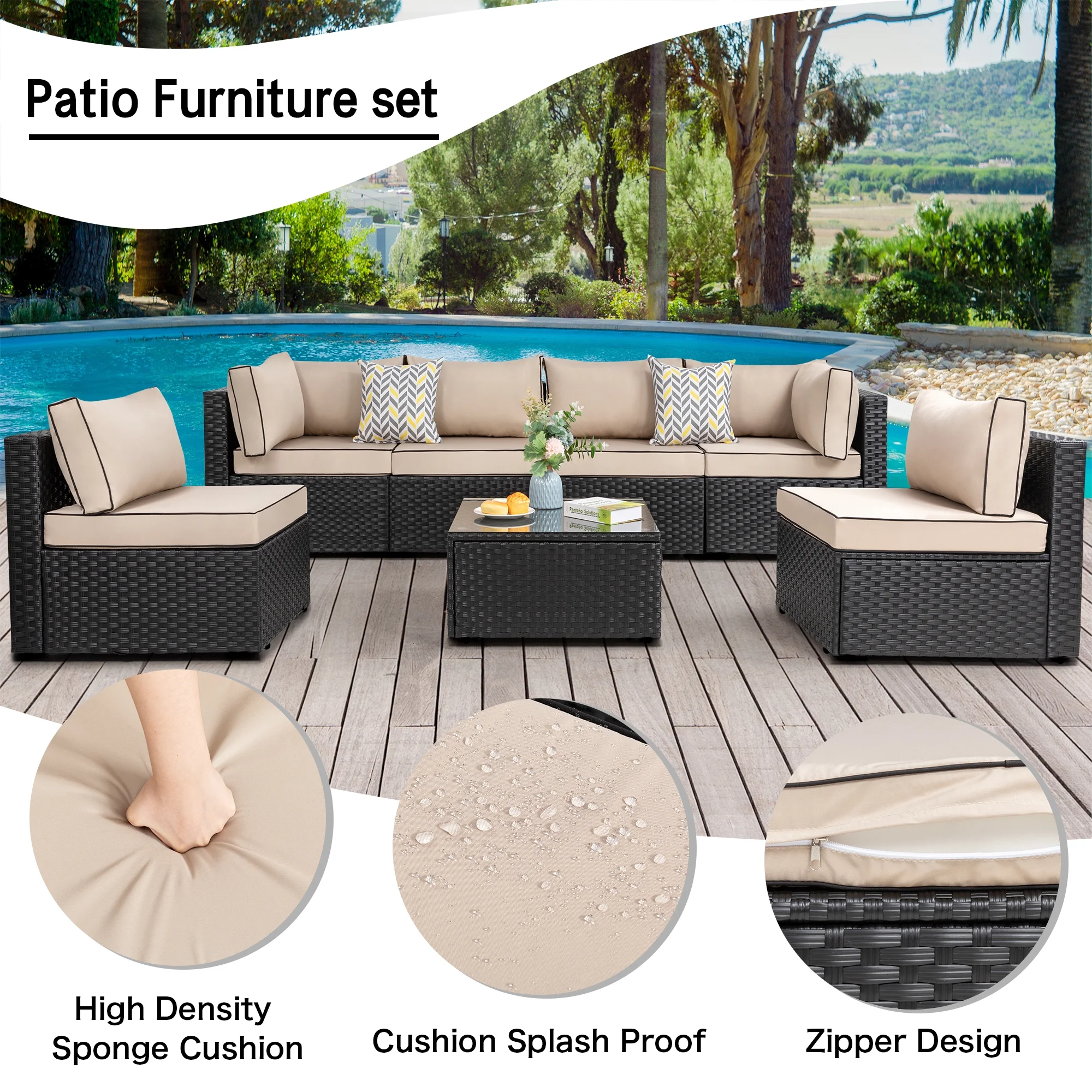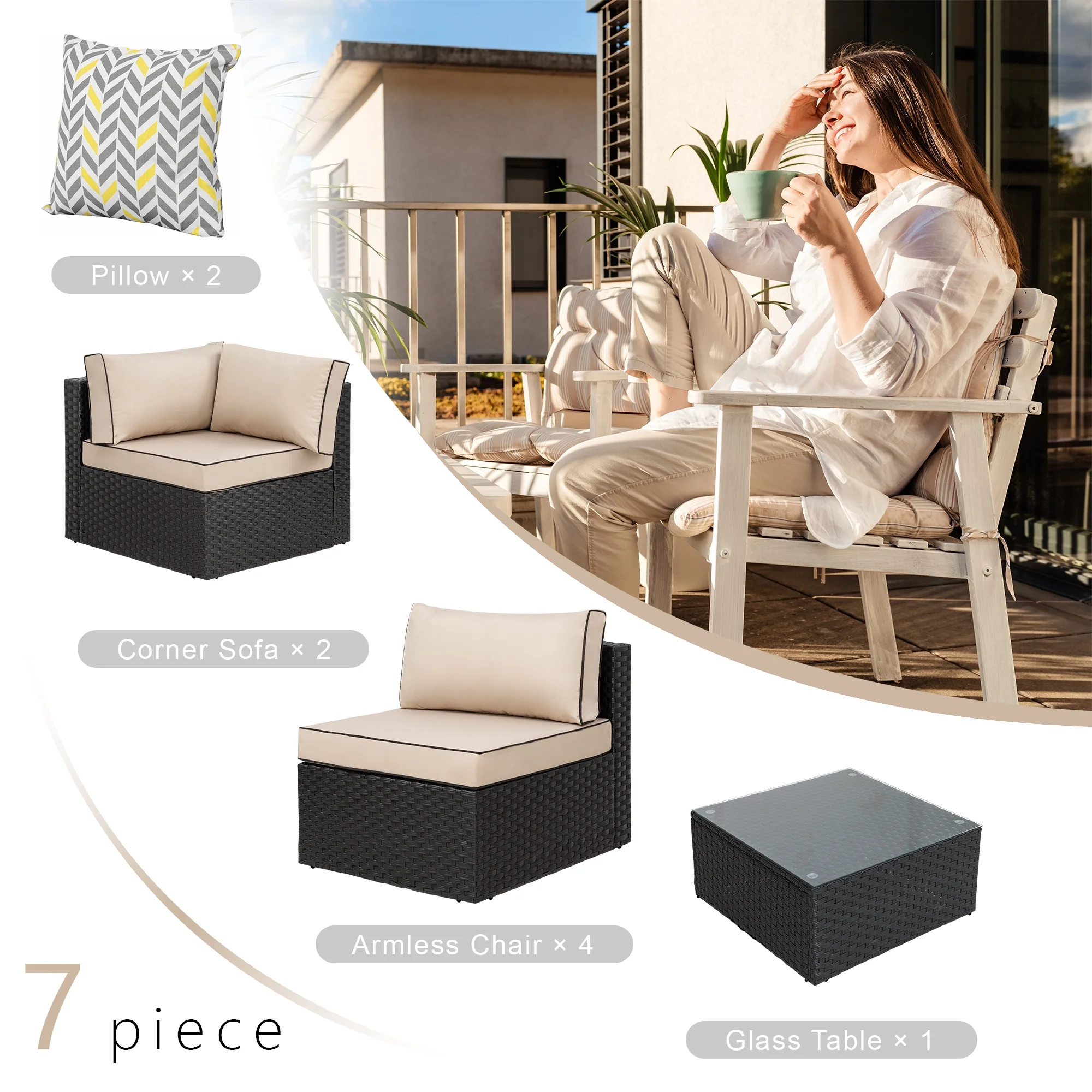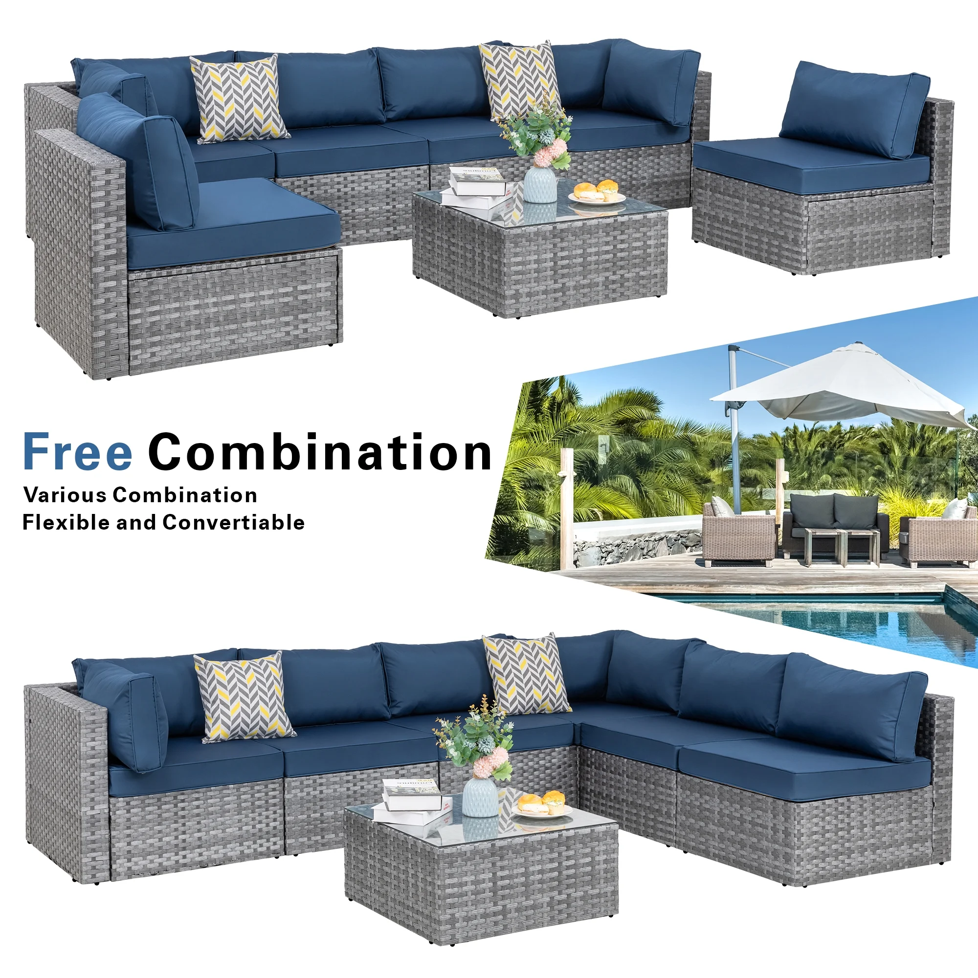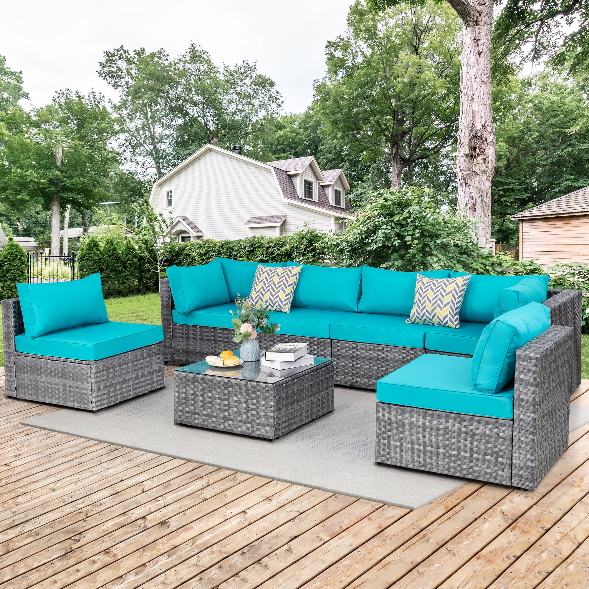 This 7 piece conversation set can have many configuration options based on your preference and geography; you can easily reconfigure the seat to different sitting positions since this wicker sectional set are lightweight.