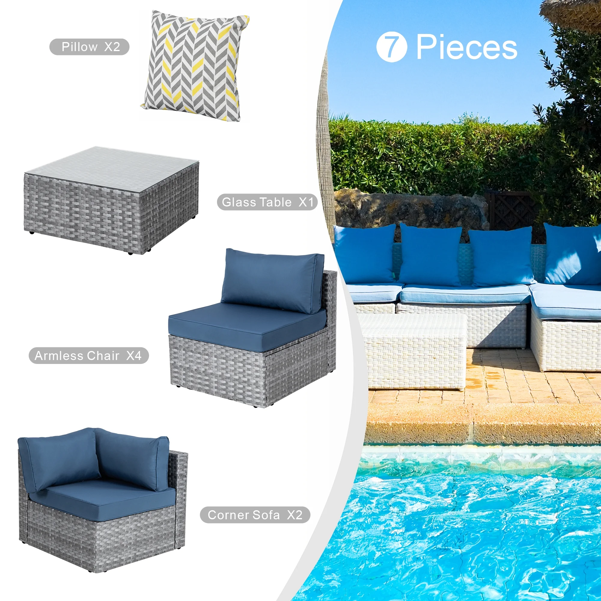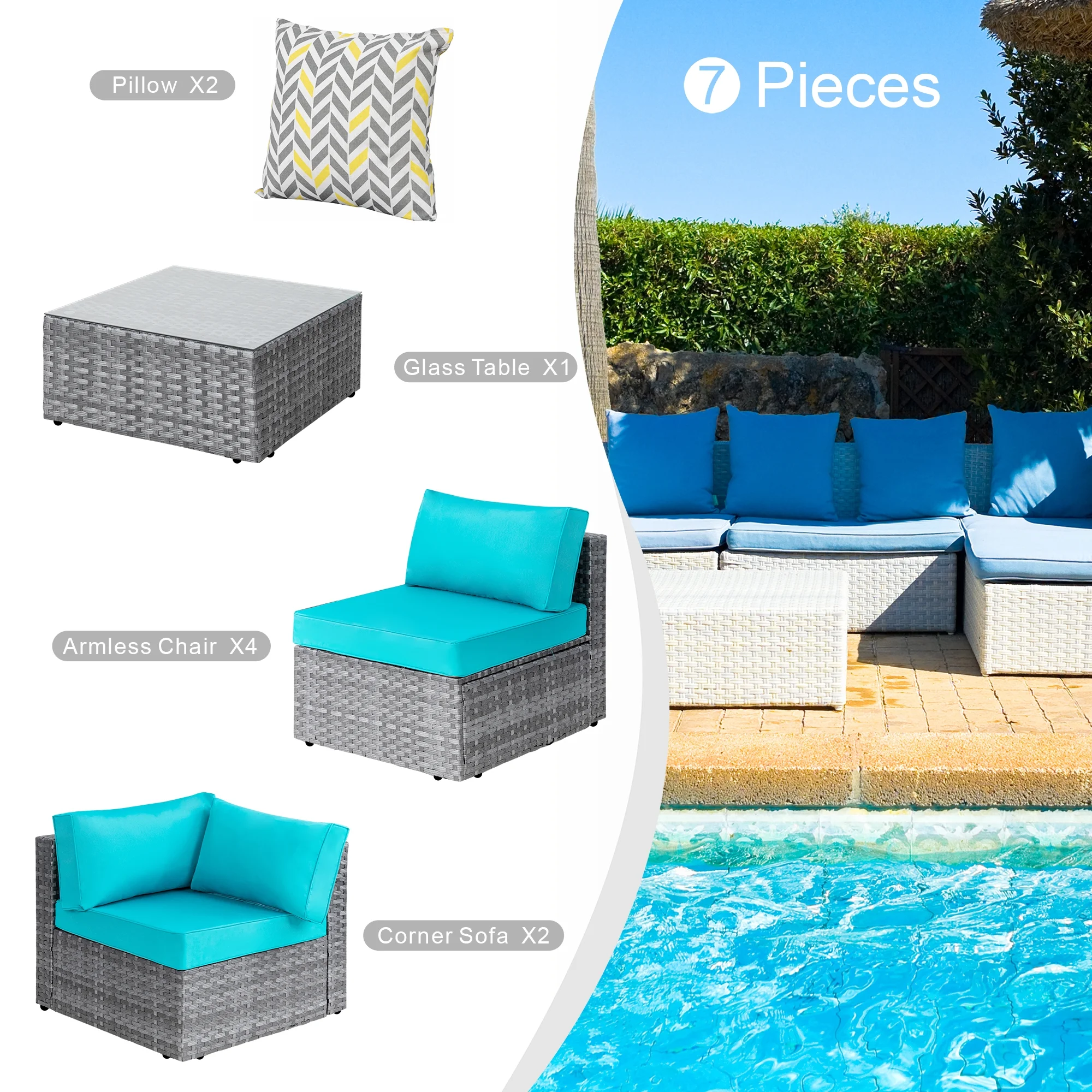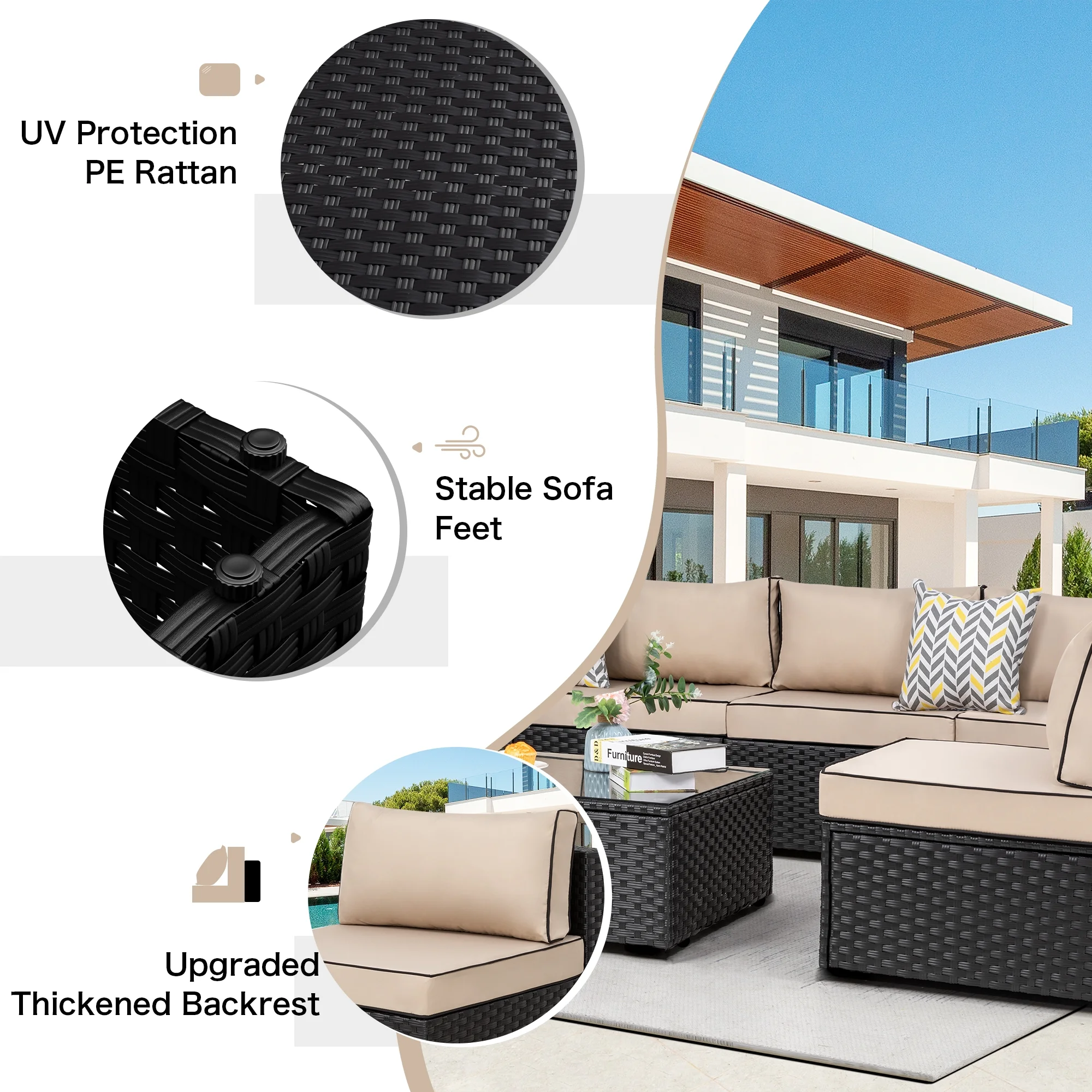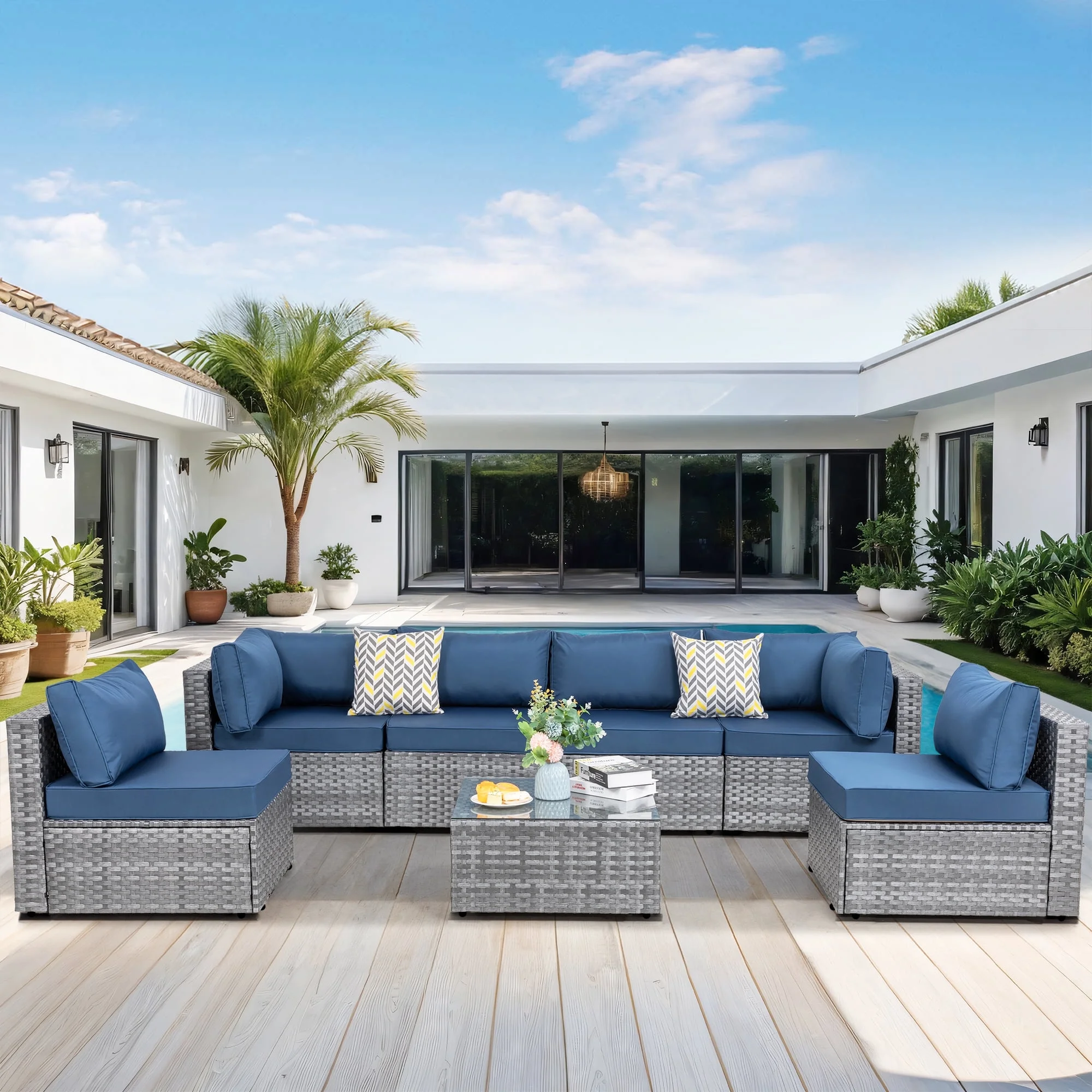 This 7 piece conversation set can have many configuration options based on your preference and geography; you can easily reconfigure the seat to different sitting positions since this wicker sectional set are lightweight.