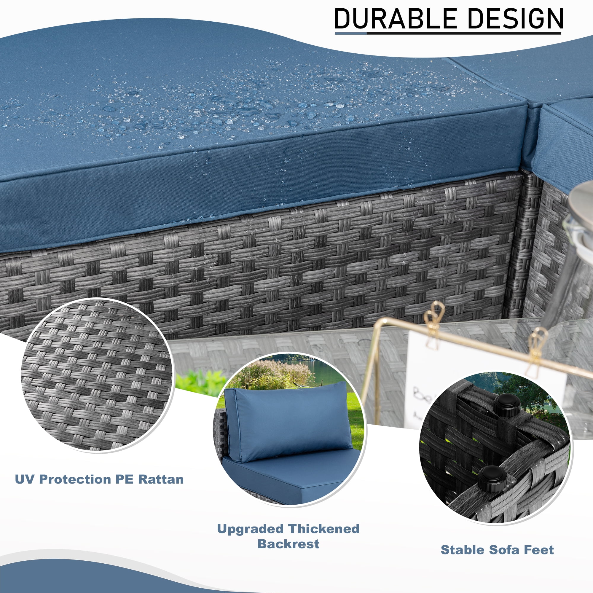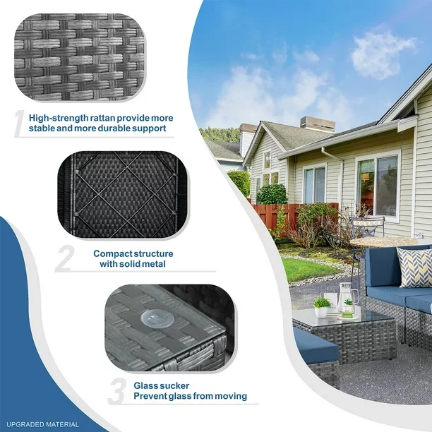 This rattan sofa set is composed of lightweight all-weather rattan wicker and steel frame; the hand-woven PE rattan wicker will last longer compared to any other normal wicker. Our wicker is strong and durable but also lightweight at the same time.
