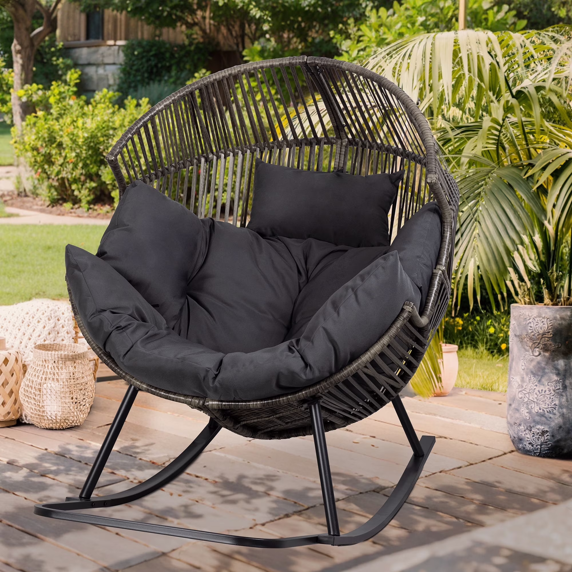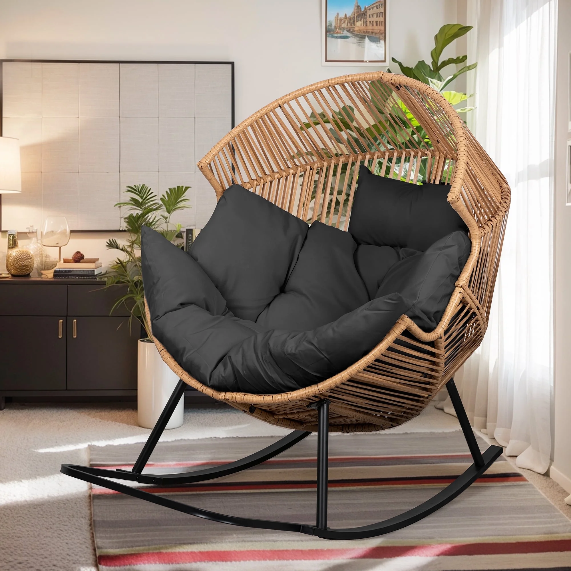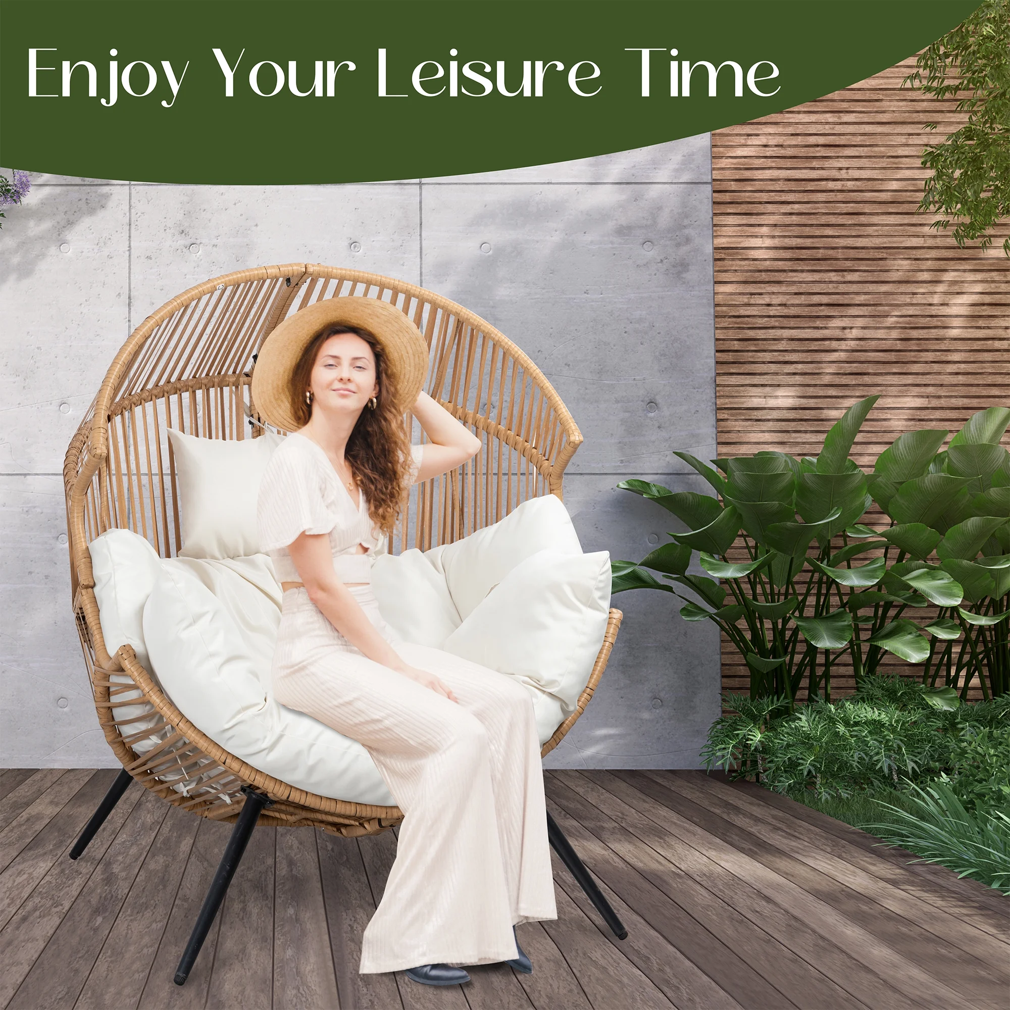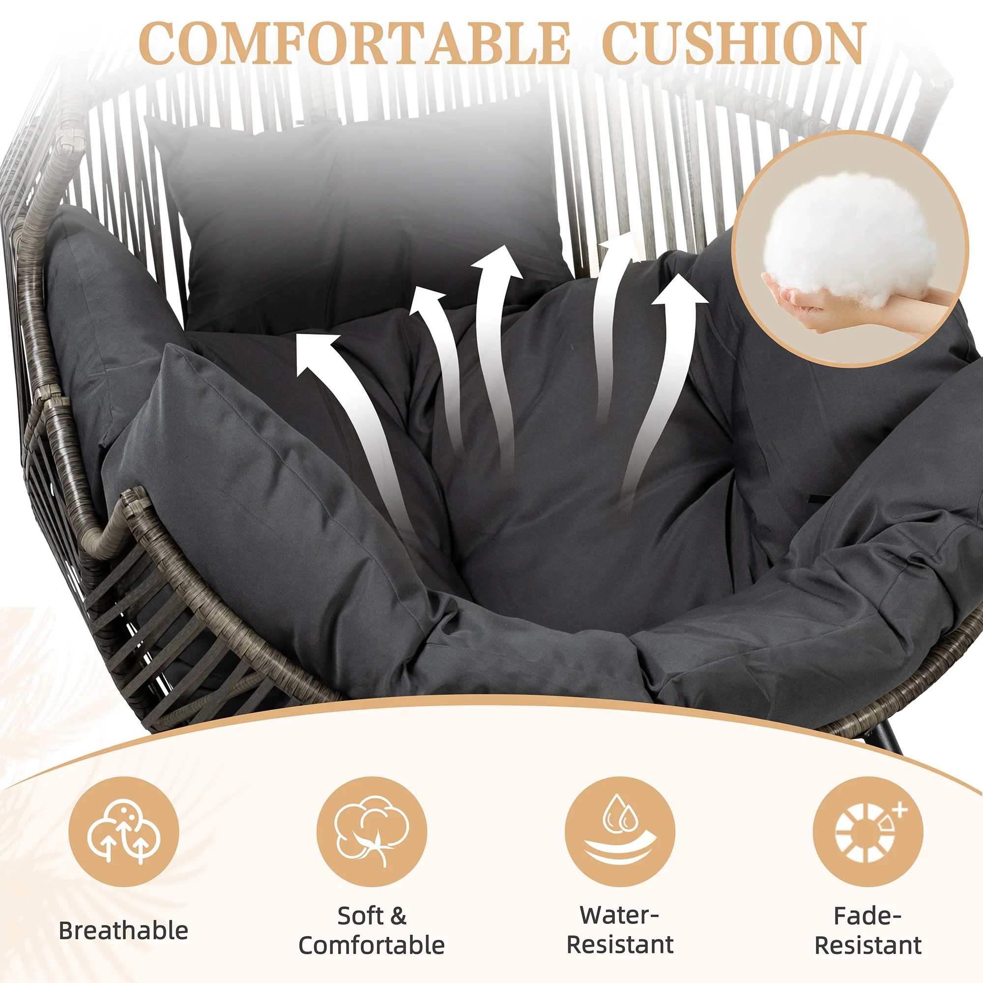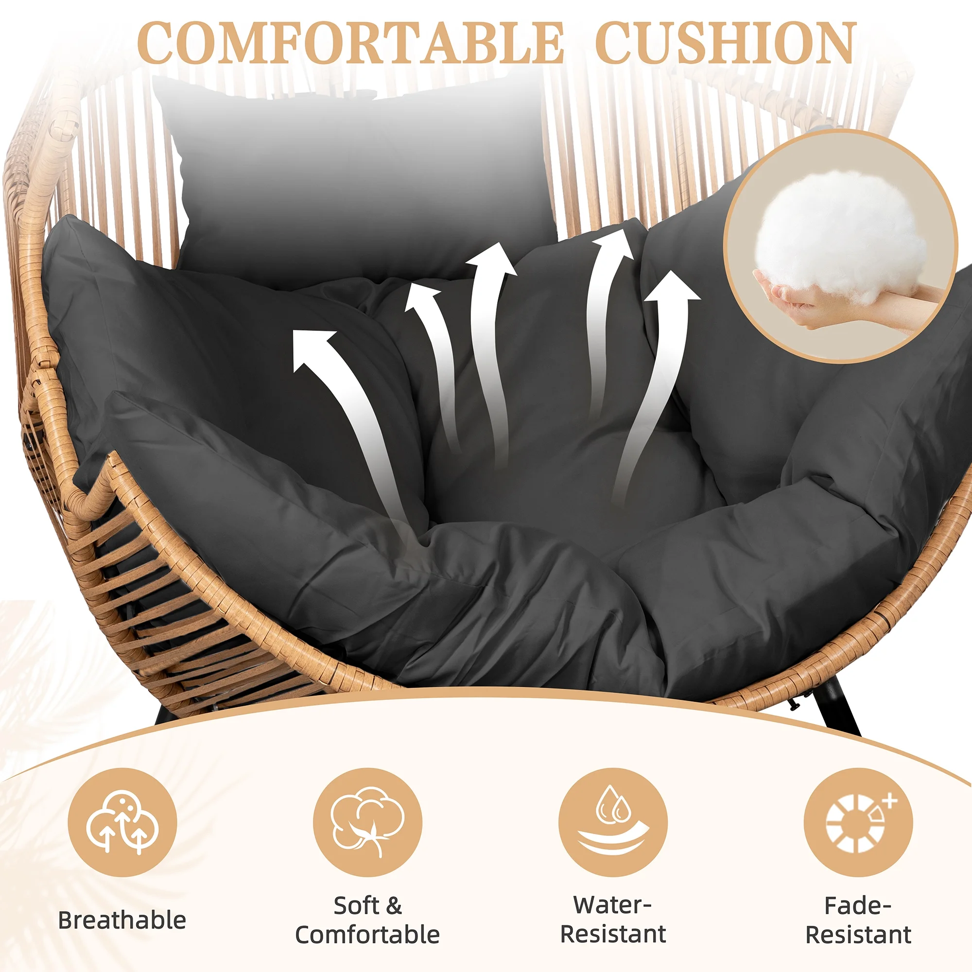 This egg shaped wicker chair comes complete with a soft seat and back cushions that are not only washable but also breathable, and comfortable. The soft curves and padding are like a warm hug for your body, giving you excellent support. Whether you want a comfortable sanctuary to read alone or a haven to relax and unwind after a tiring day, this outdoor furniture egg chair is your ultimate retreat.