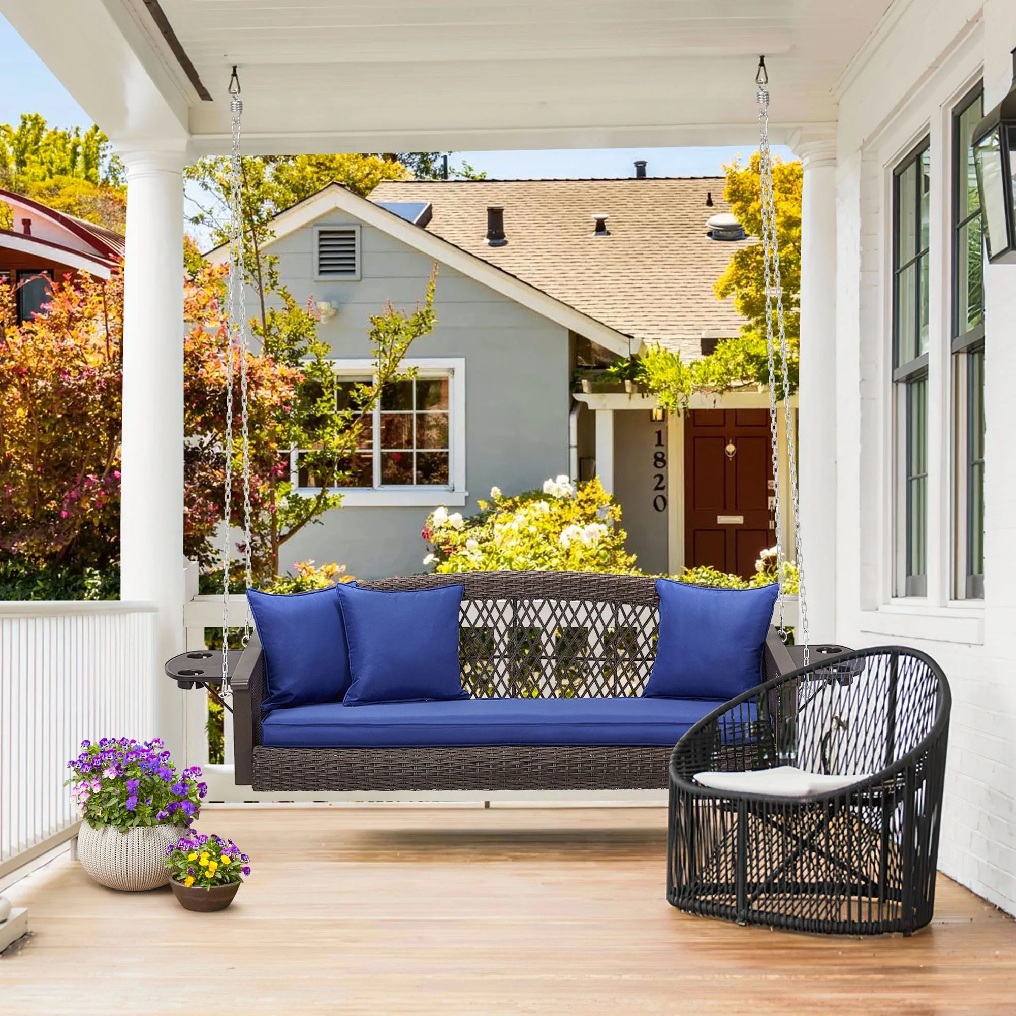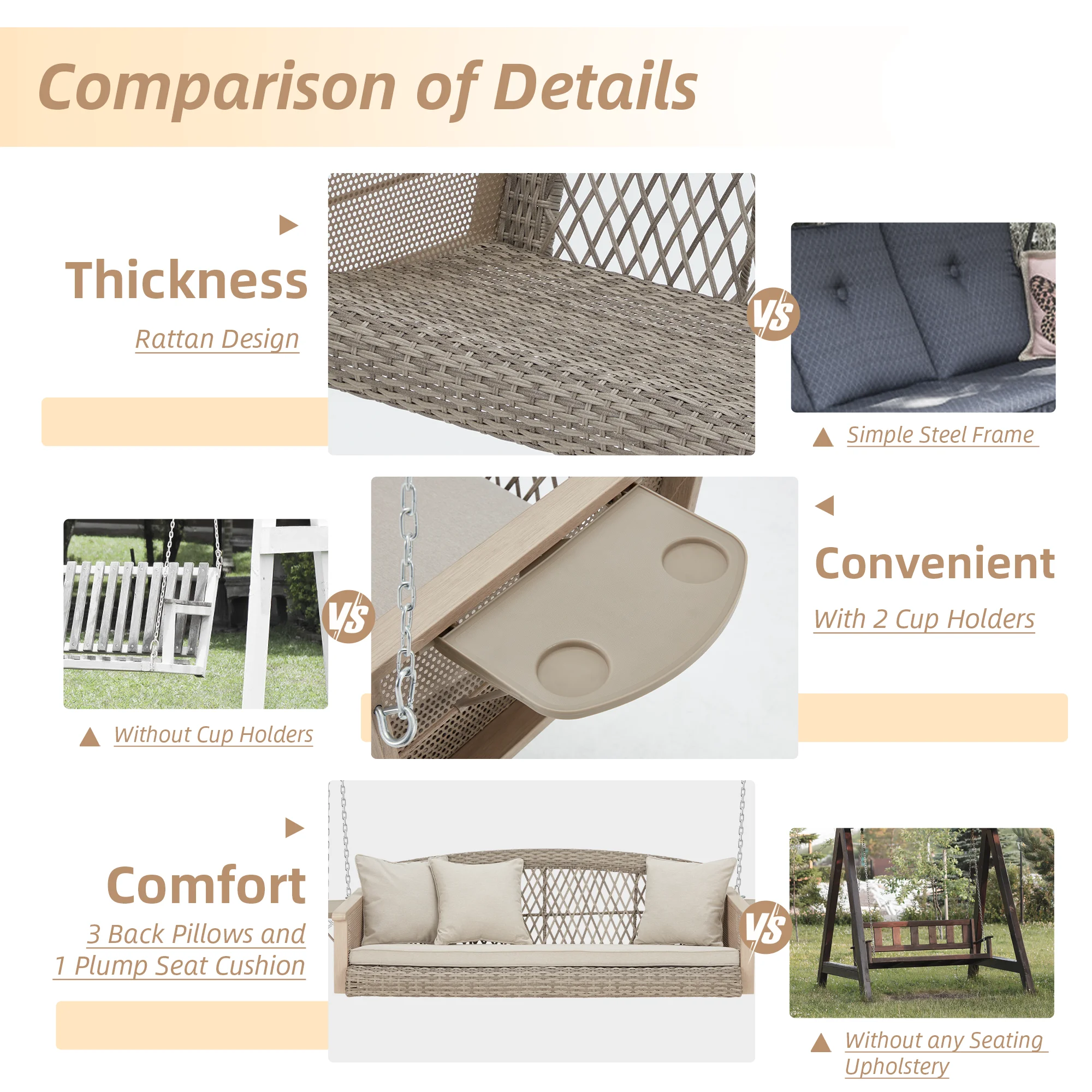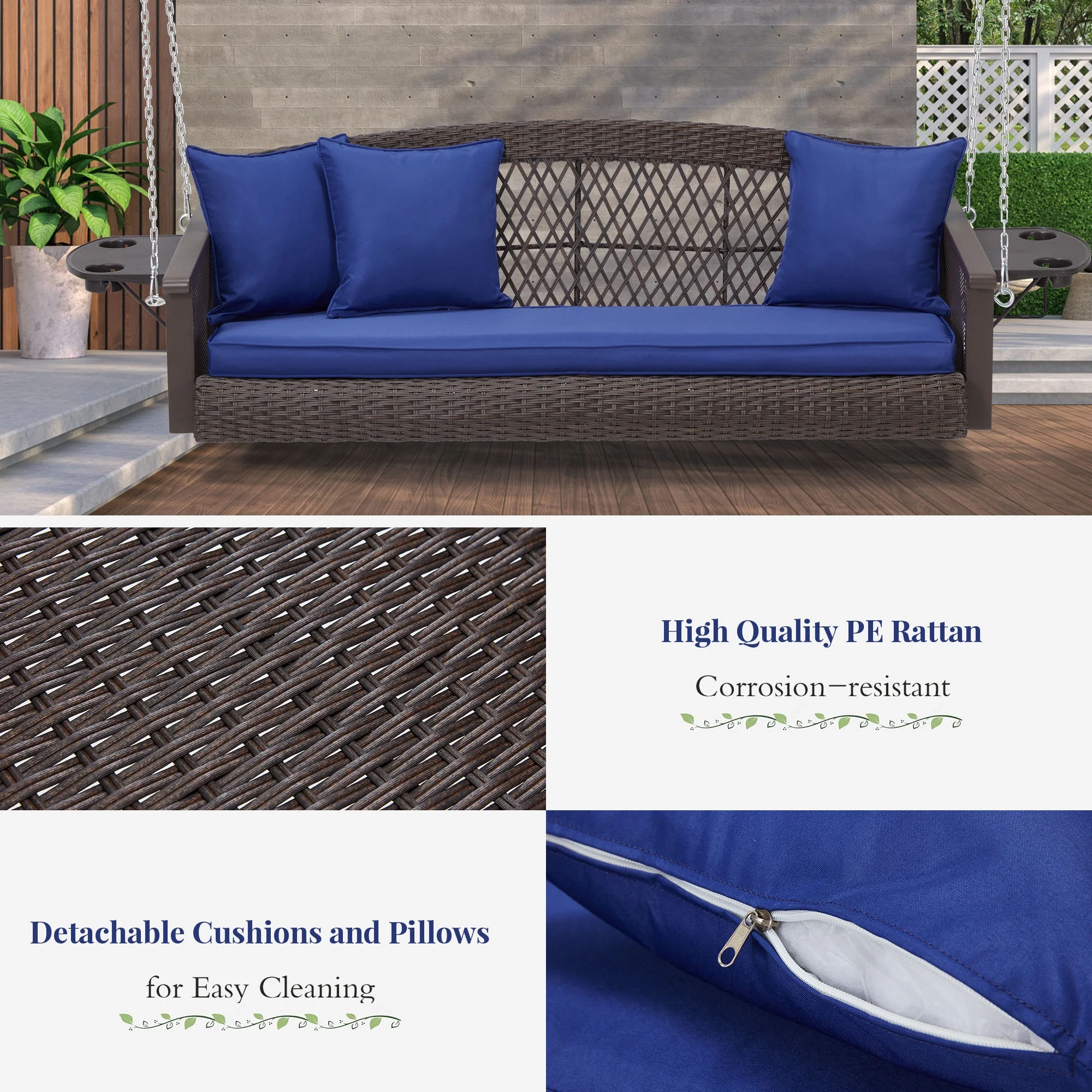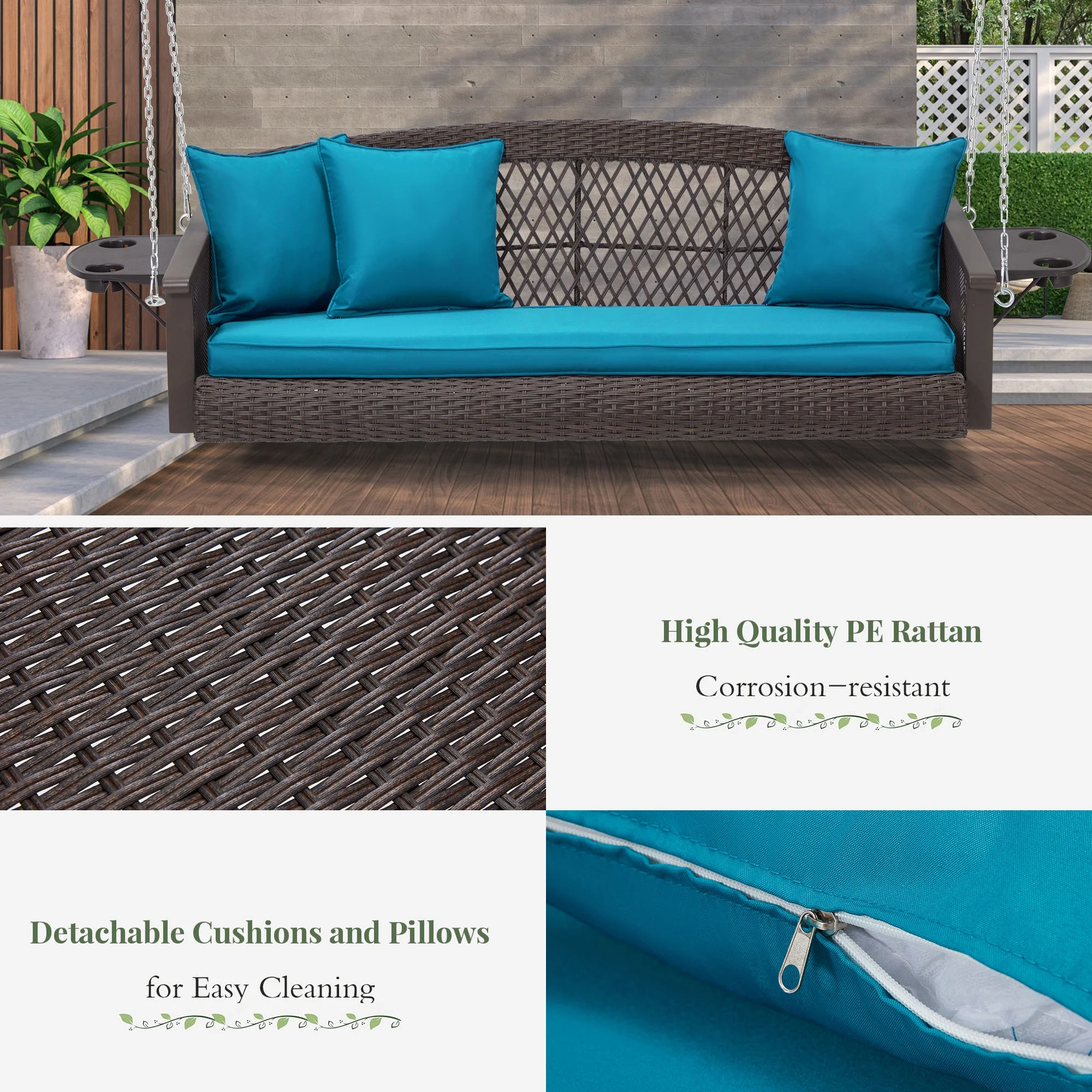- Rust-proof steel frame wrapped with hand-woven PE rattan for all-weather design