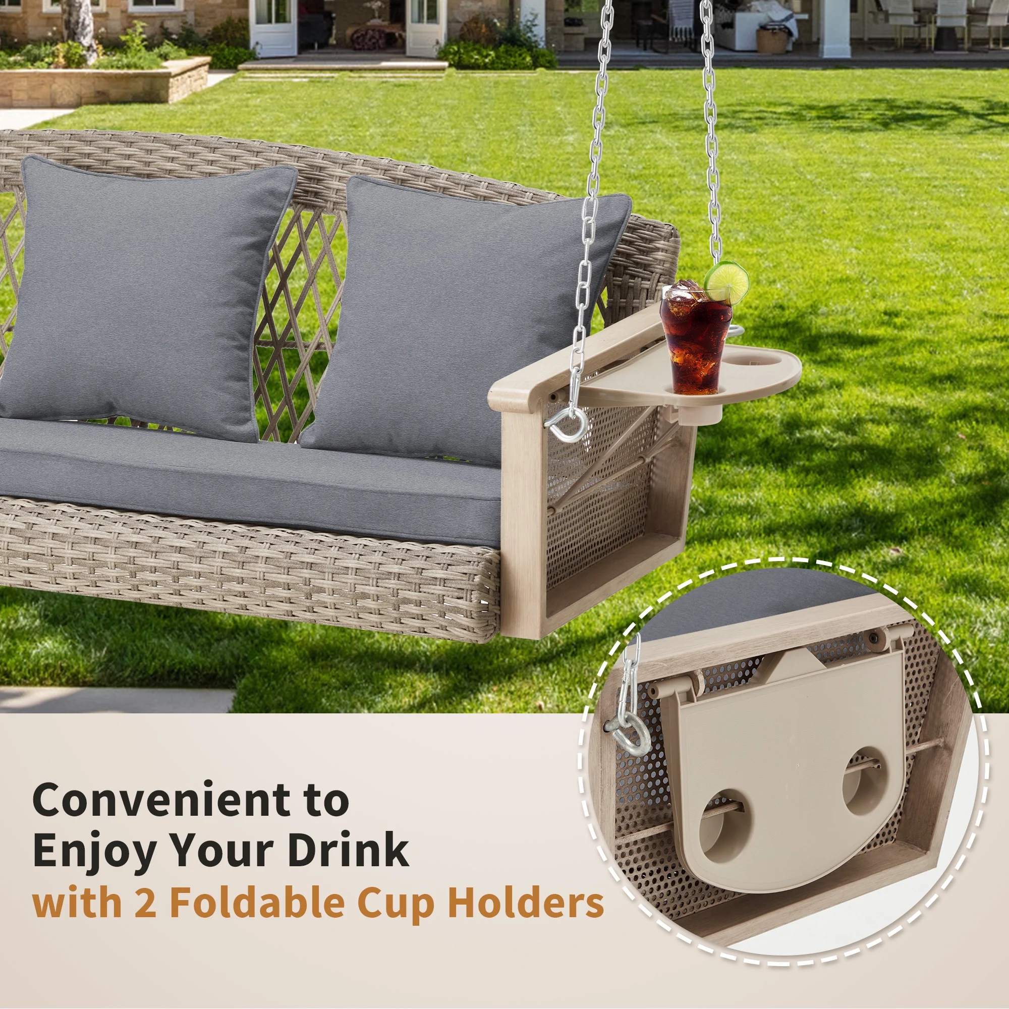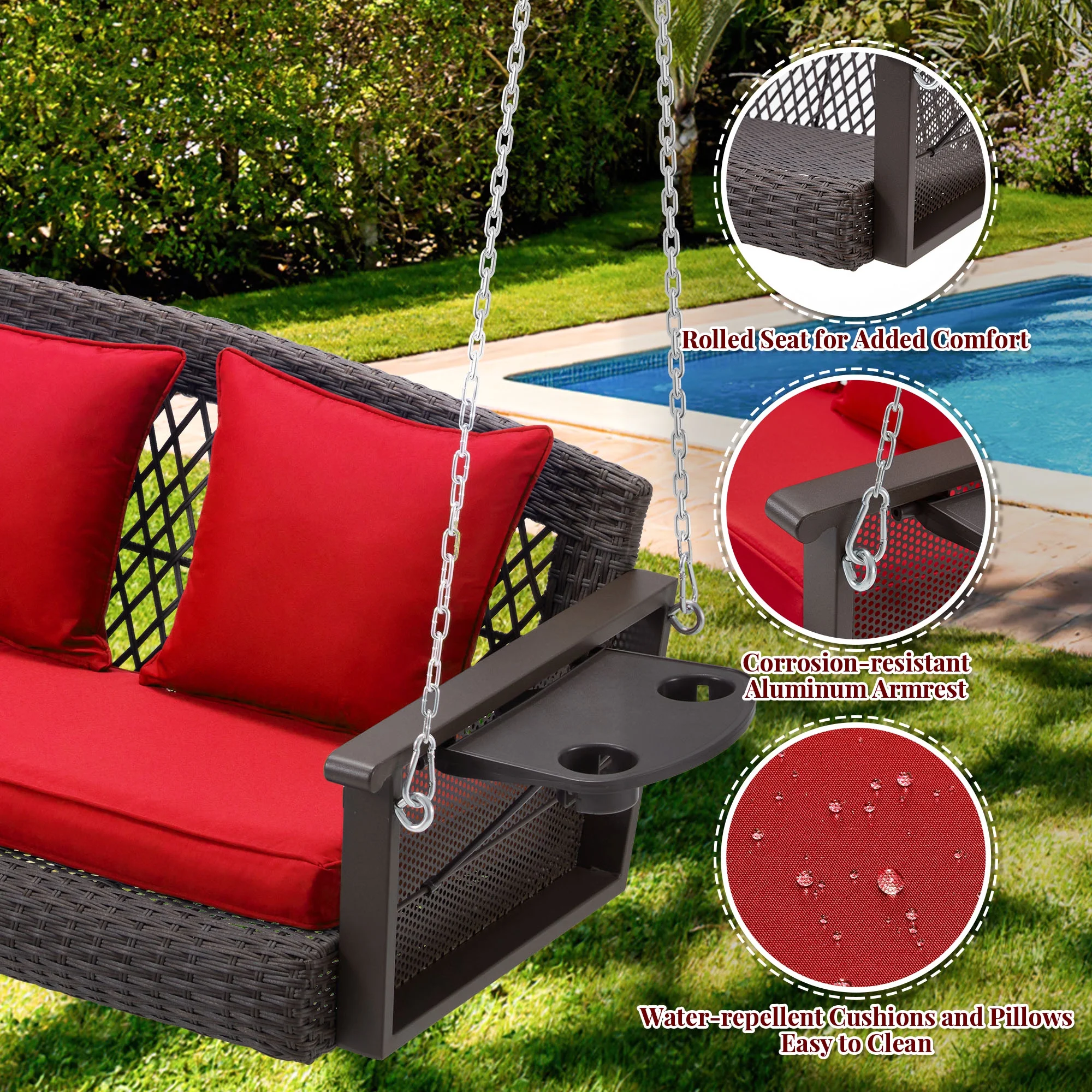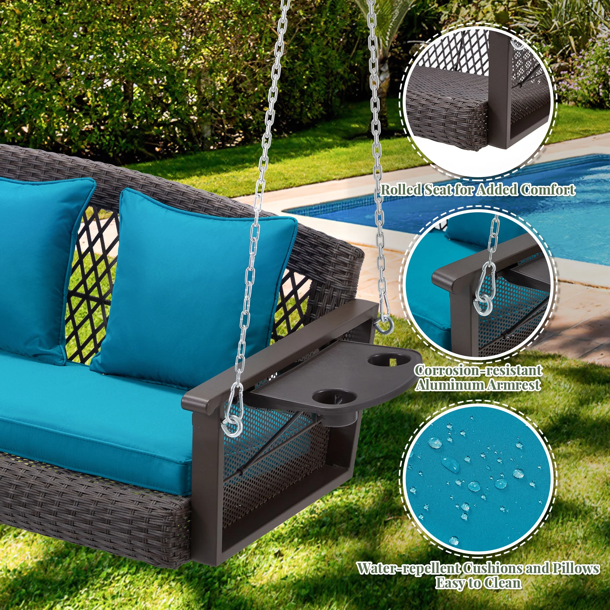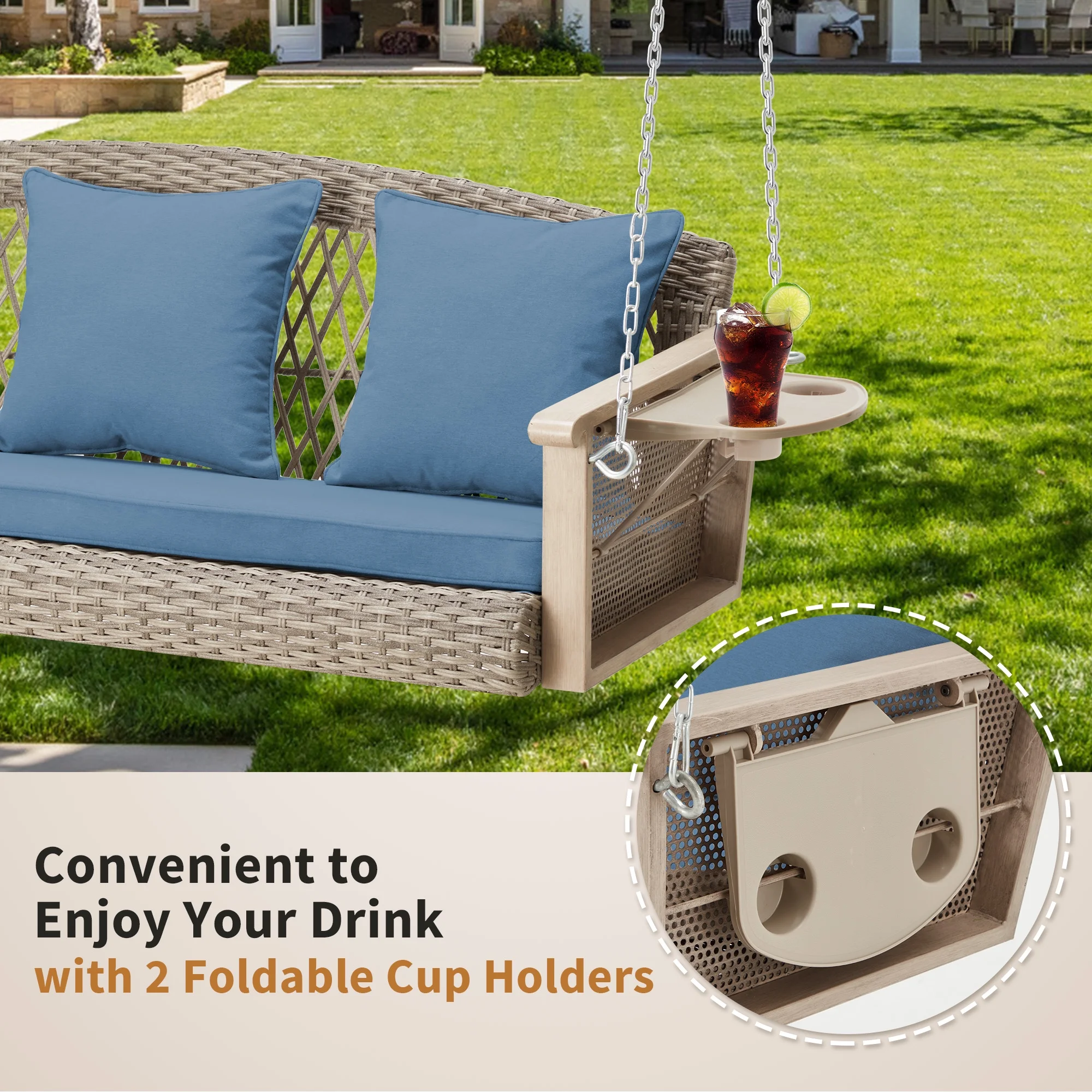 - Rust-proof steel frame wrapped with hand-woven PE rattan for all-weather design