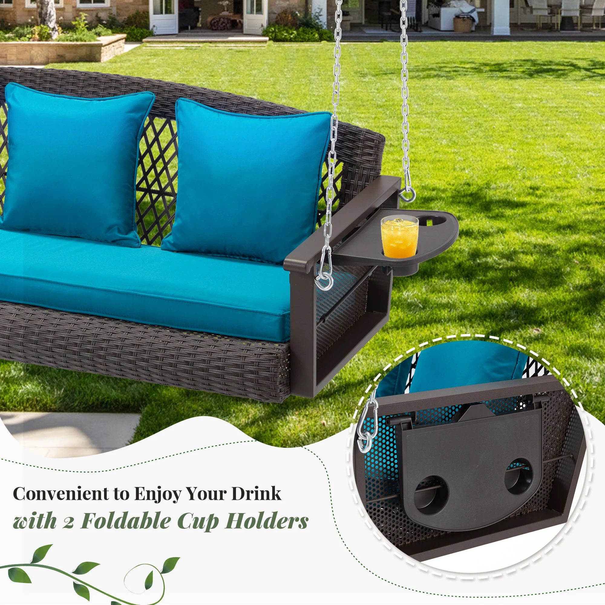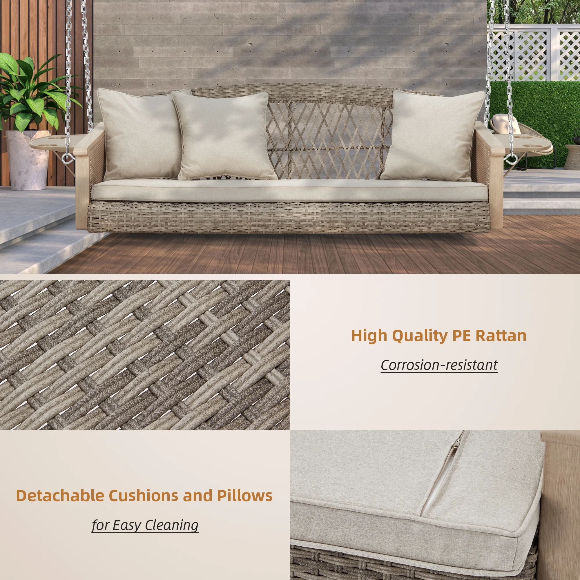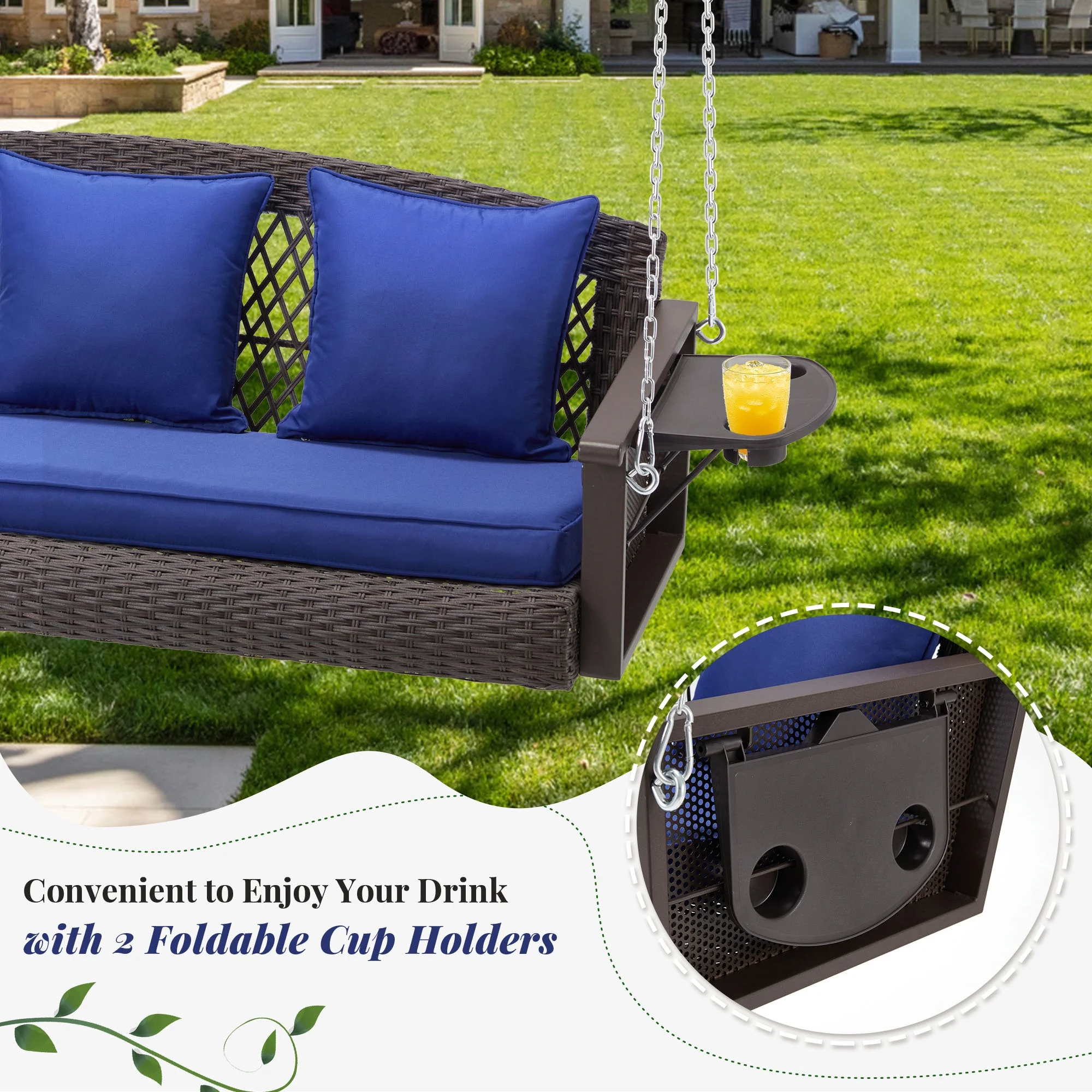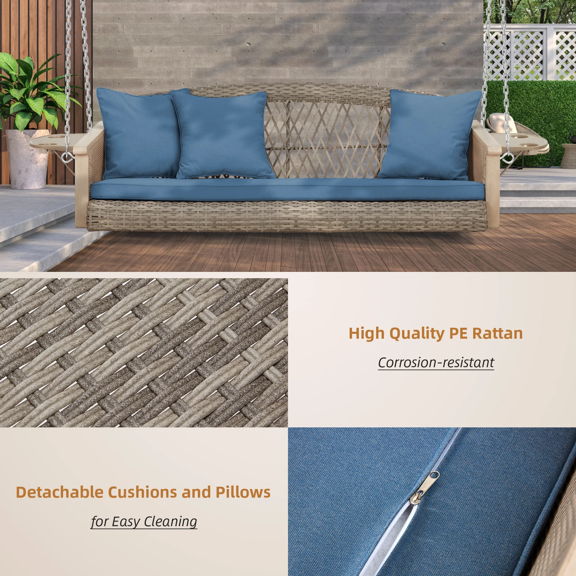 - Rust-proof steel frame wrapped with hand-woven PE rattan for all-weather design