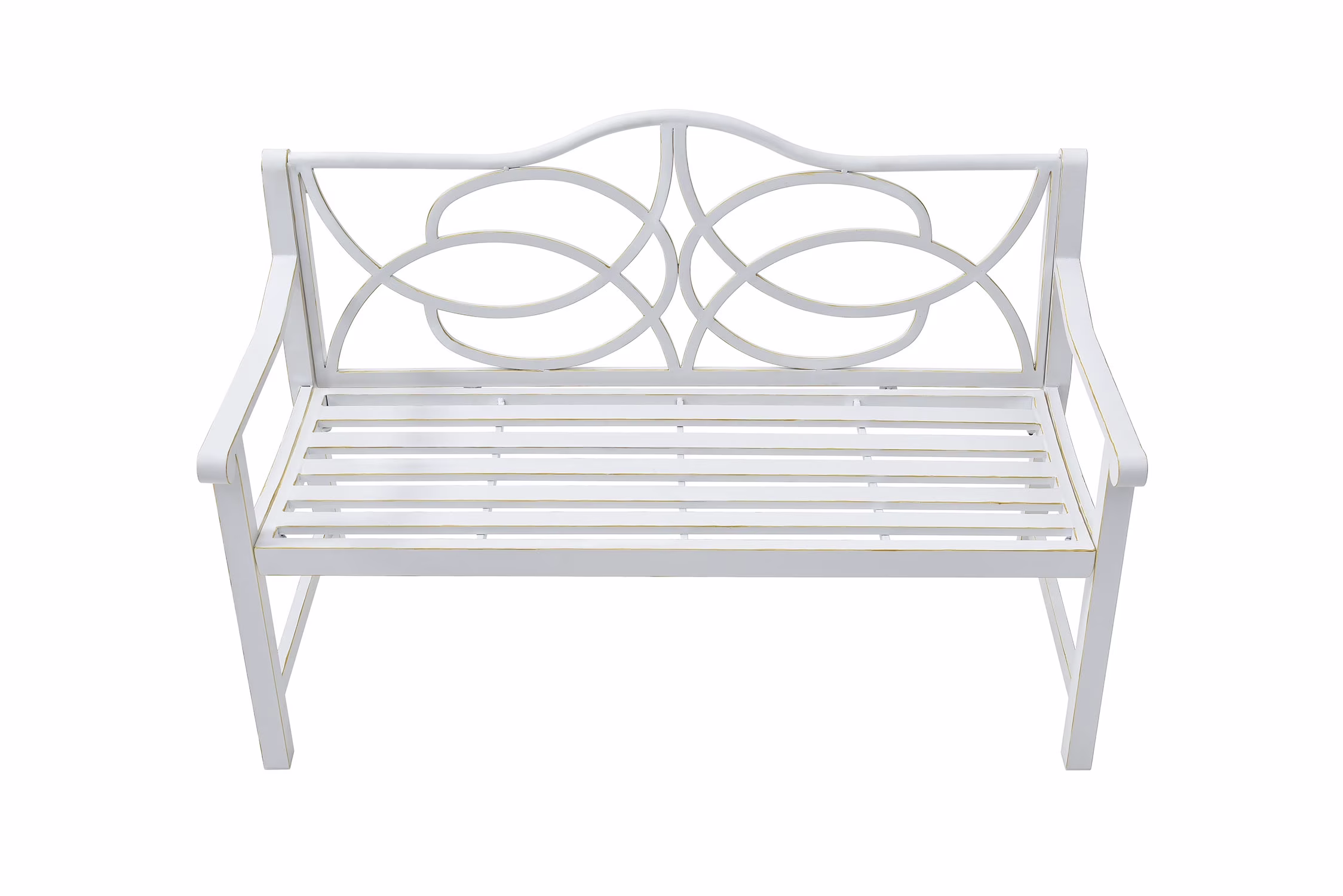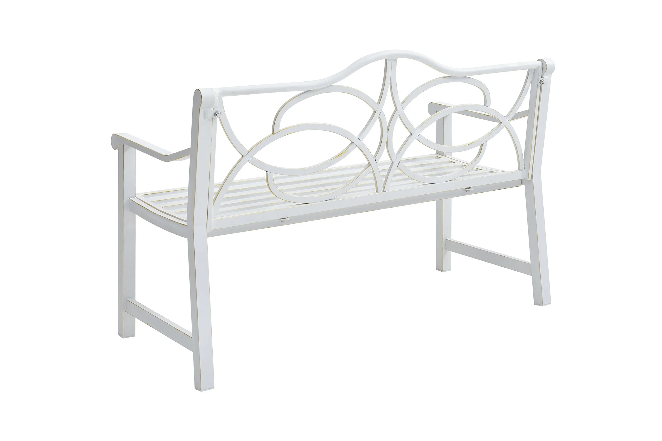 Royard Oaktree Outdoor Patio Bench, Garden Bench with Iron Metal Steel Frame, Backrest, and Armrests, Park Bench with Slatted Seat for 2 - 3 People for Lawn, Yard, Balcony, Porch, White