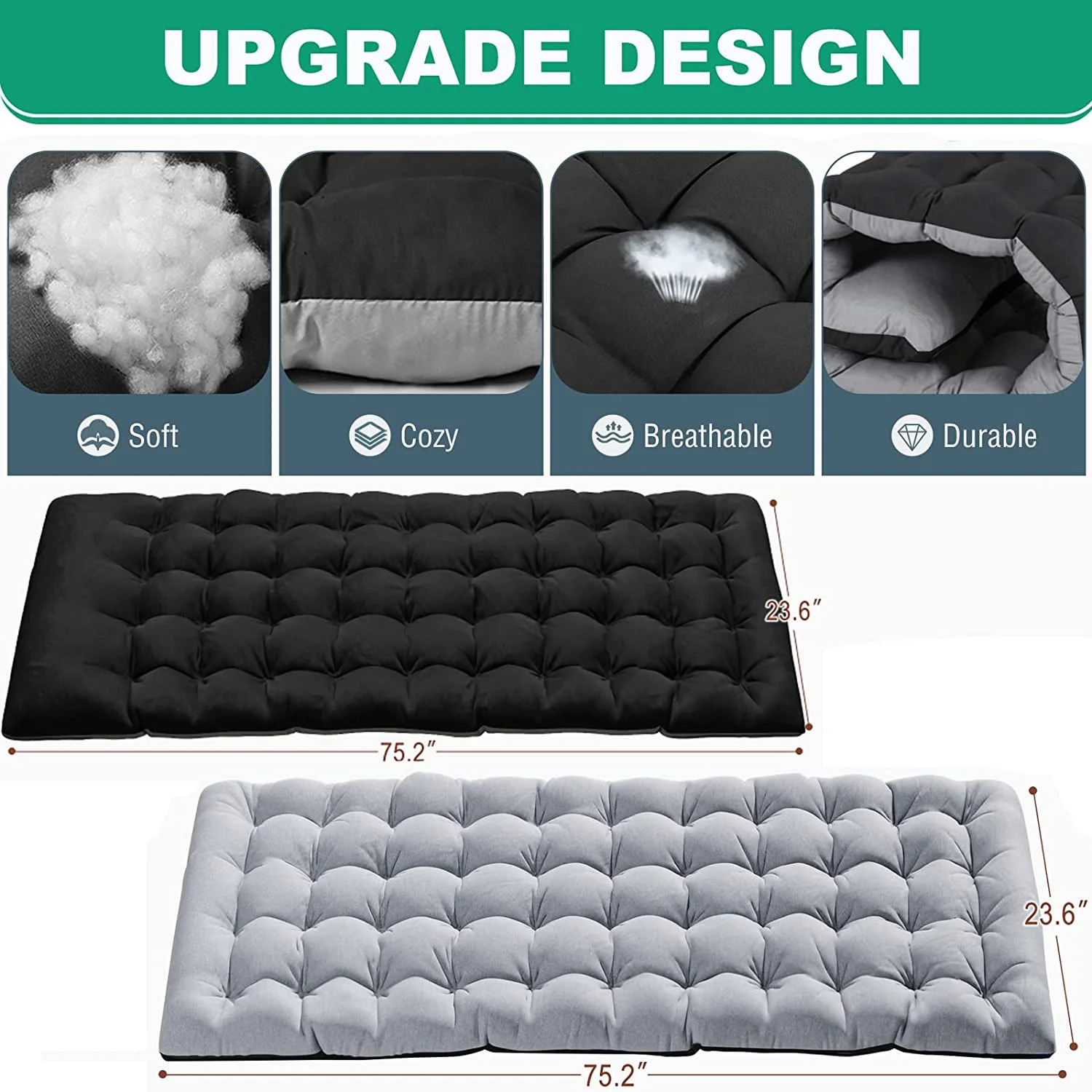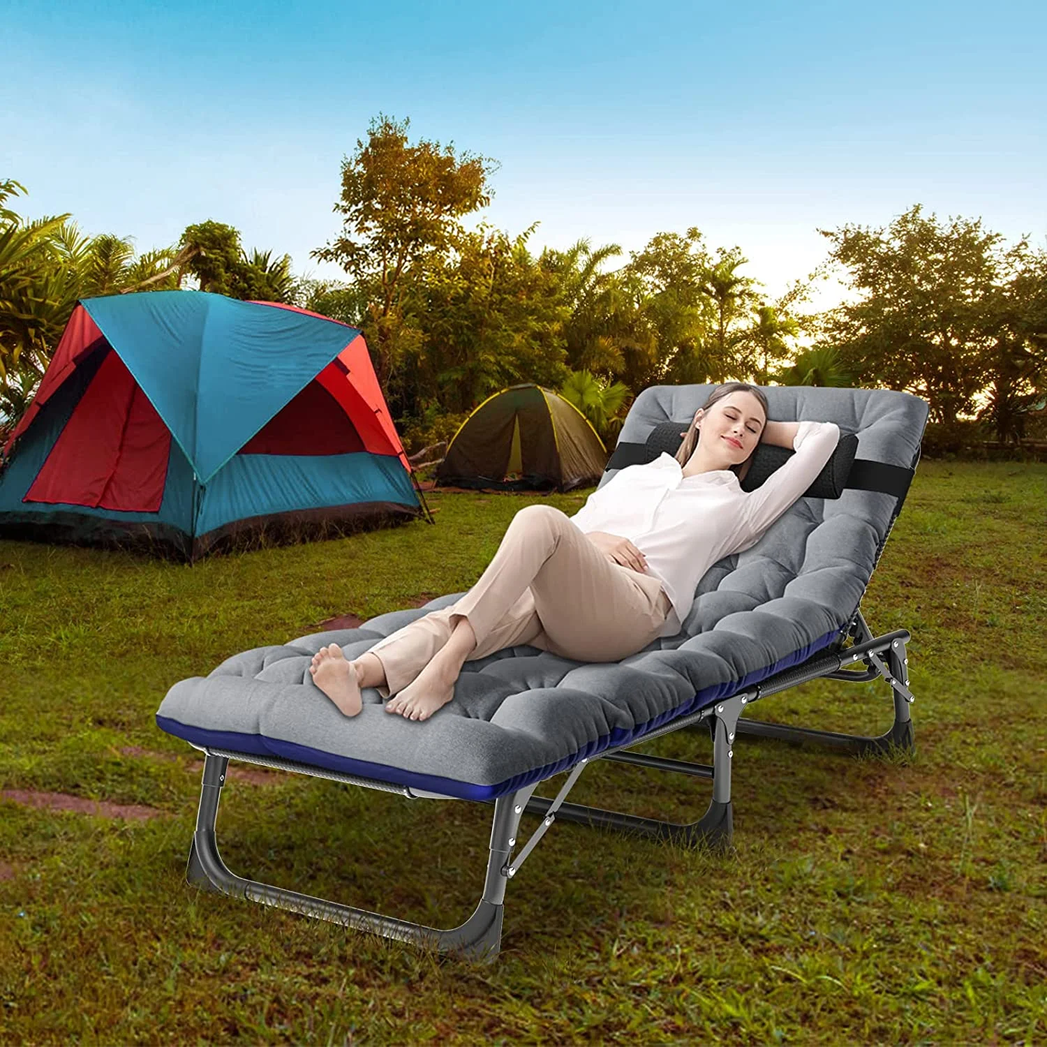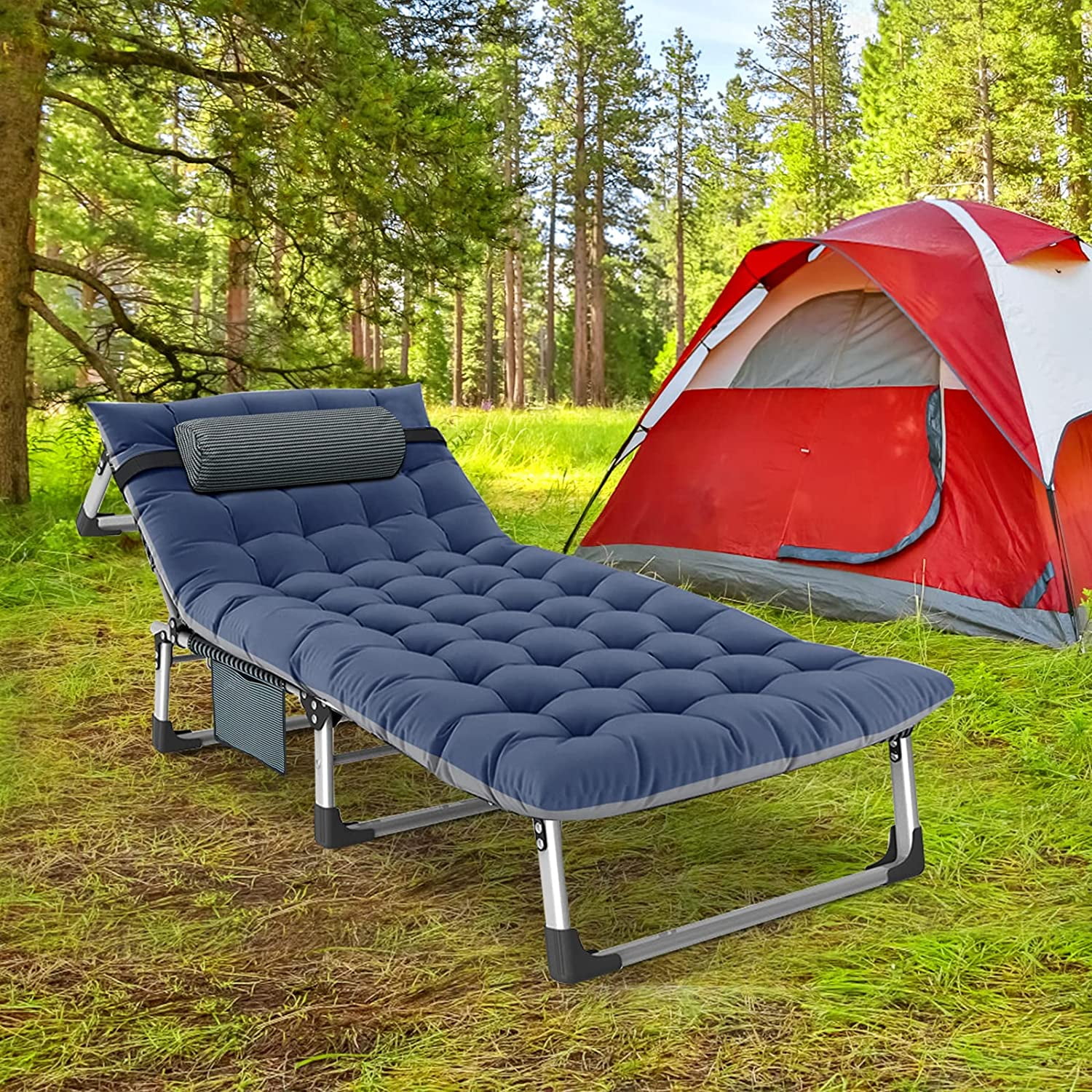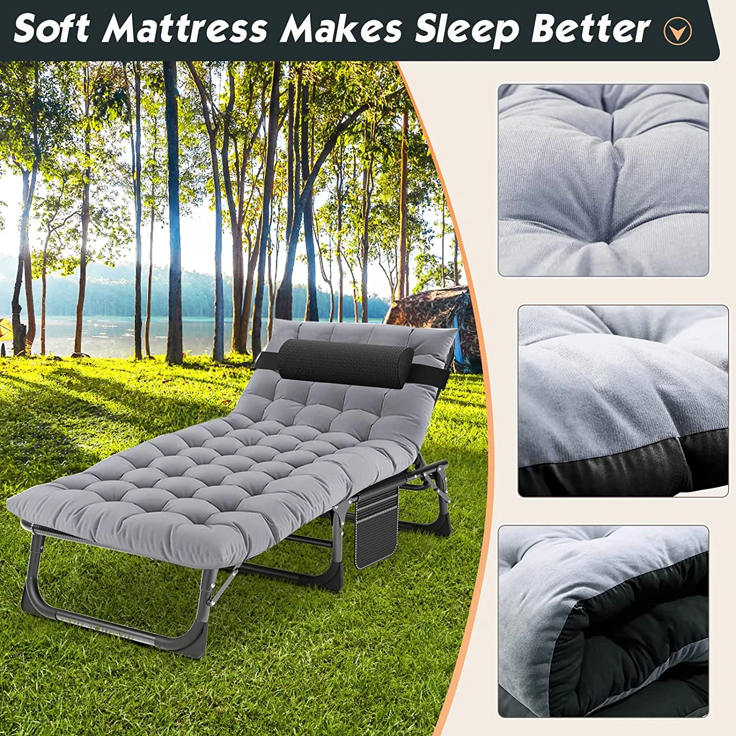 With 2 Sided mattress: Equipped with 2 Sided mattress, you can sleep more comfortably in this portable folding camping bed. Soft cushions add extra comfort, you will feel more comfortable and warm during sleep in fall and winter. In hot weather, the cushion can also be taken away for the breathable.