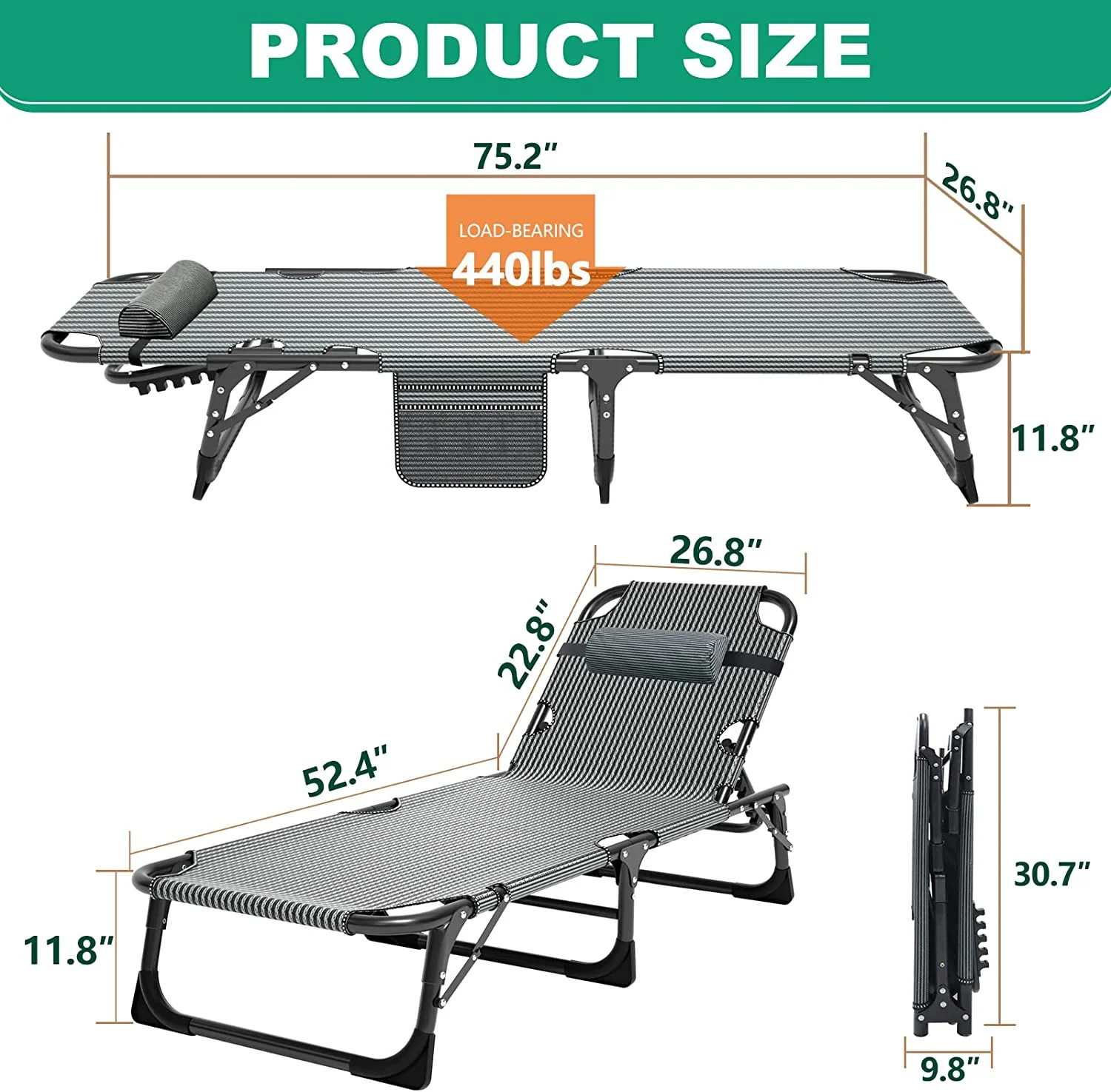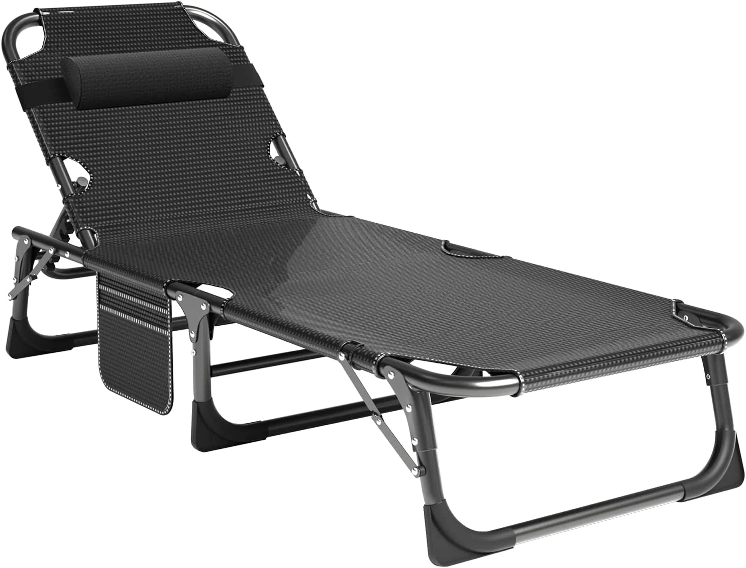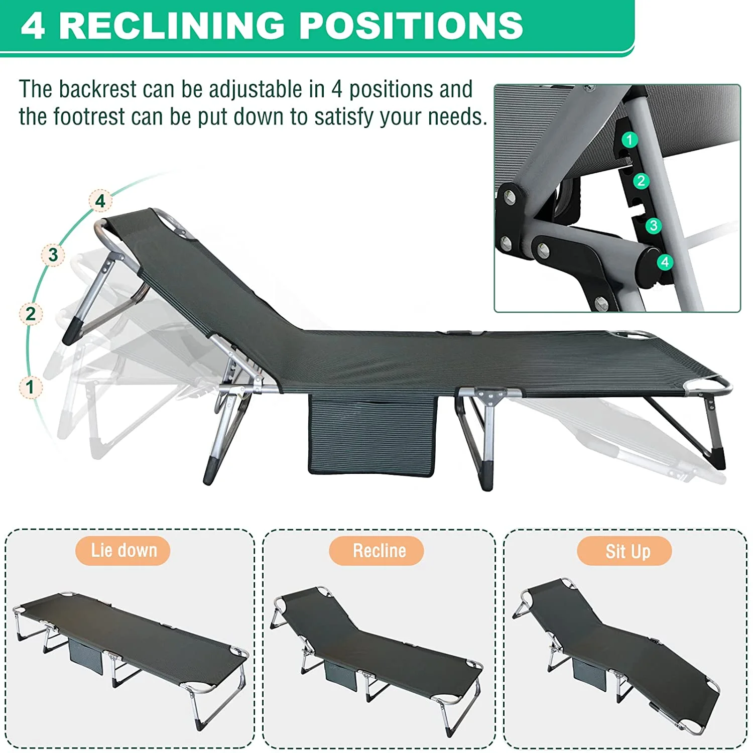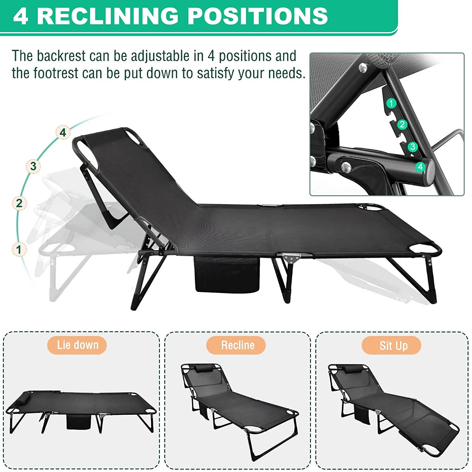 4 POSITIONS ADJUSTABLE: The adjustable lounge chairs are designed with 4 positions adjustable locking system, which allows you to adjust it to a comfortable position according to your needs. You can sit up, recline or lay flat.