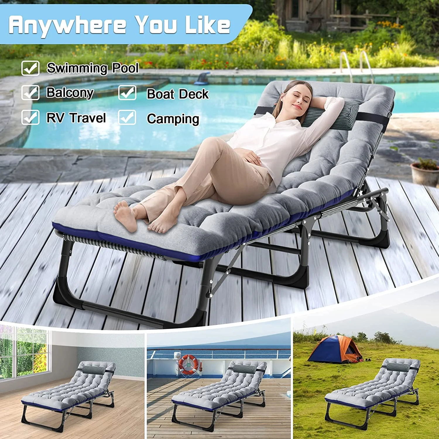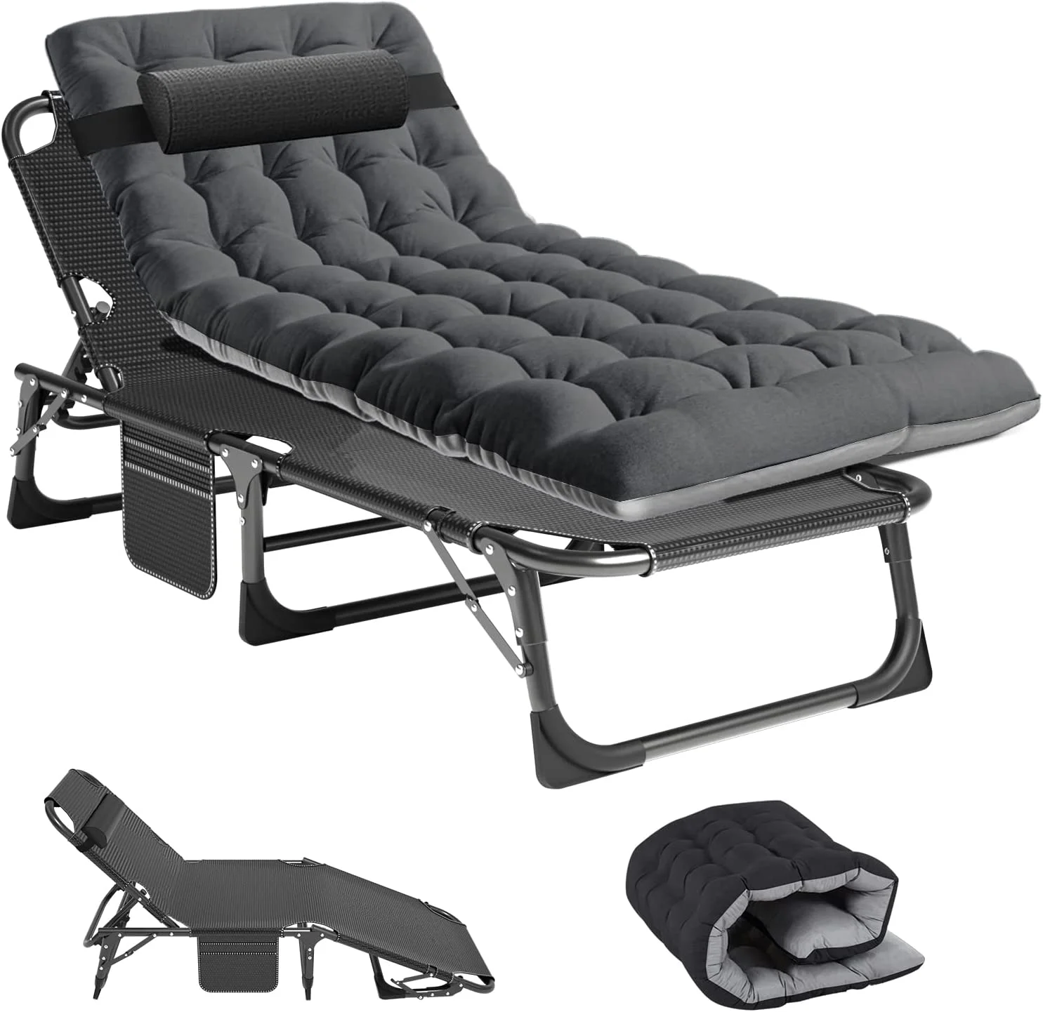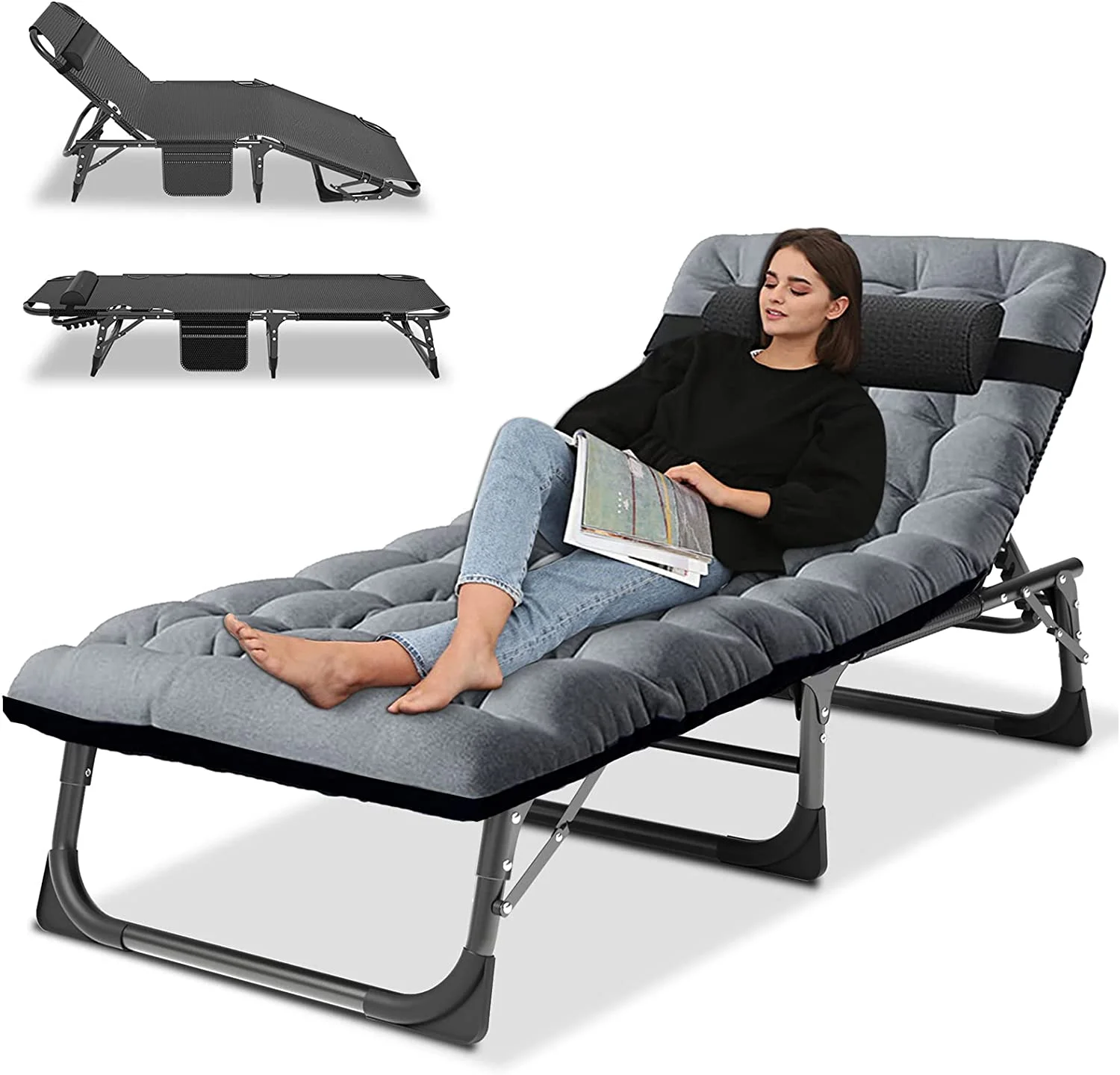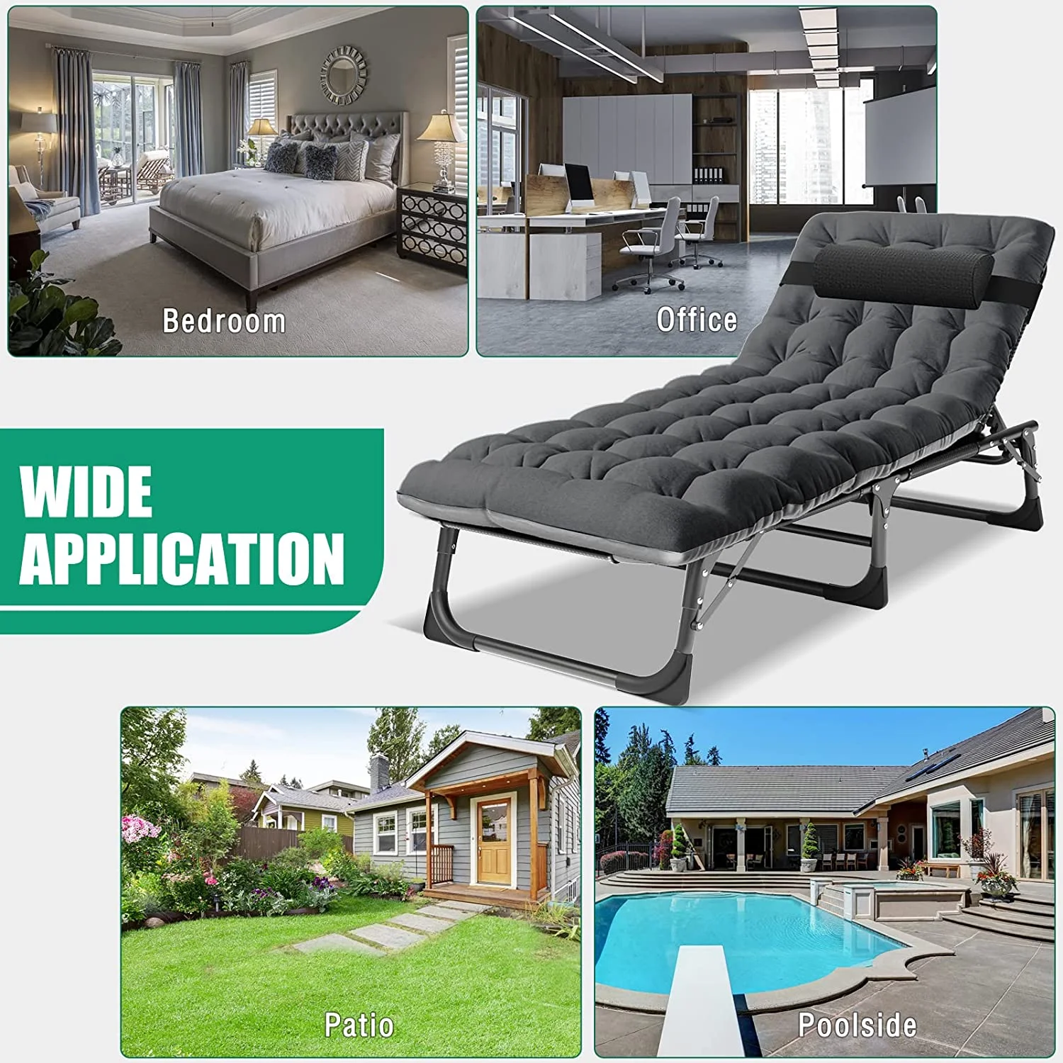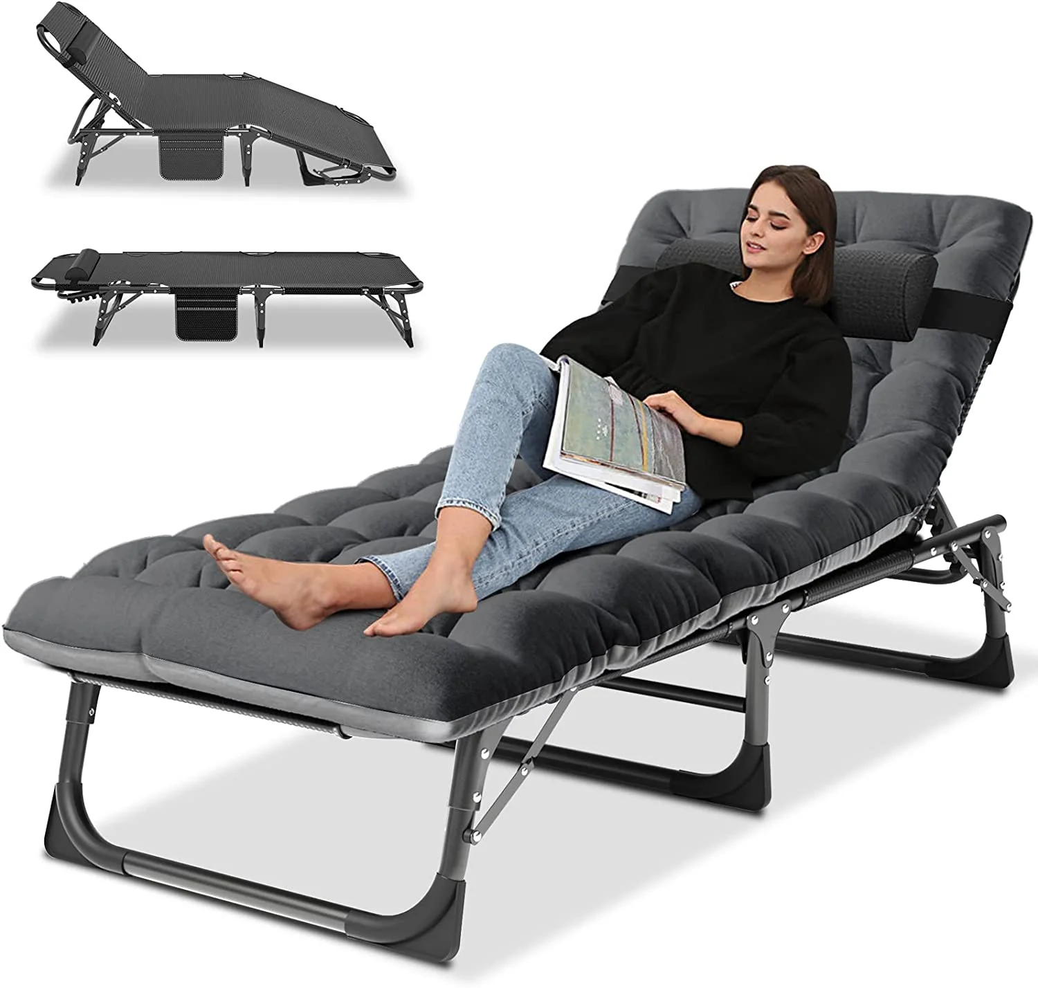 4 POSITIONS ADJUSTABLE: The adjustable lounge chairs are designed with 4 positions adjustable locking system, which allows you to adjust it to a comfortable position according to your needs. You can sit up, recline or lay flat.
