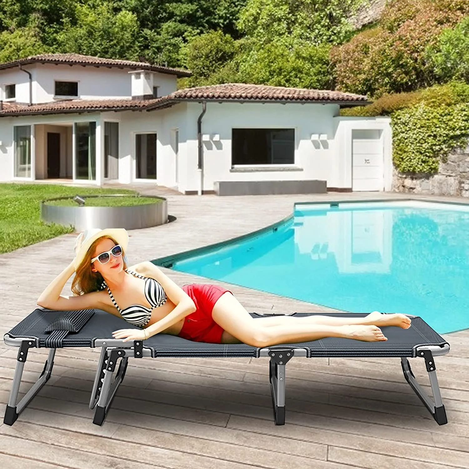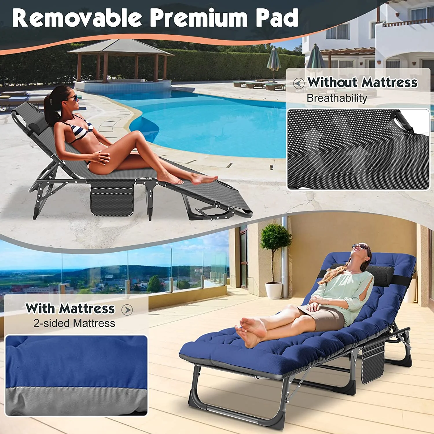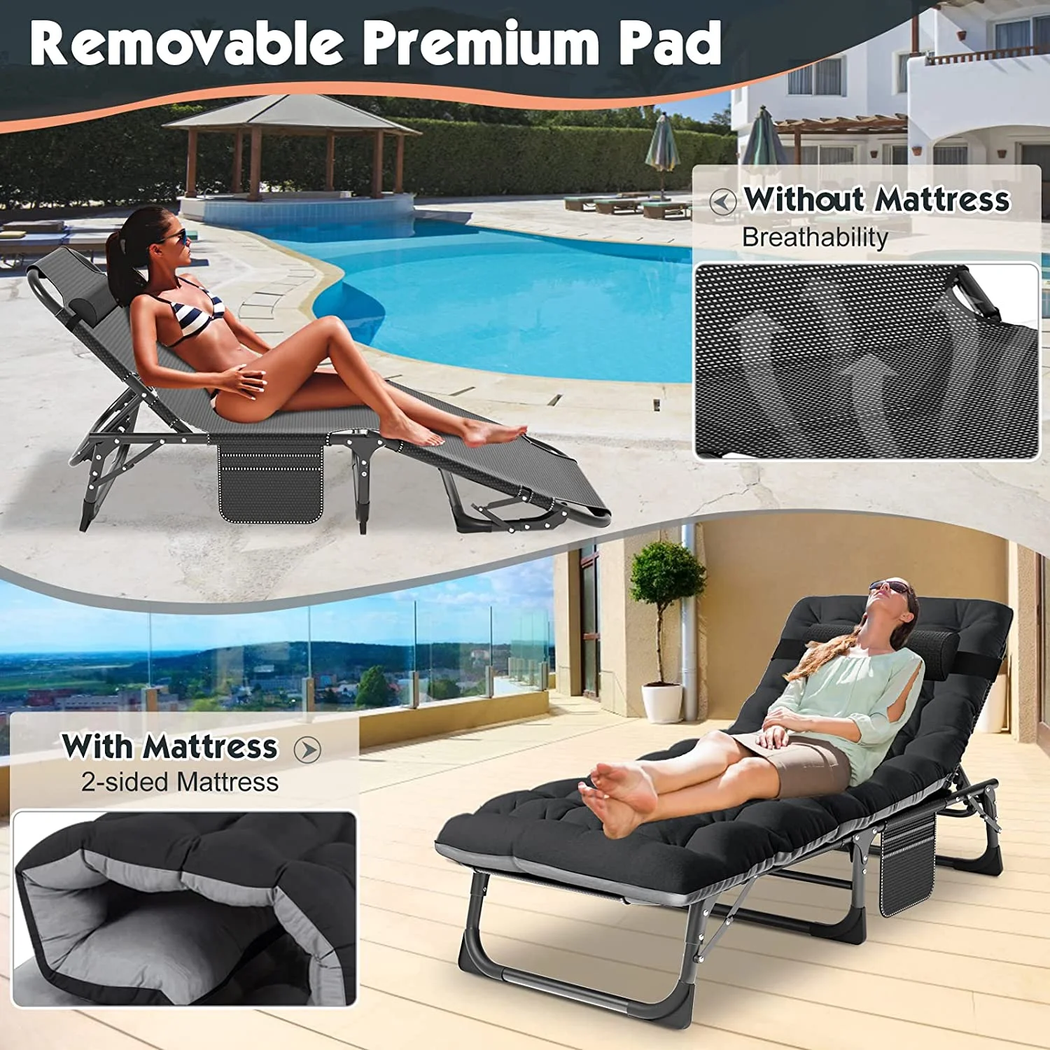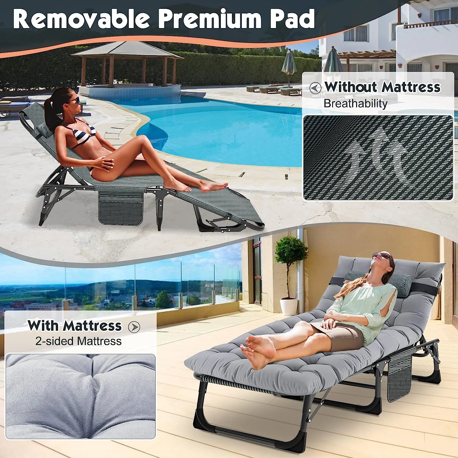 4 POSITIONS ADJUSTABLE: The adjustable lounge chairs are designed with 4 positions adjustable locking system, which allows you to adjust it to a comfortable position according to your needs. You can sit up, recline or lay flat.
