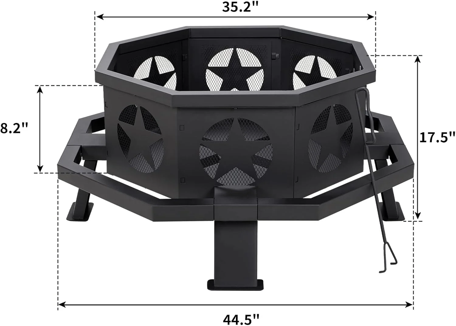 - Beautiful and efficiency design:Pentagram vents on firepit's sides and ridges on bottom to help elevate firewood for better air flow underneath fire, resulting in more efficient combustion and a larger, brighter flame.