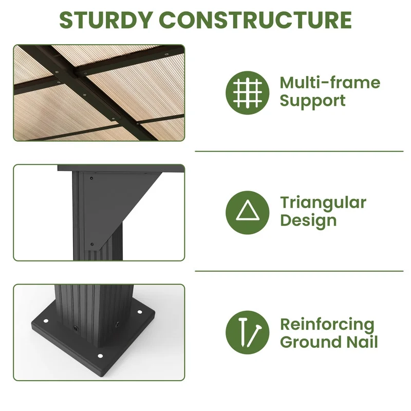 - ��PC MATERIAL�� Made of high quality PC material, the top effectively isolates UV rays and protects the space underneath from direct sunlight. Excellent corrosion resistance and anti-color fading ability, even if exposed to outdoor environment for a long time, it is still bright as new.