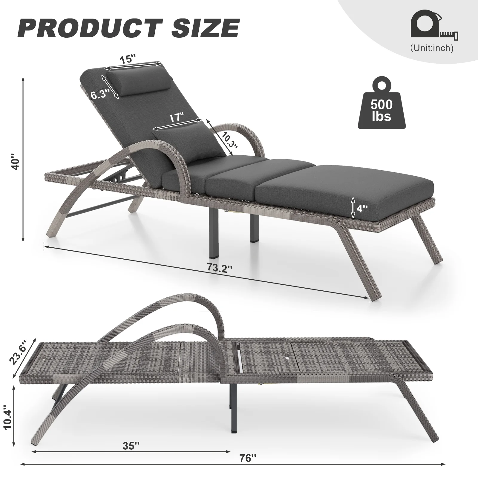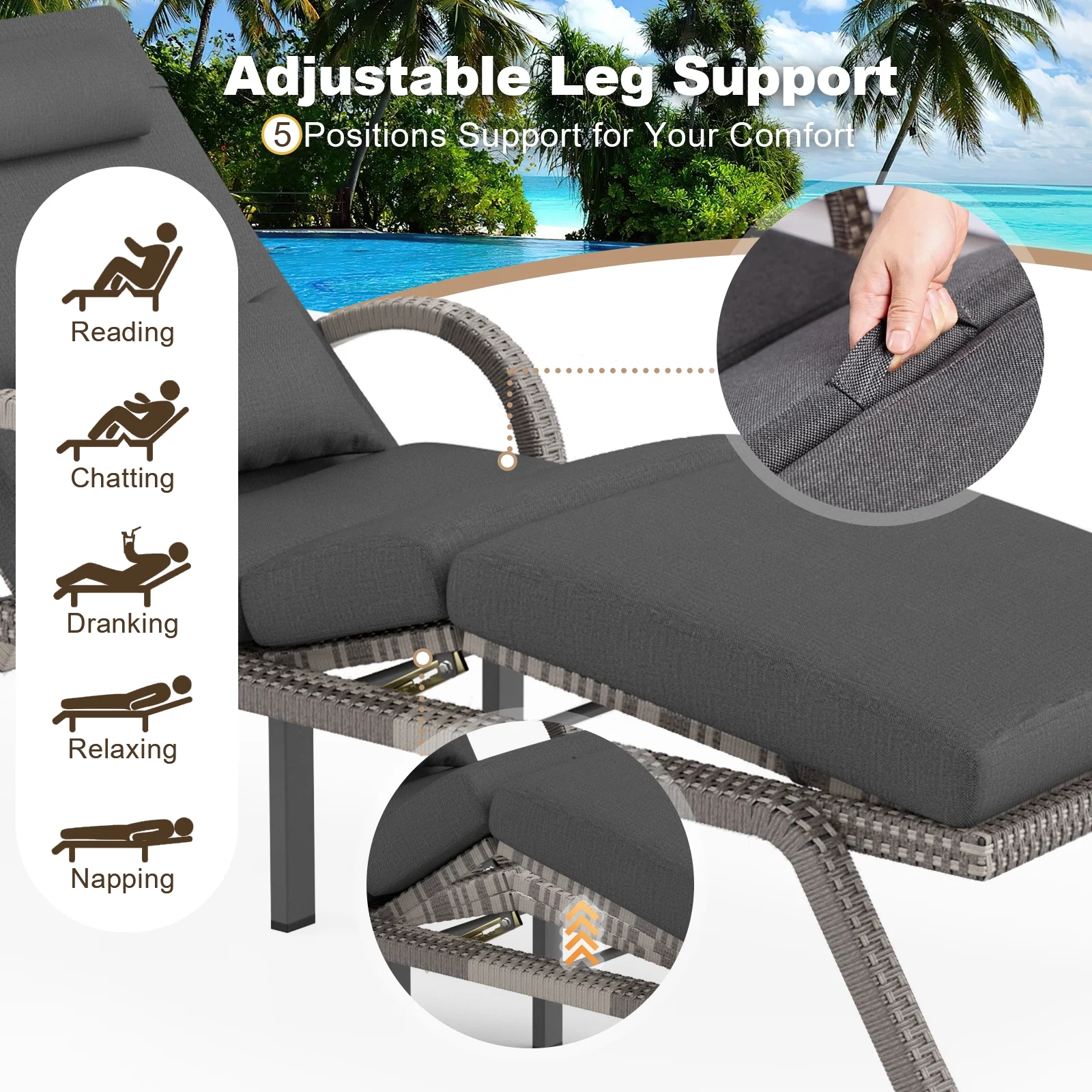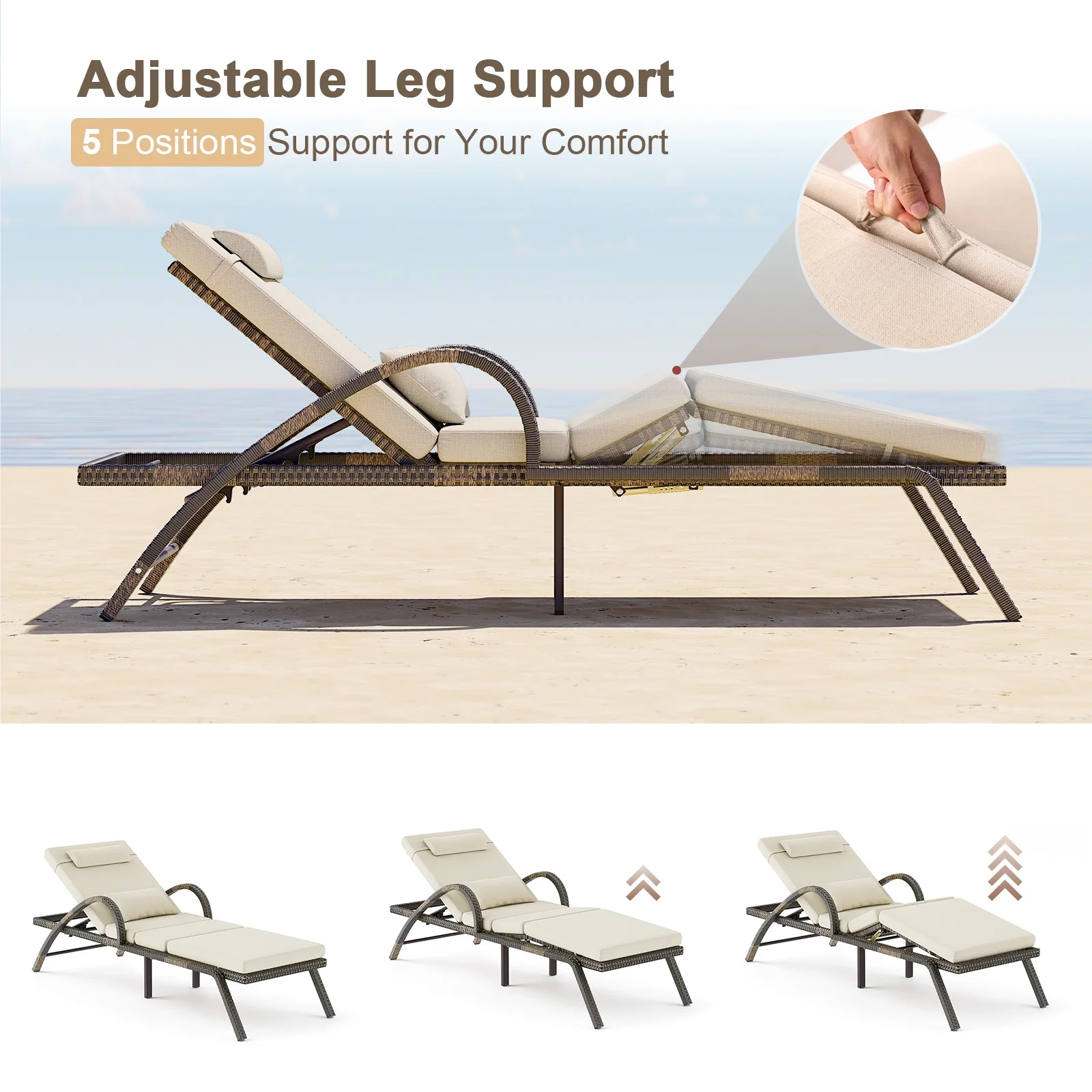 - ��Adjustable Backrest & Leg Support��- Designed with ergonomic principles in mind, our backrest and leg support of the outdoor chaise lounge each have 5 adjustable positions. Relieve muscle tension and pressure while catering to your various leisure needs �C whether reading, napping, or simply lounging.