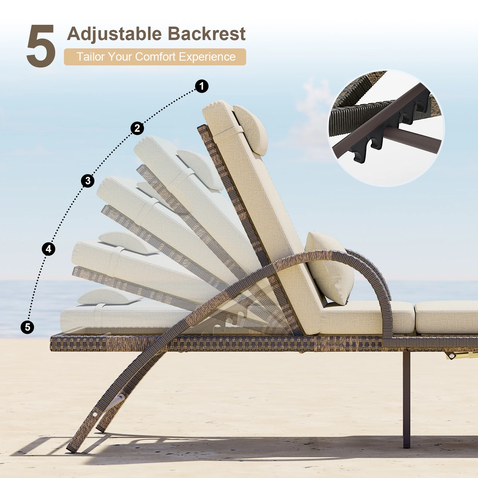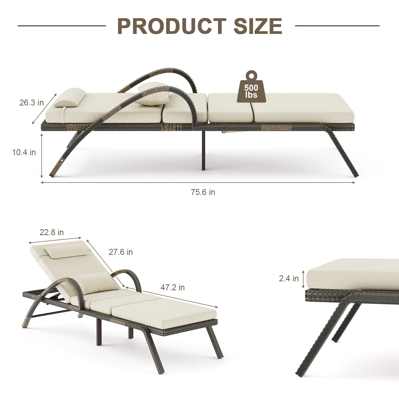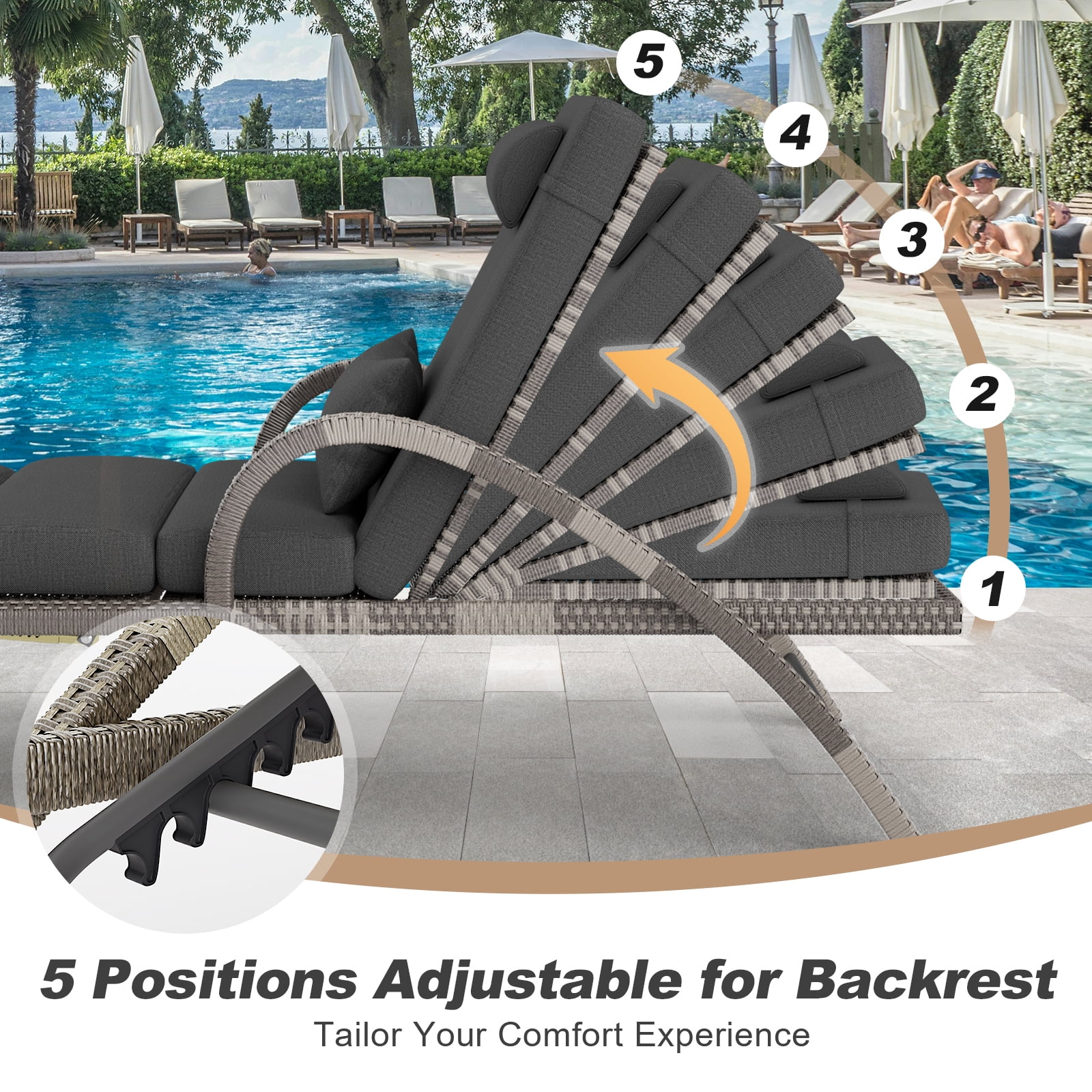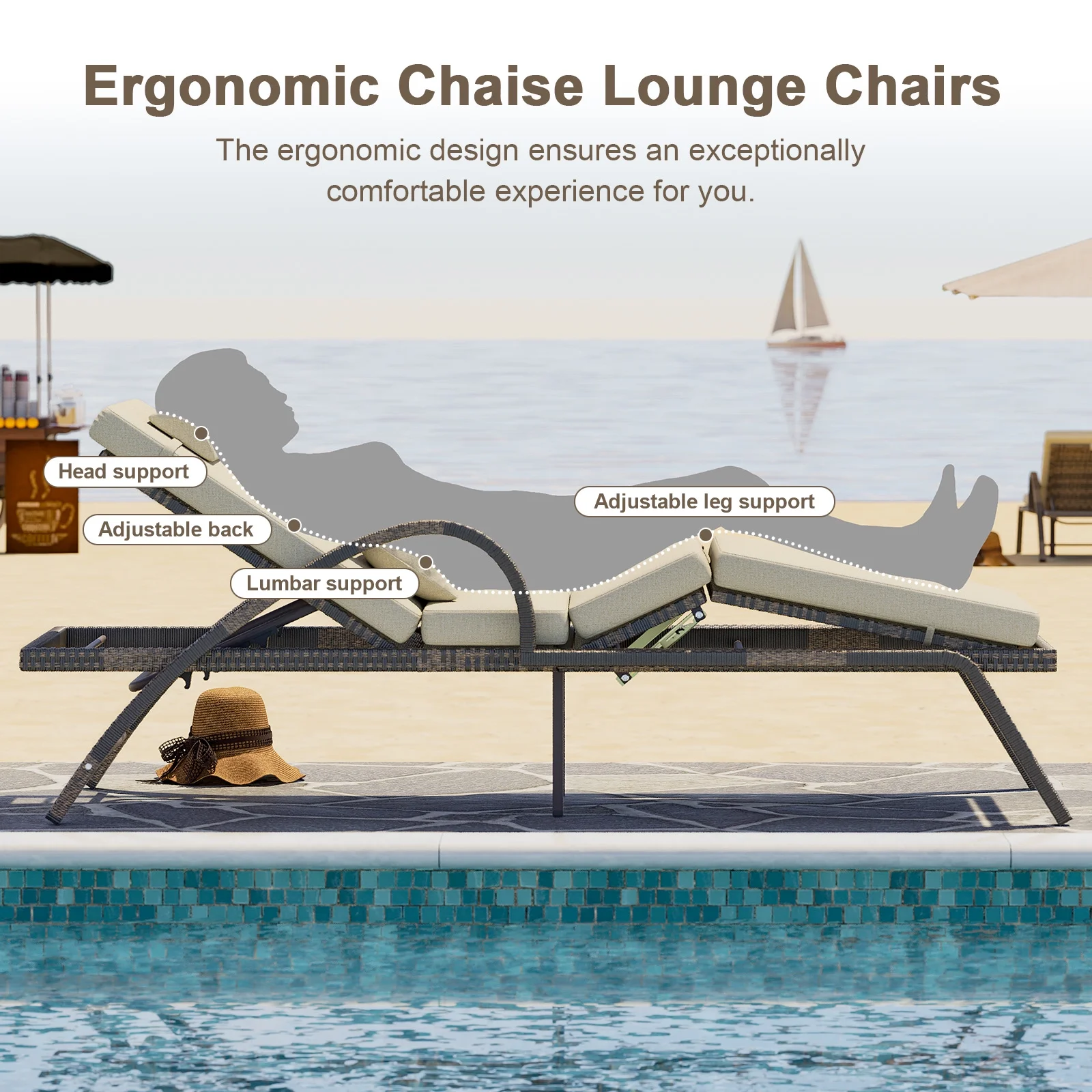 - ��Adjustable Backrest & Leg Support��- Designed with ergonomic principles in mind, our backrest and leg support of the outdoor chaise lounge each have 5 adjustable positions. Relieve muscle tension and pressure while catering to your various leisure needs �C whether reading, napping, or simply lounging.