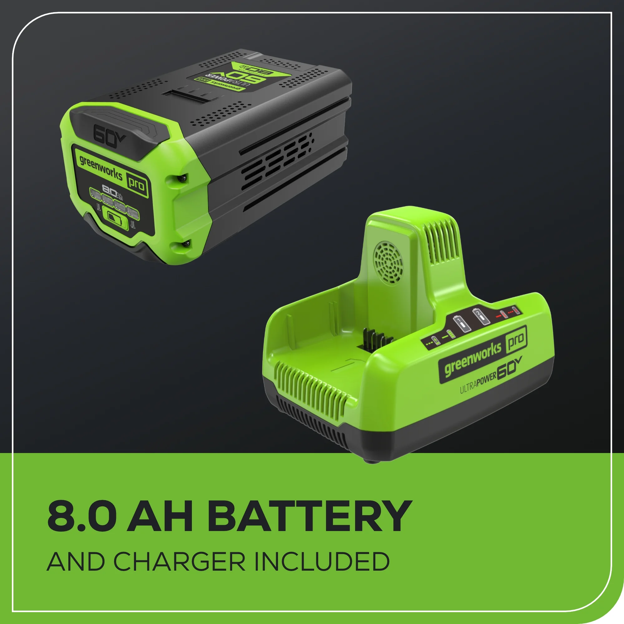 - Comes with 8Ah battery and charger