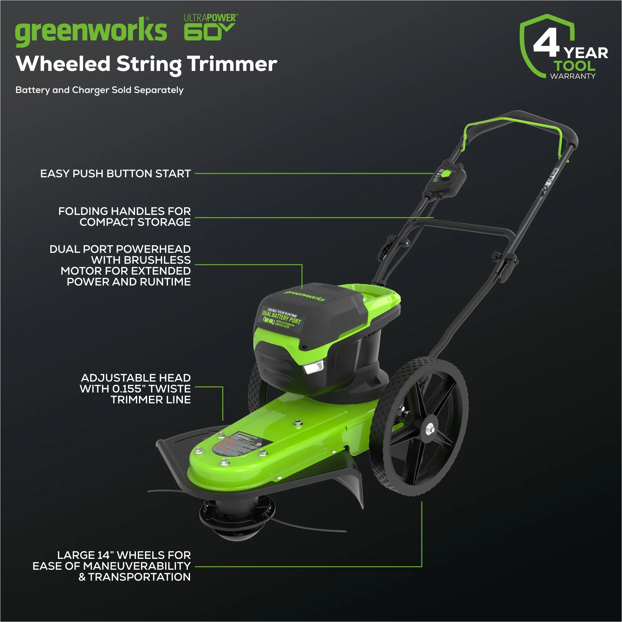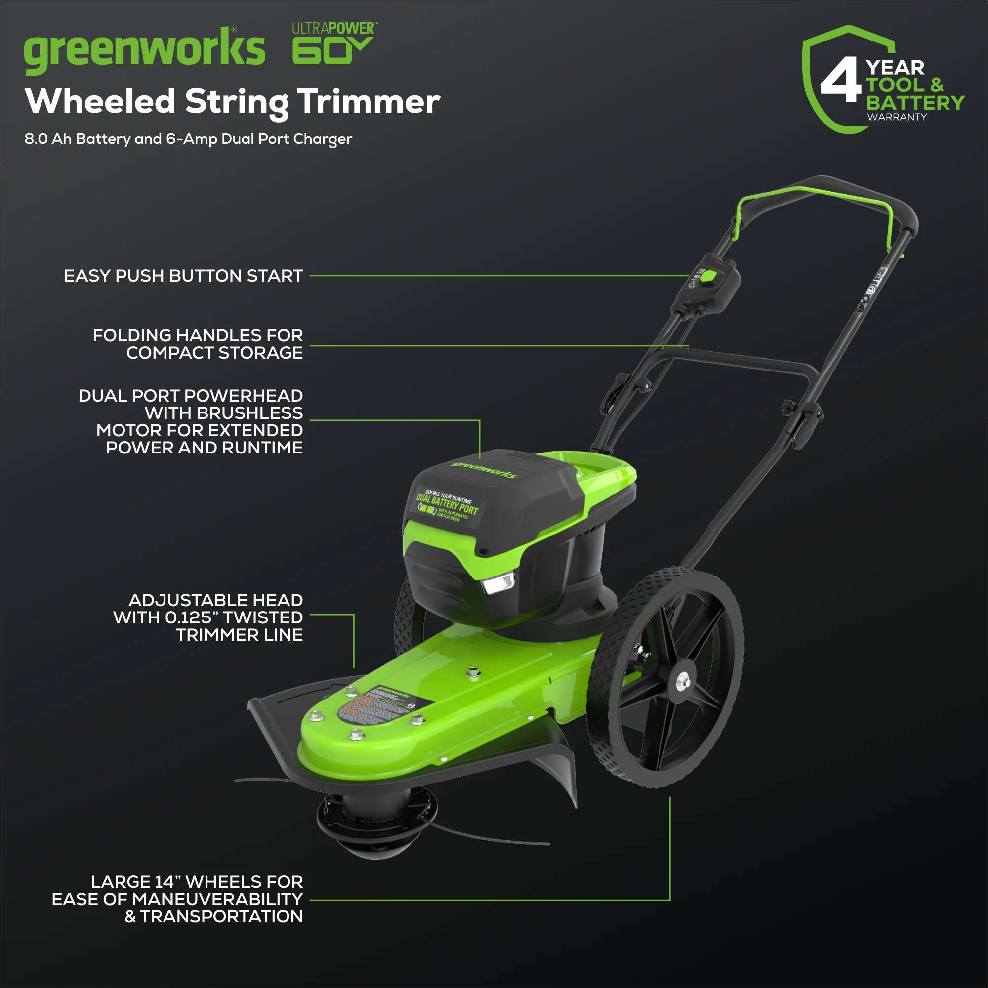 - .125" twisted line with adjustable head