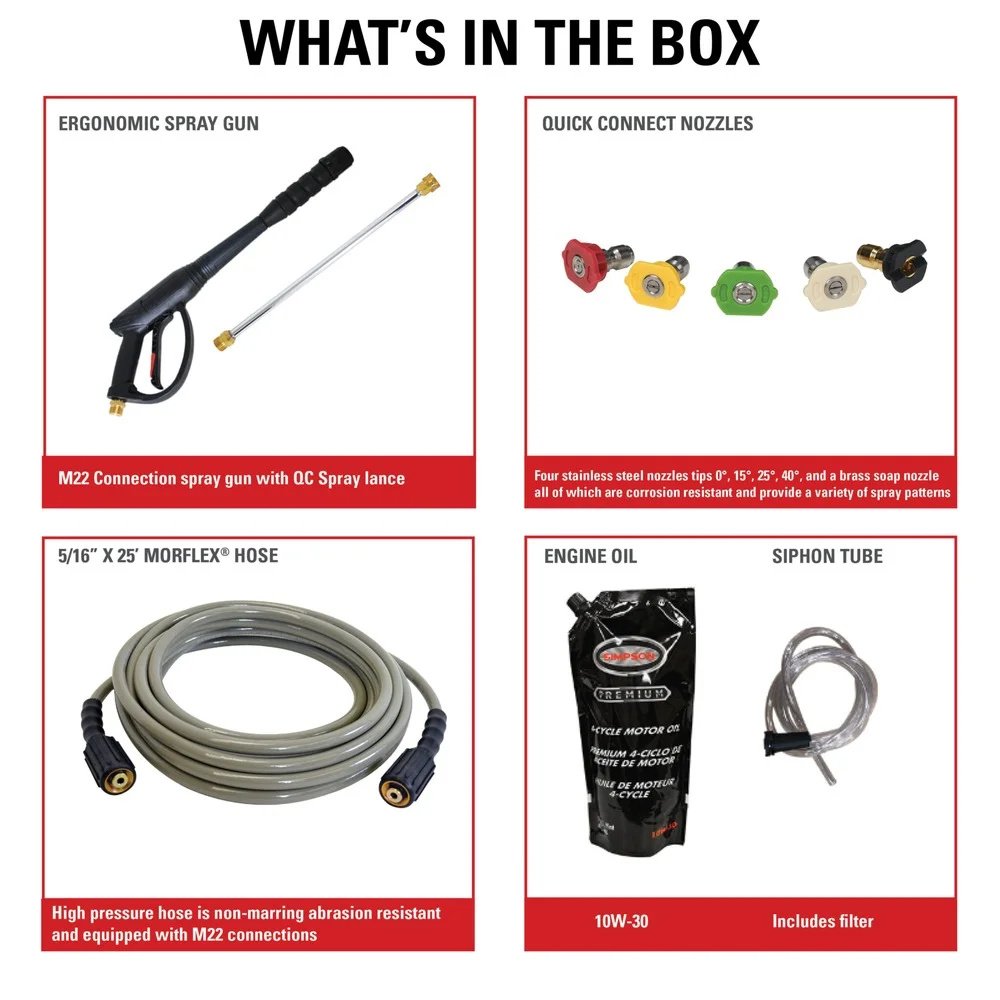 - 5 Quick connect nozzle tips, 0��, 15��, 25��, 40�� and soap nozzle to use for a variety of cleaning applications