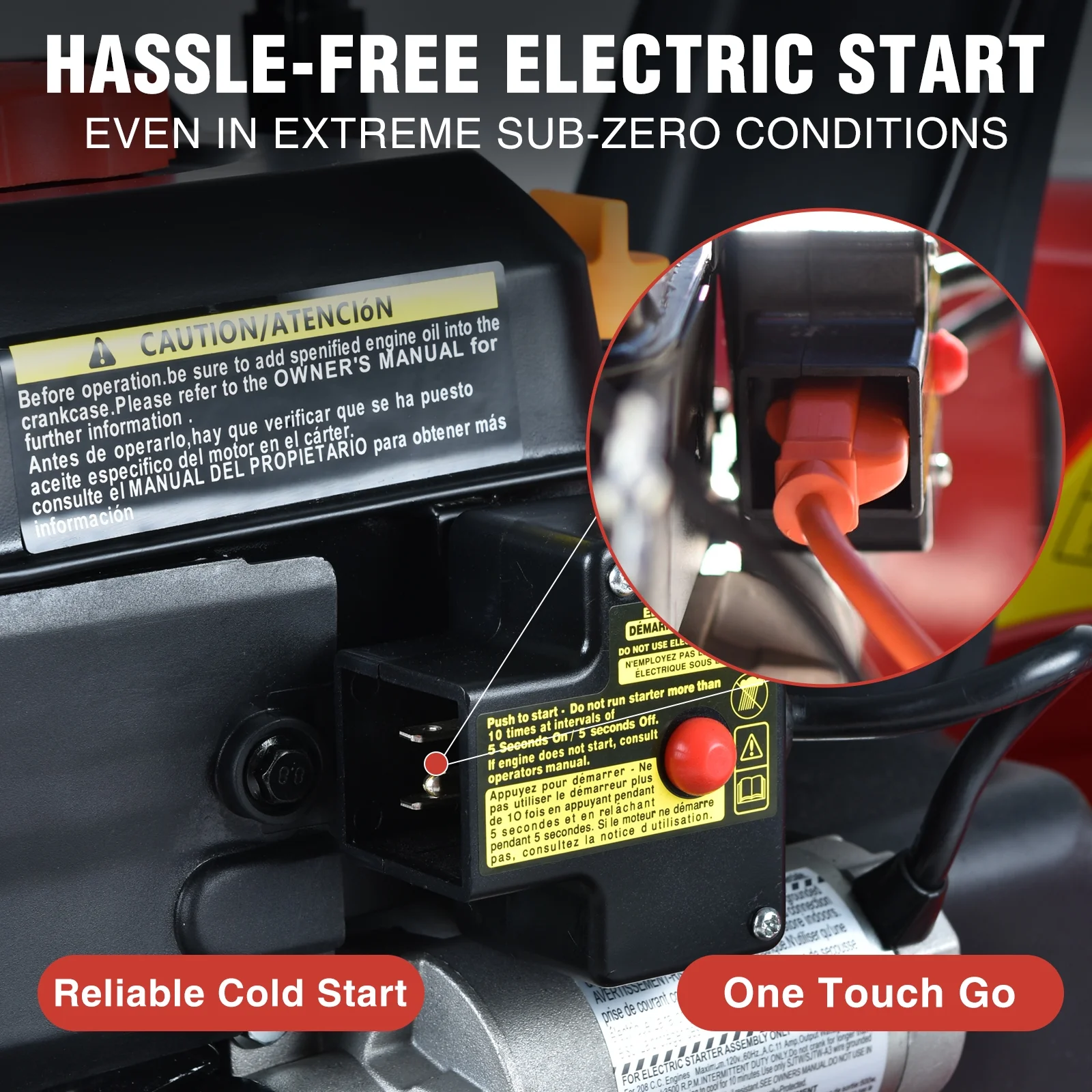 - Effortless Electric Start: Say goodbye to strenuous pull-starts. With the convenient electric ignition, simply plug in and press the button for instant, hassle-free activation.