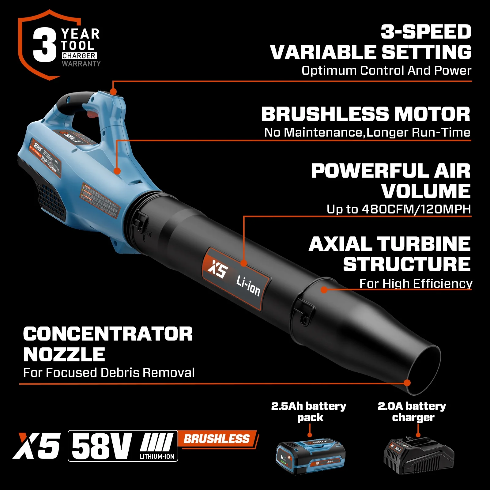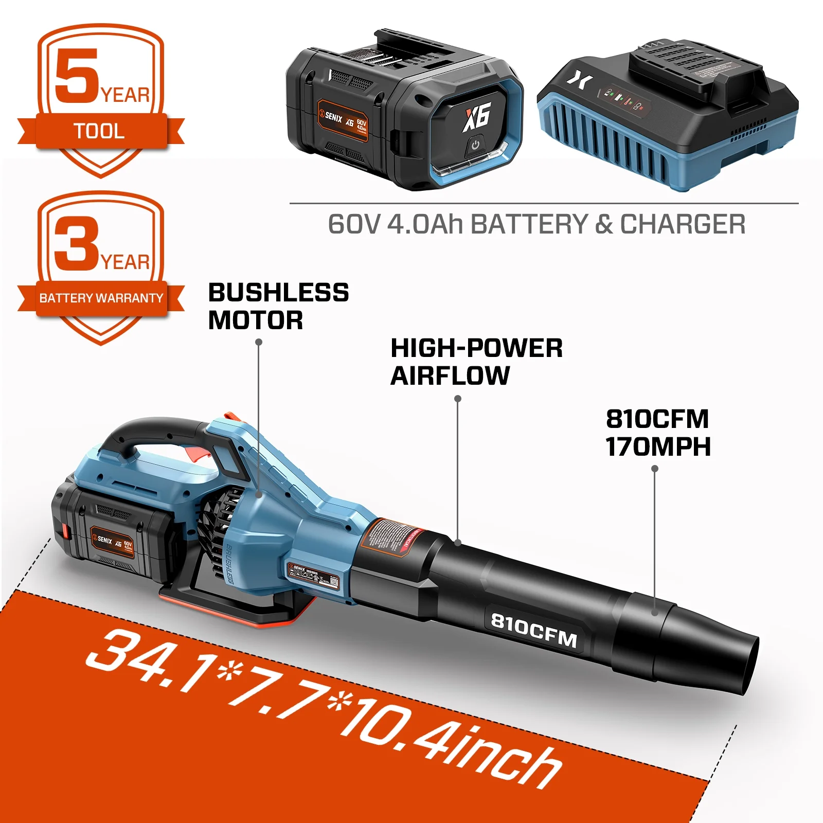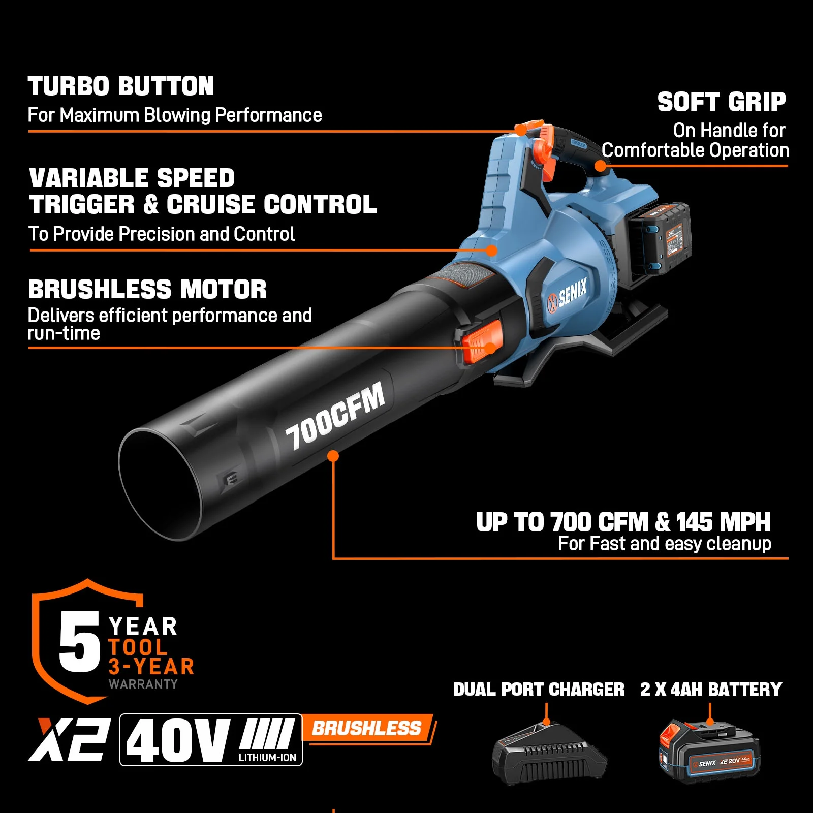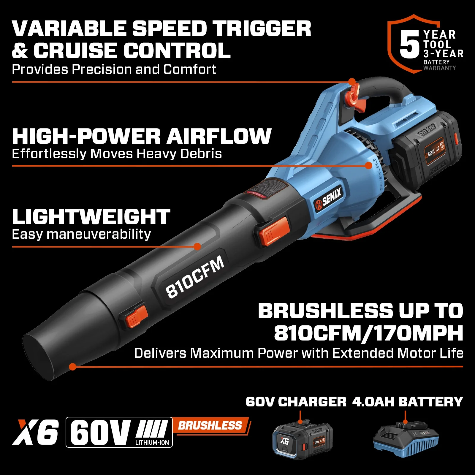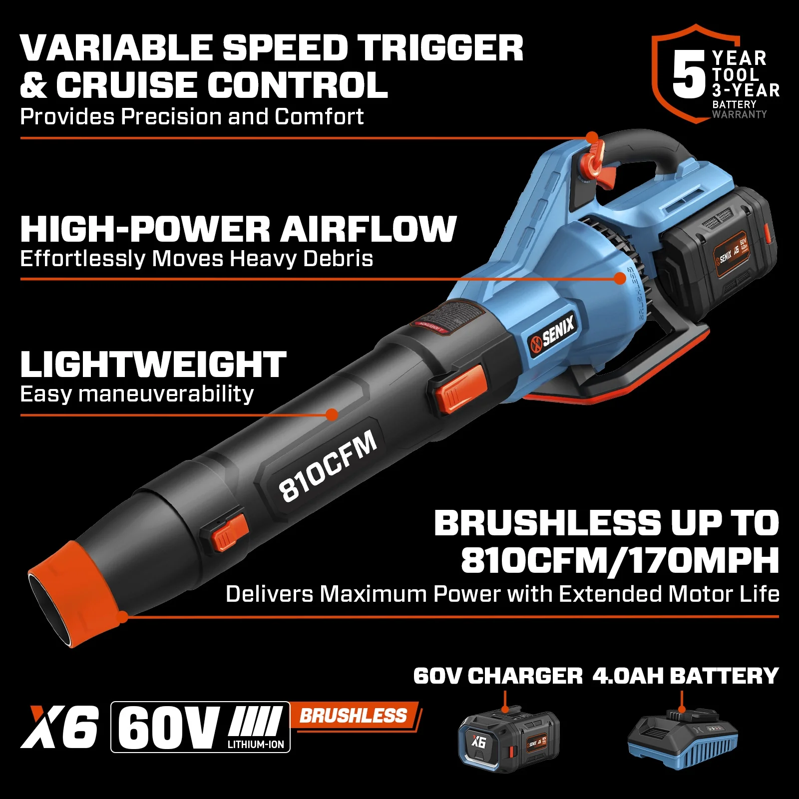 - Includes 1pc 4Ah X6 battery and a 3A charger, ensuring you're ready for any clearing challenge, fit for all SENIX X6 tools