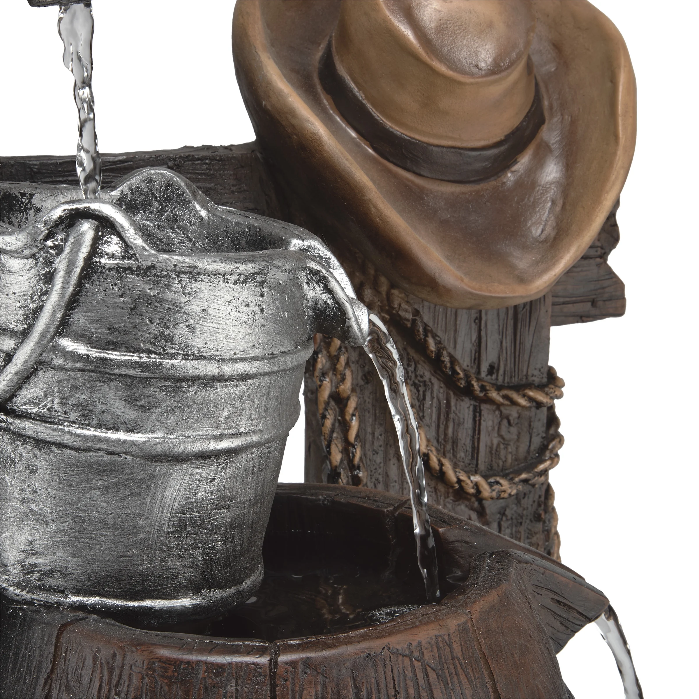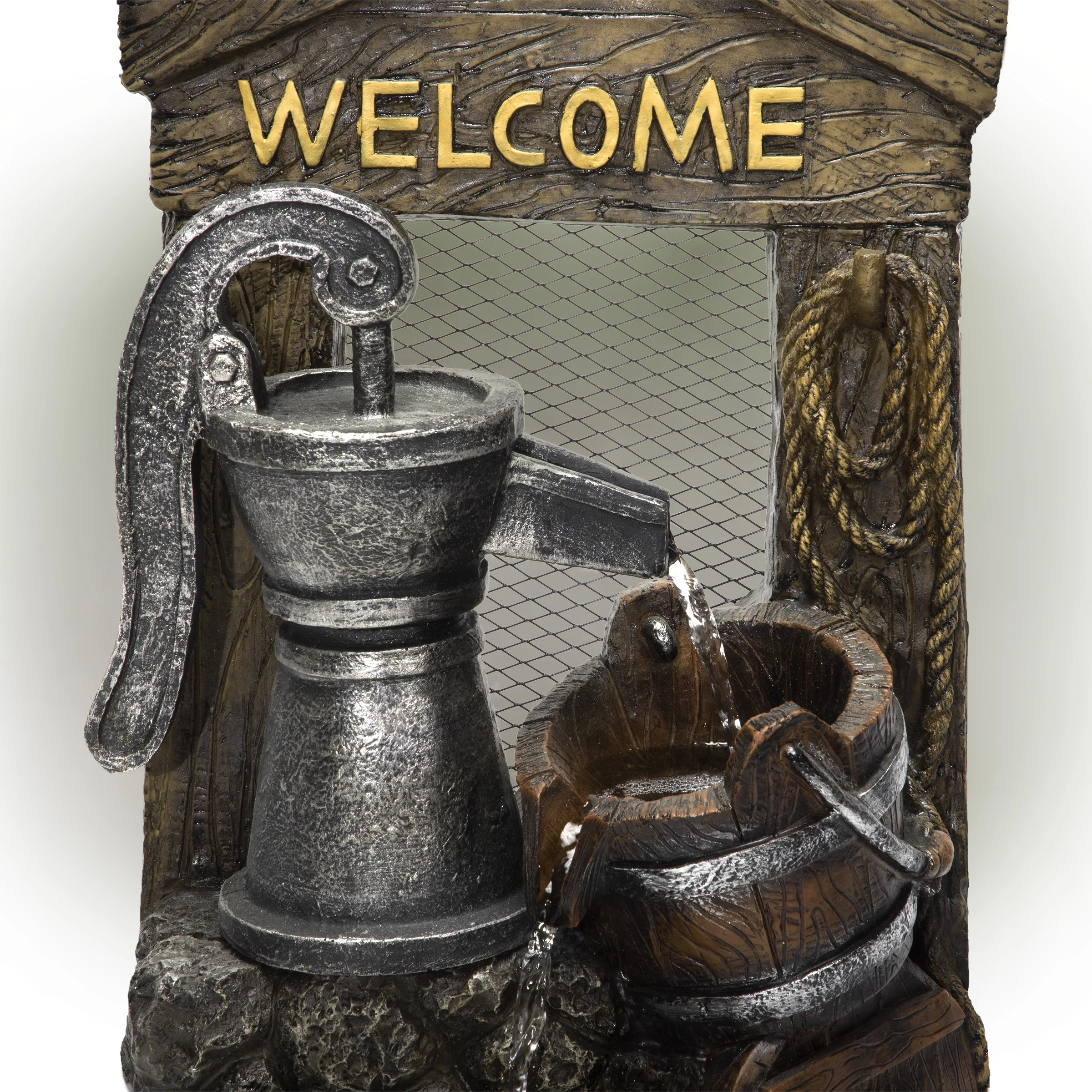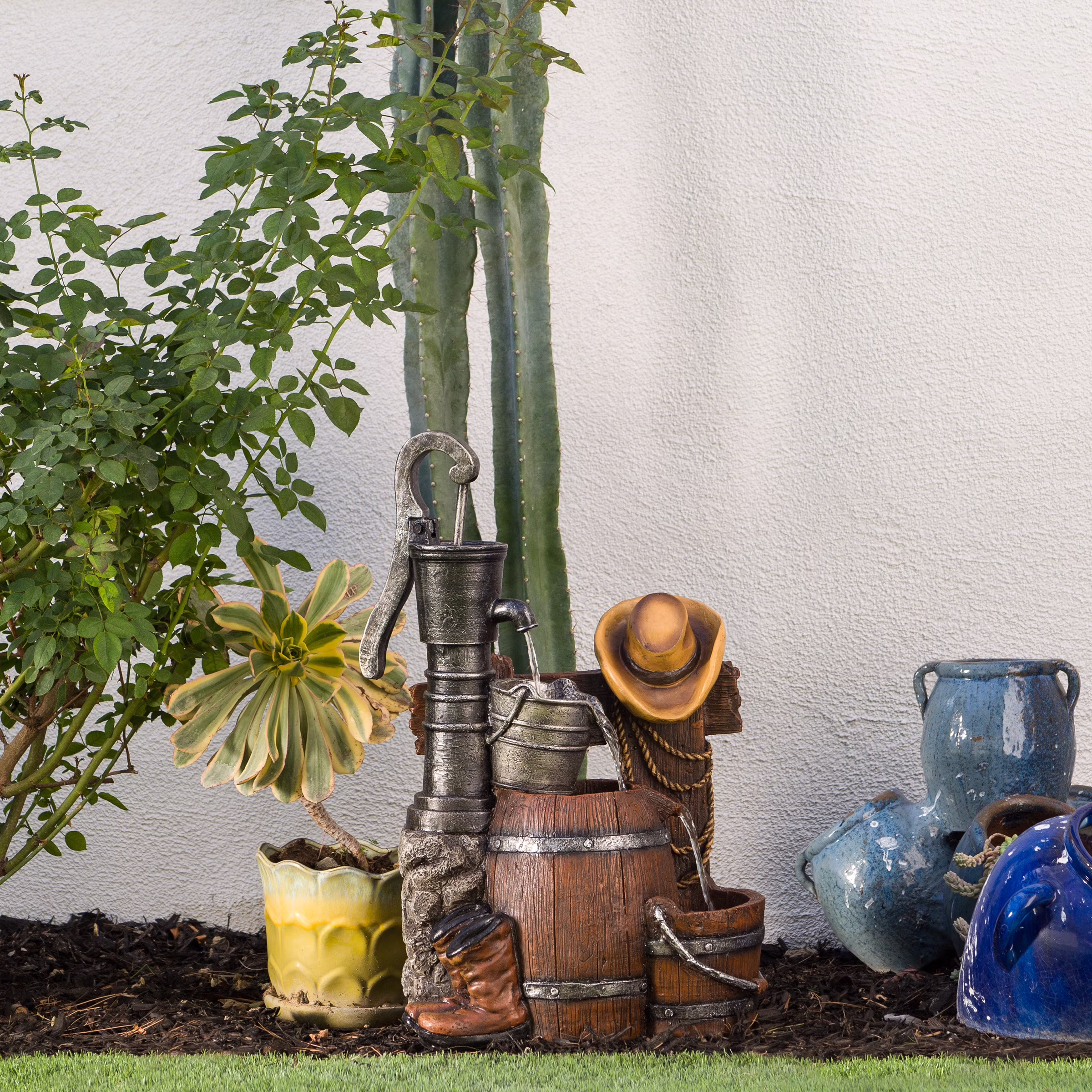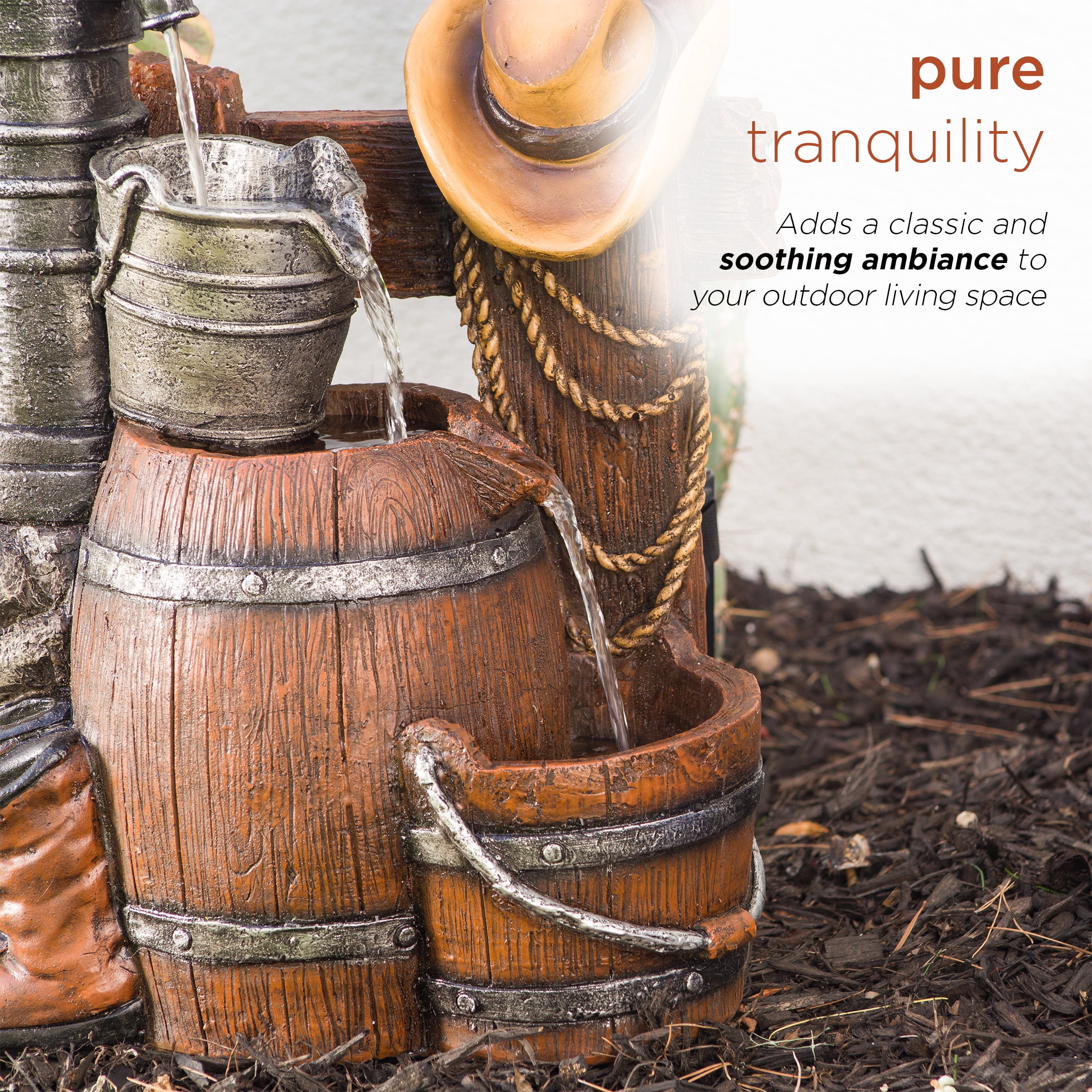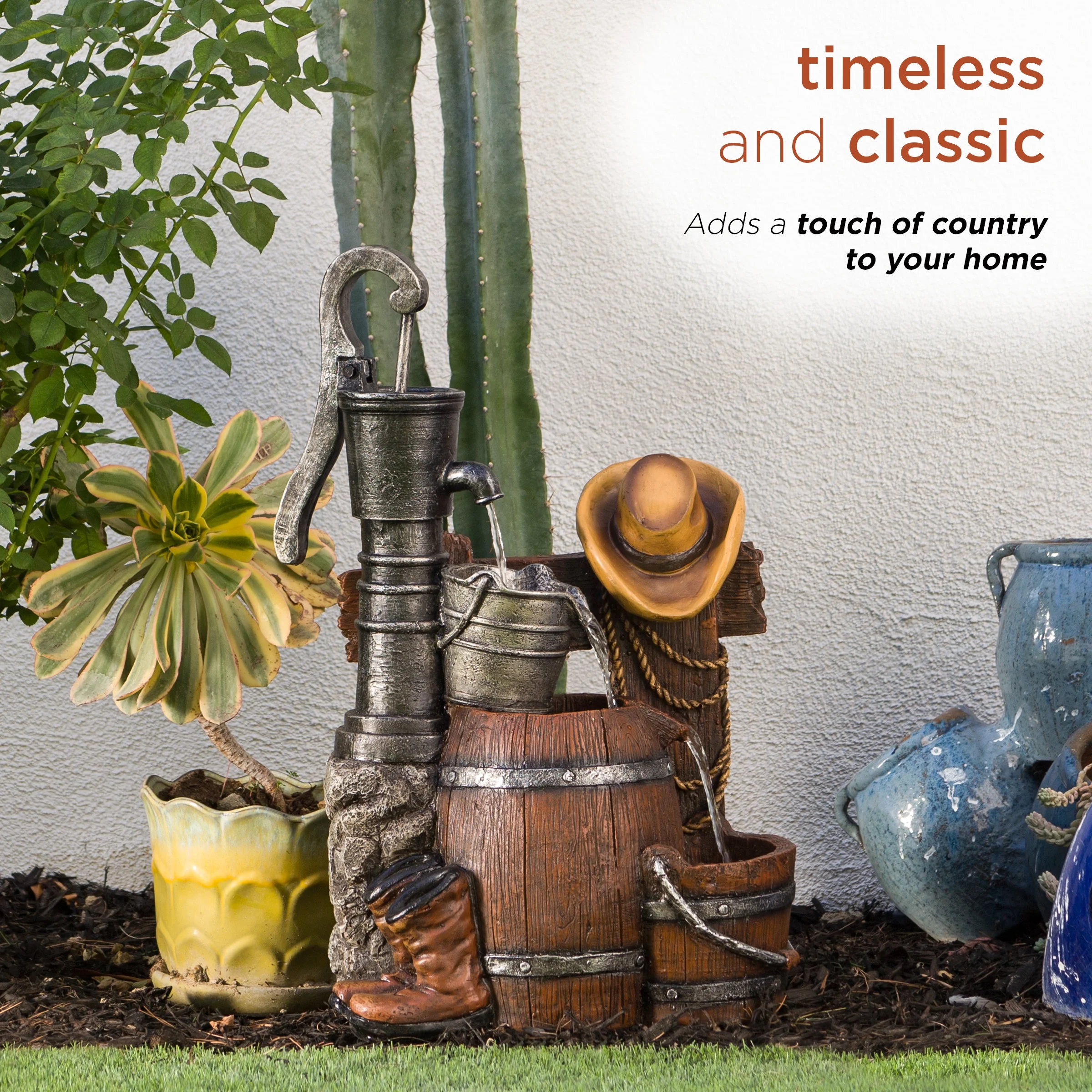 - The design adds a rustic look, while the relaxing, gentle water falling helps to bring in a natural element