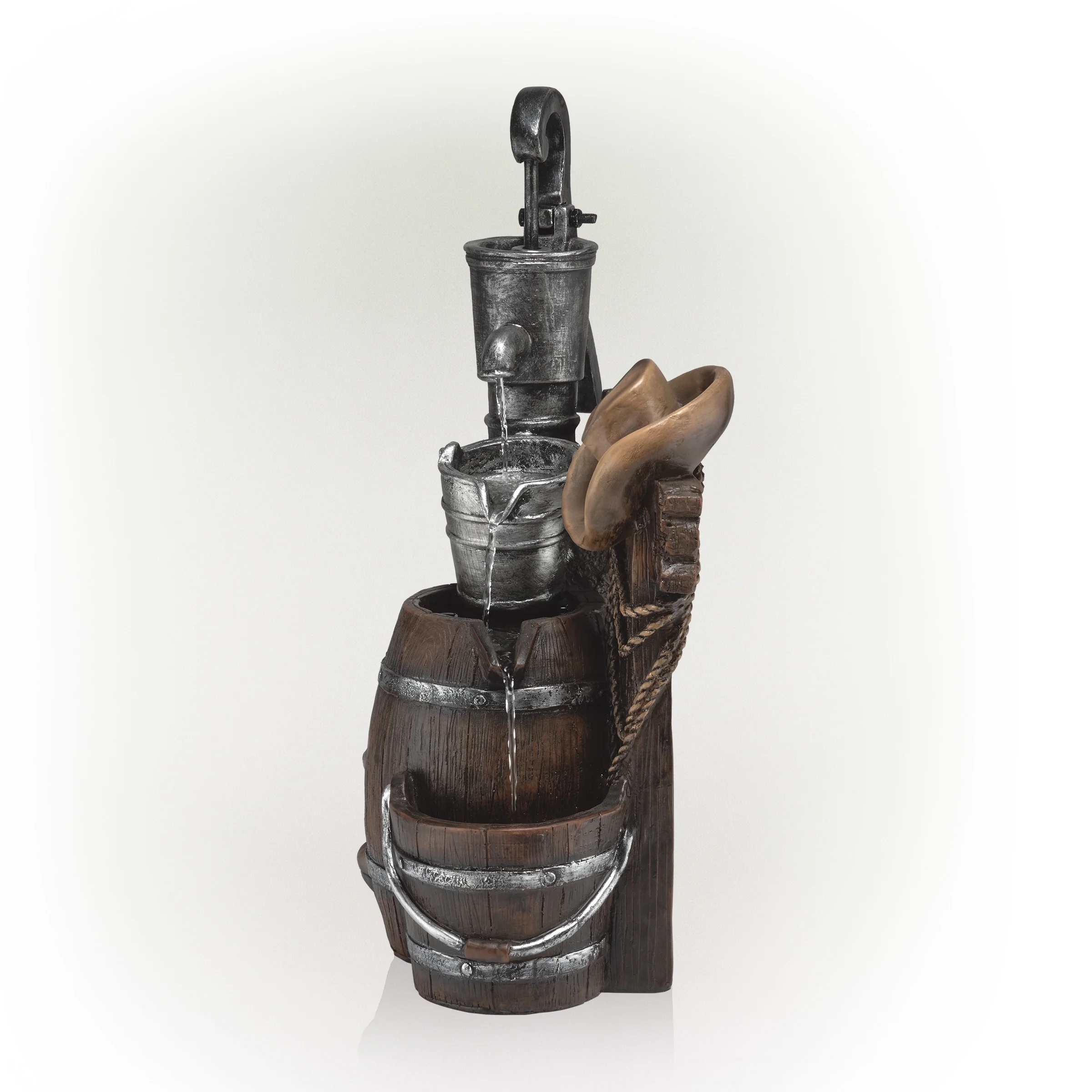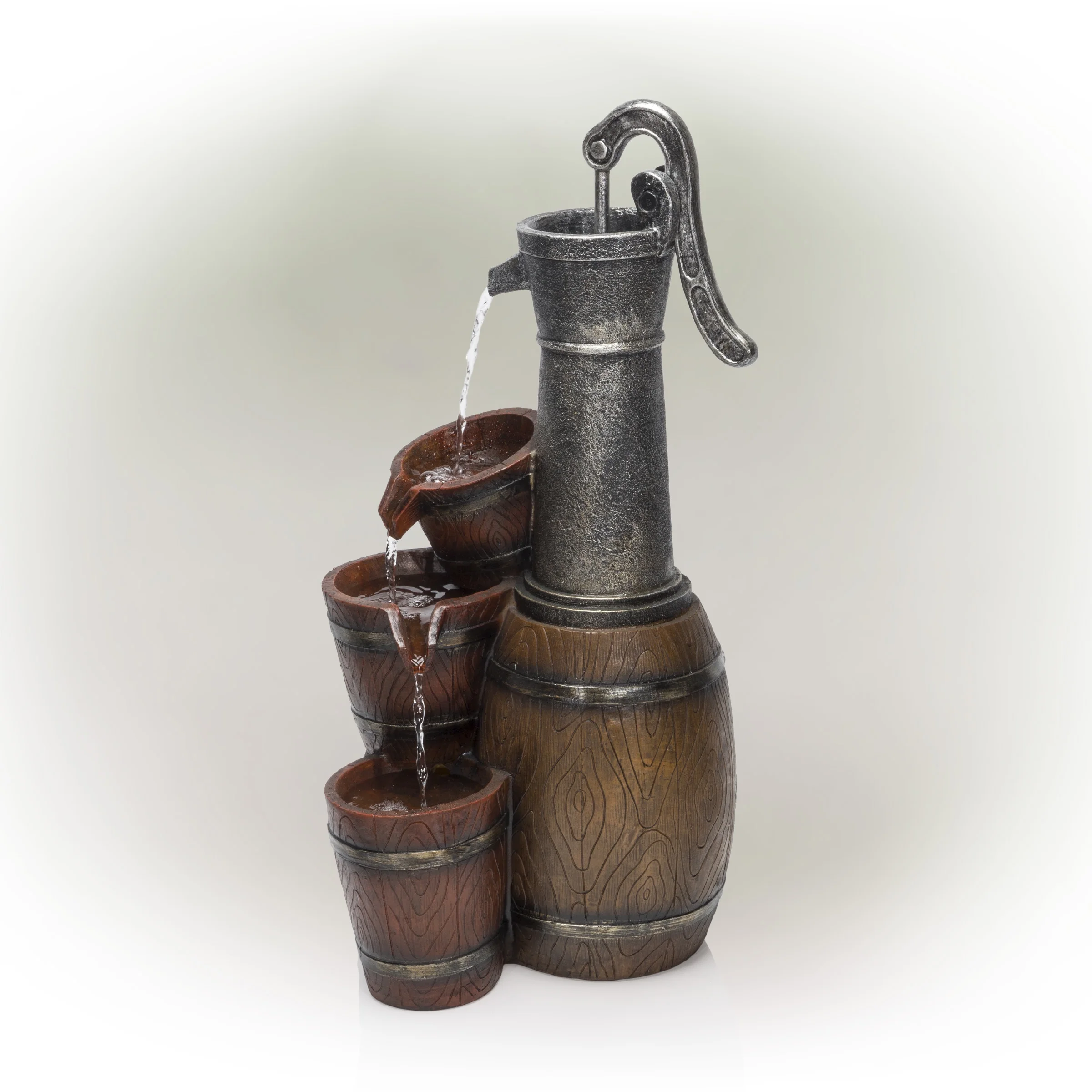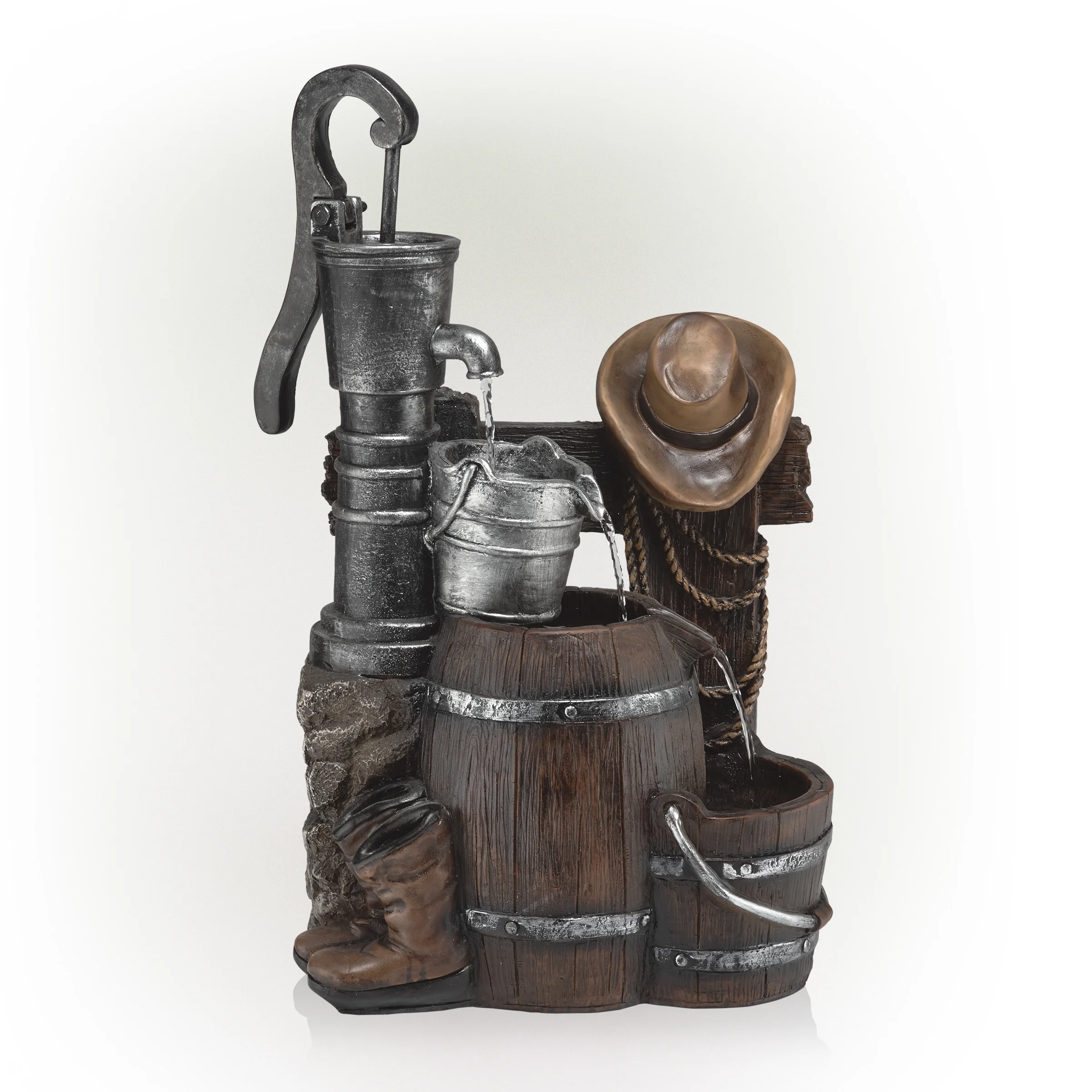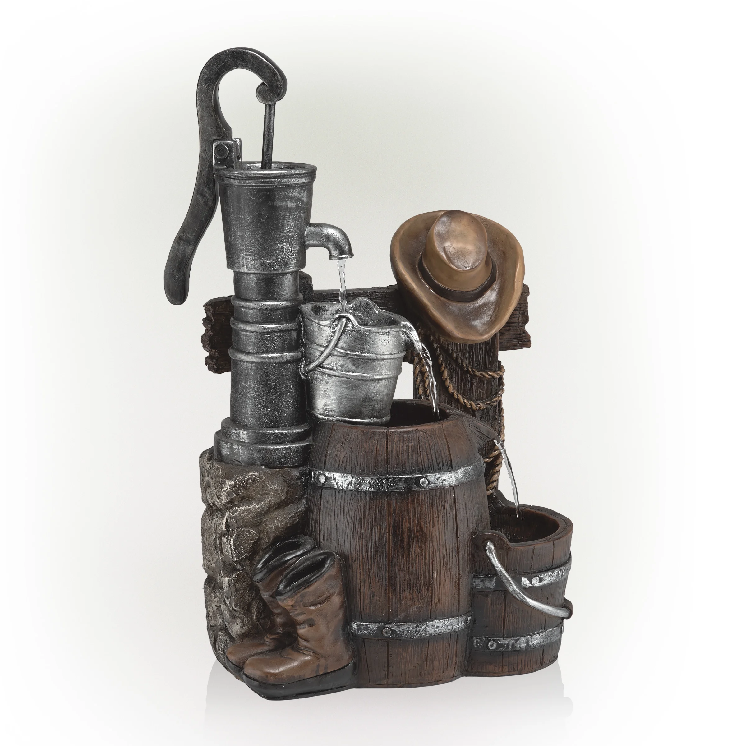- The design adds a rustic look, while the relaxing, gentle water falling helps to bring in a natural element