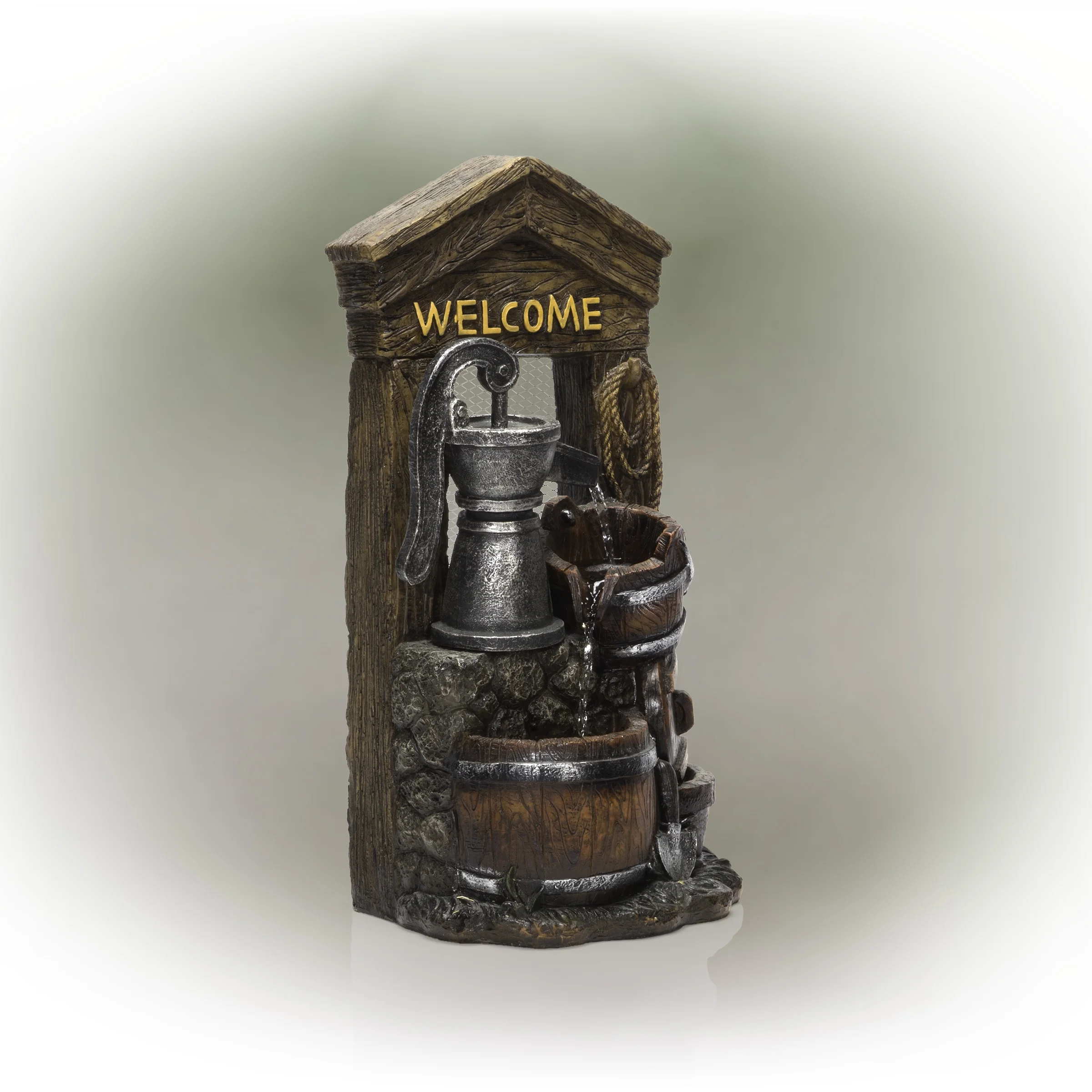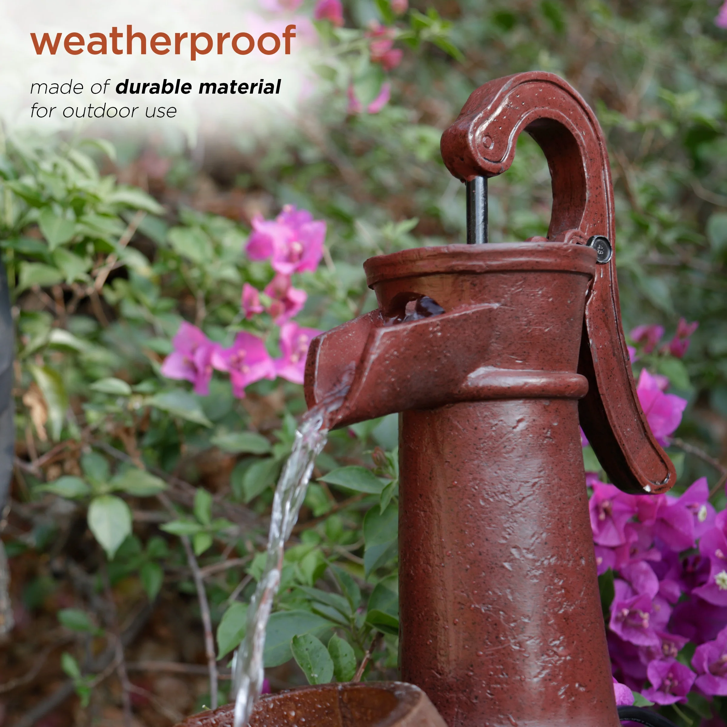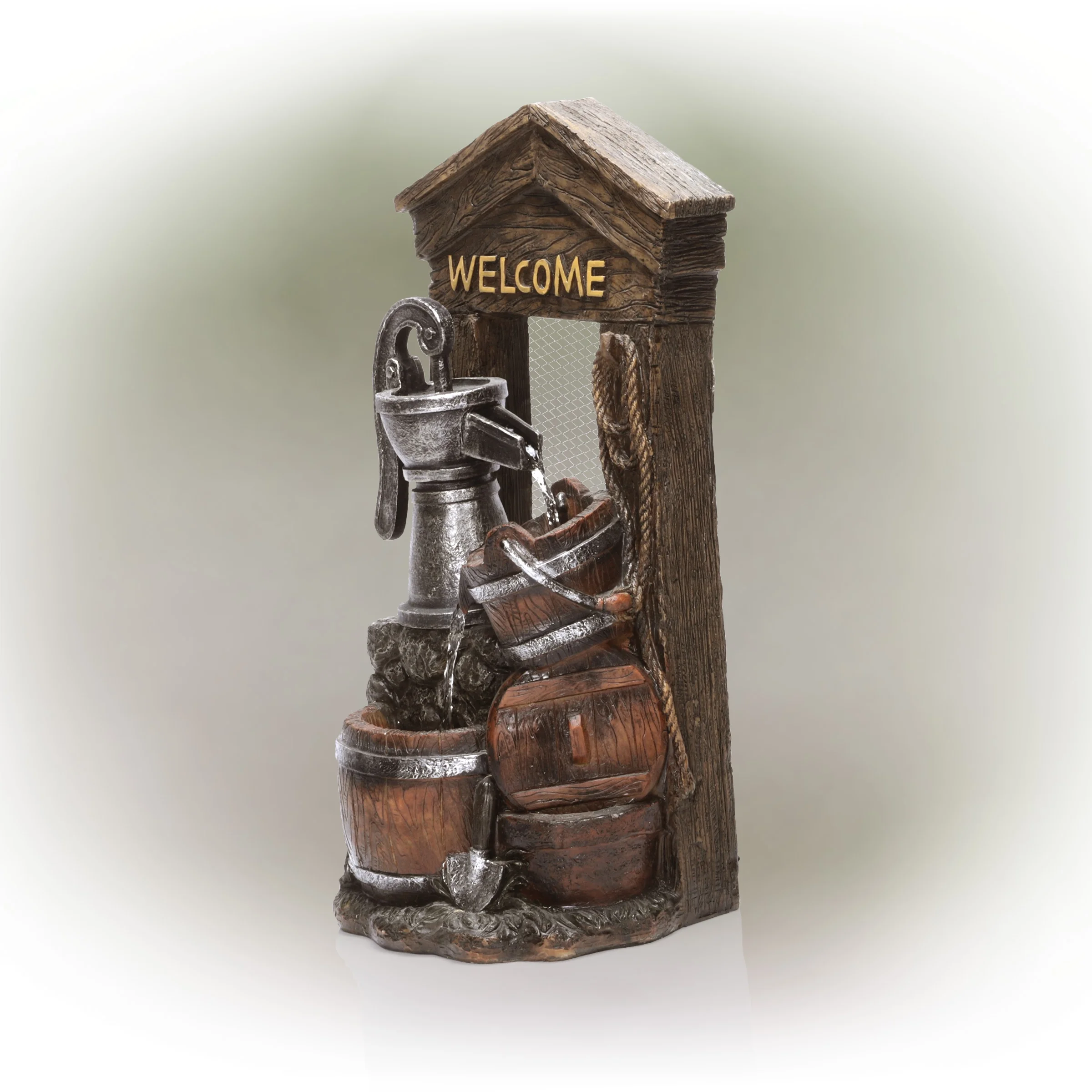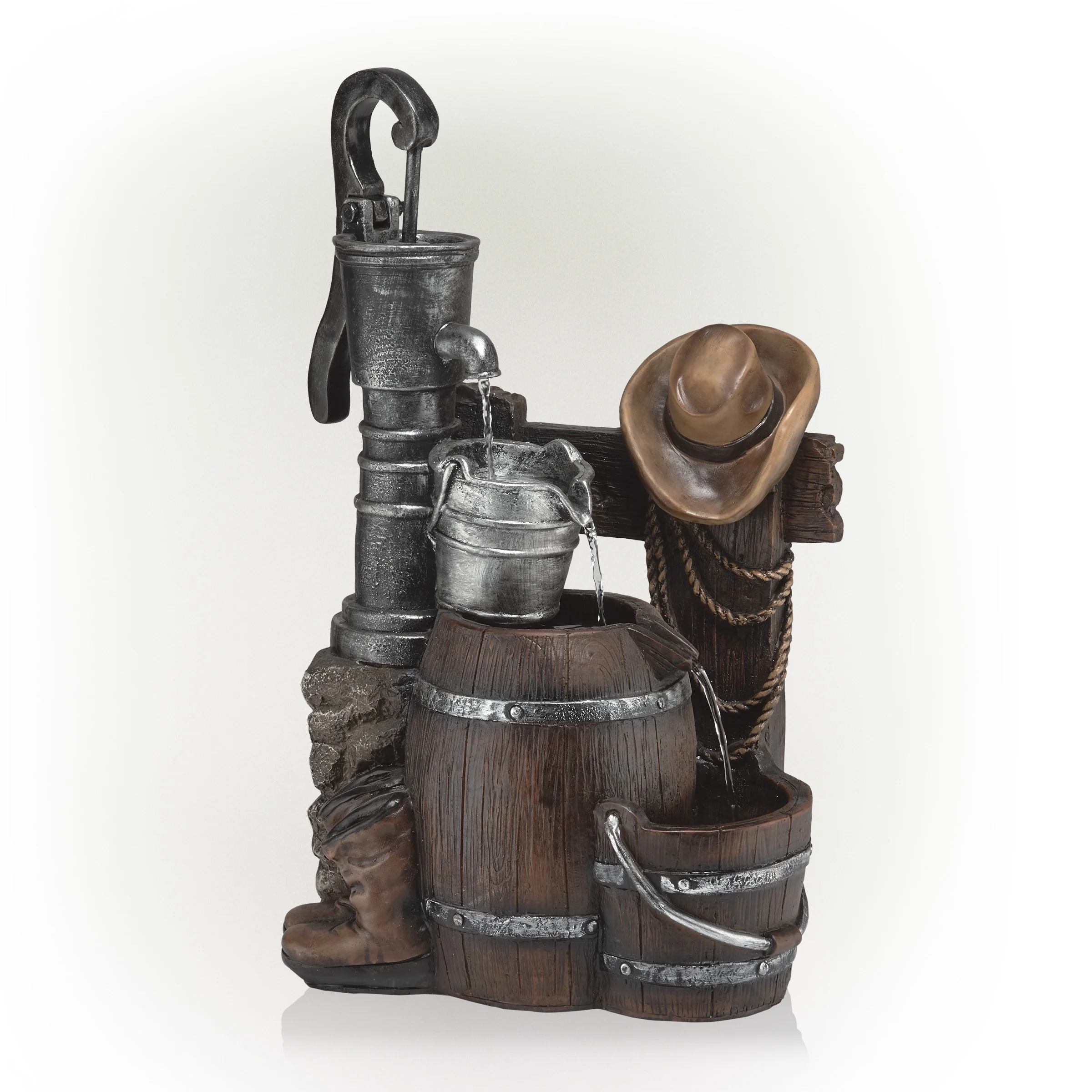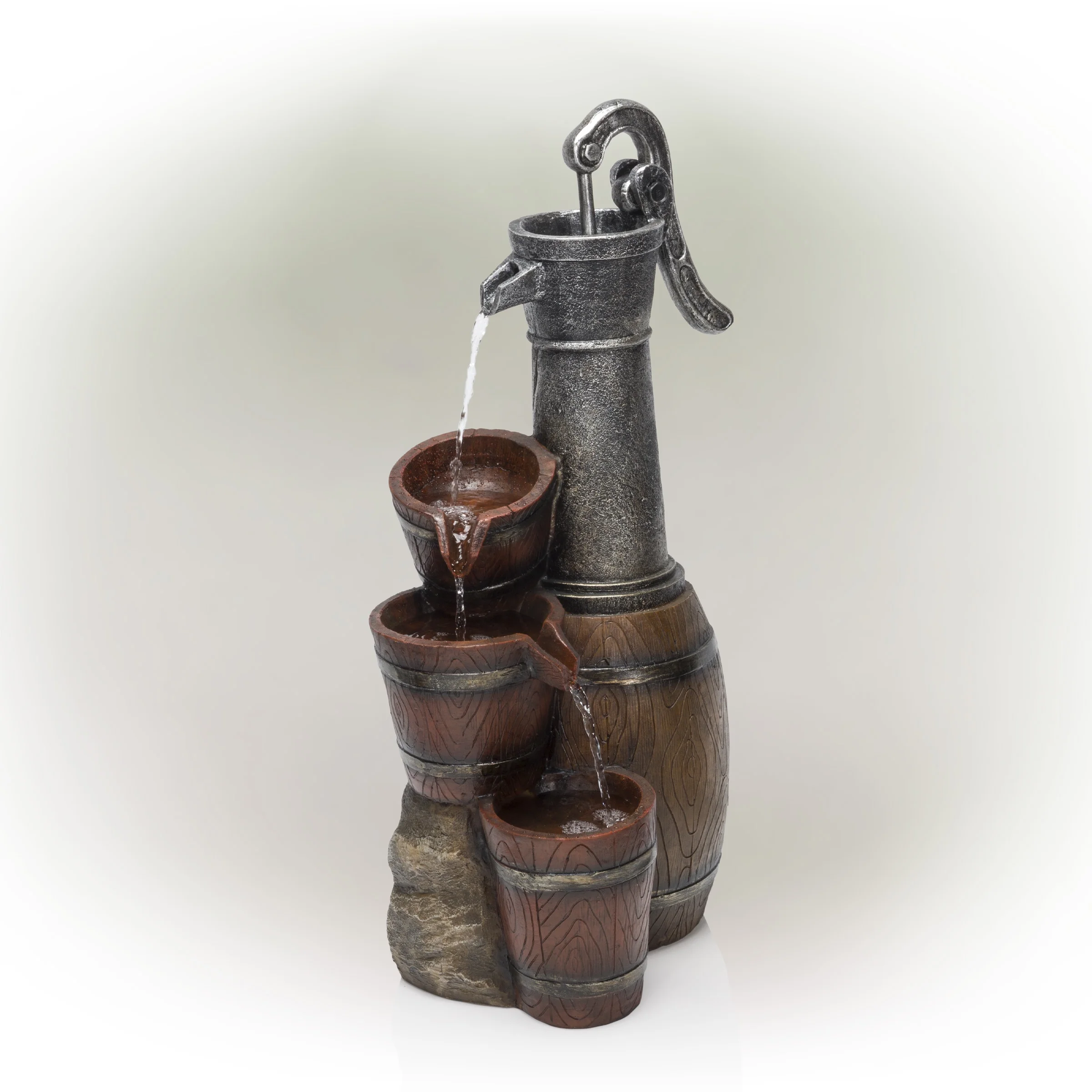 - The design adds a rustic look, while the relaxing, gentle water falling helps to bring in a natural element