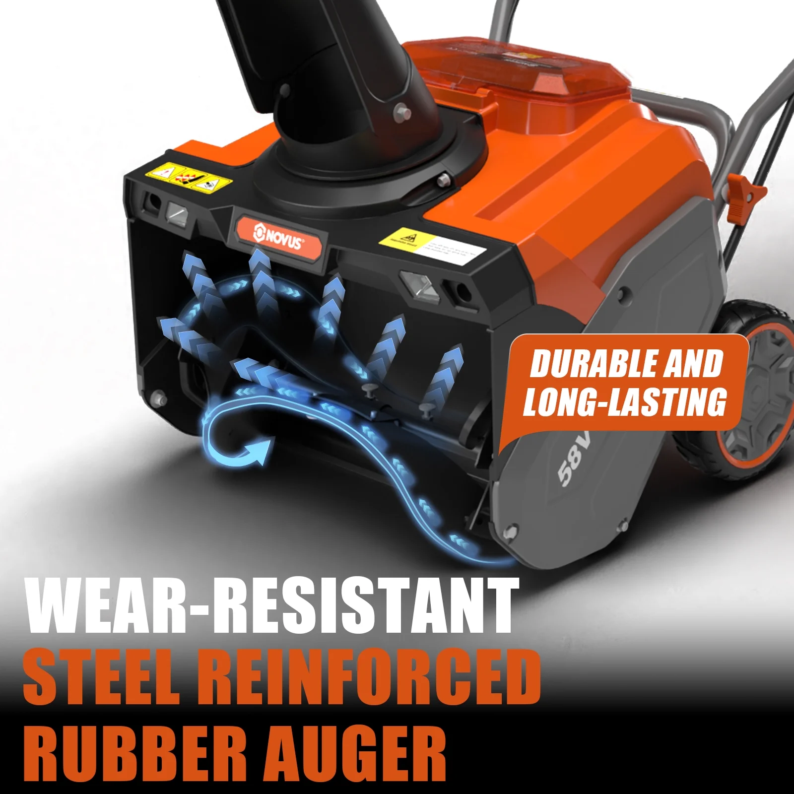- The steel reinforced rubber auger is exceptionally durable and long-lasting. It provides the electric snow blower with the power to grind through compacted snow like larger models, all while maintaining a compact, more maneuverable design.