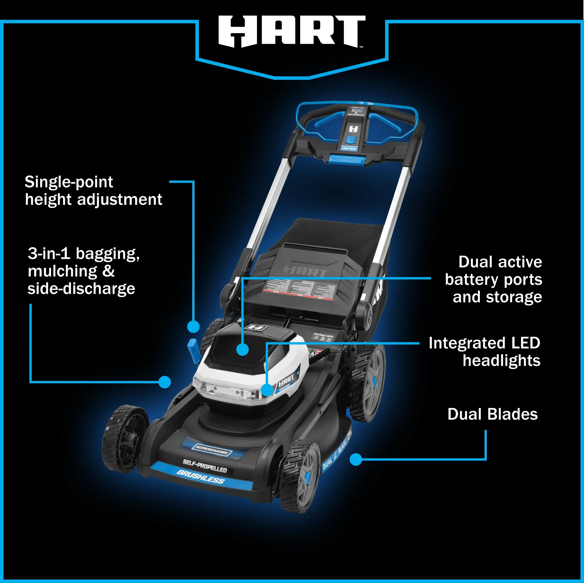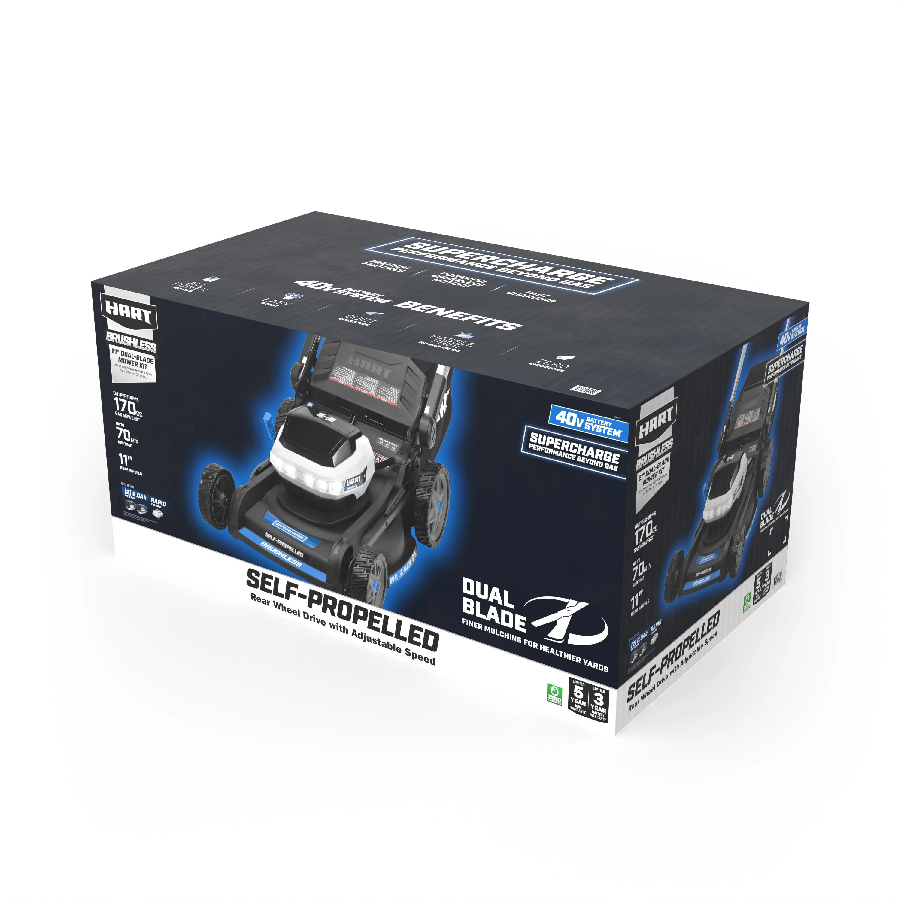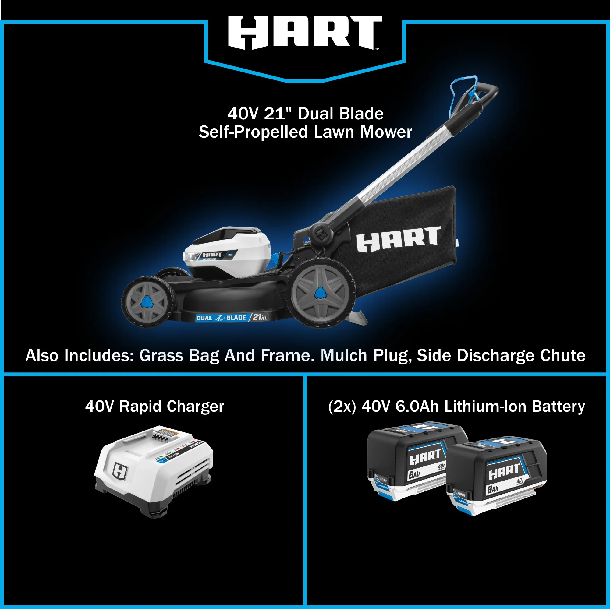 HART 21-inch Supercharge Dual Blade Self-Propelled Mower Kit 40V two 6.0Ah Lithium-Ion Batteries