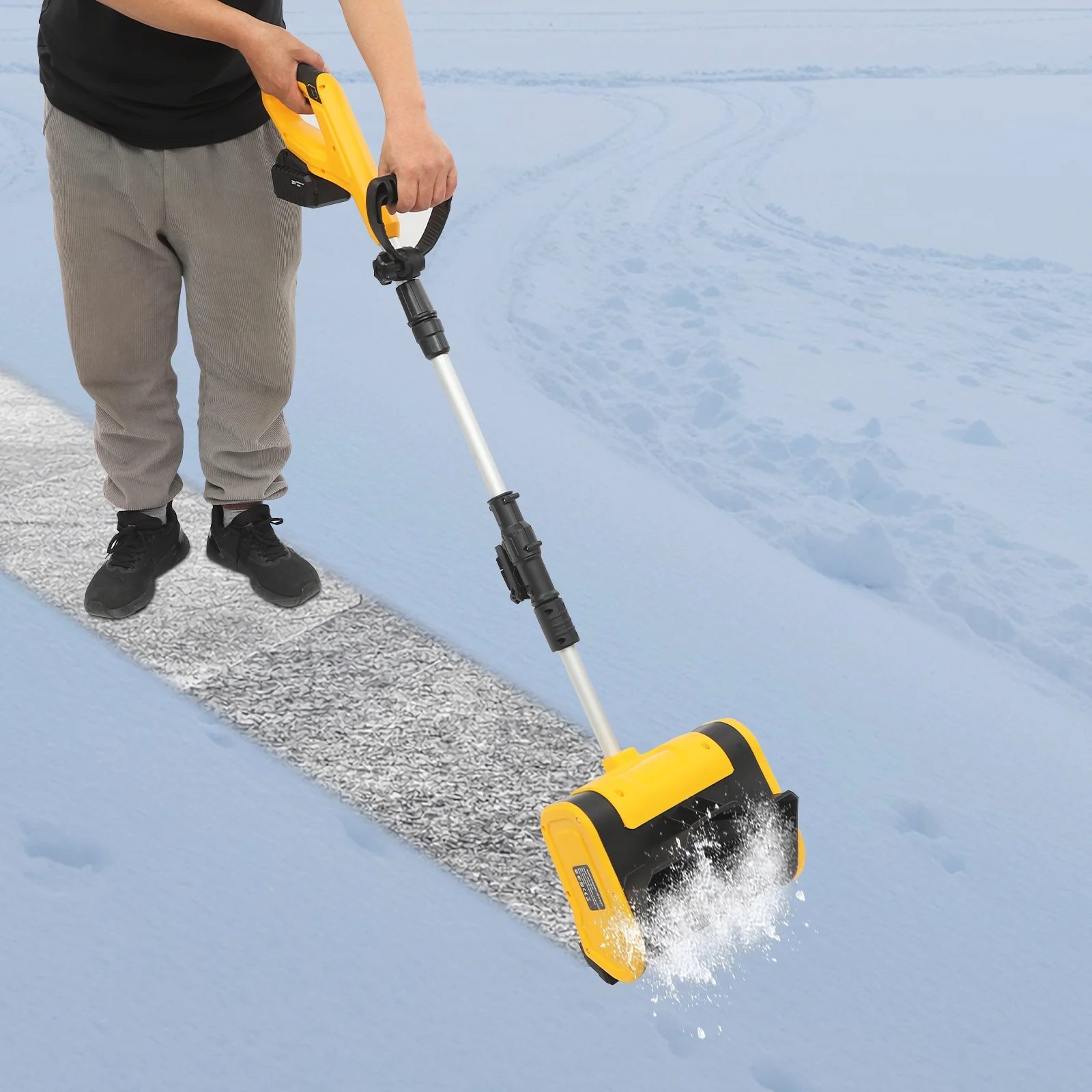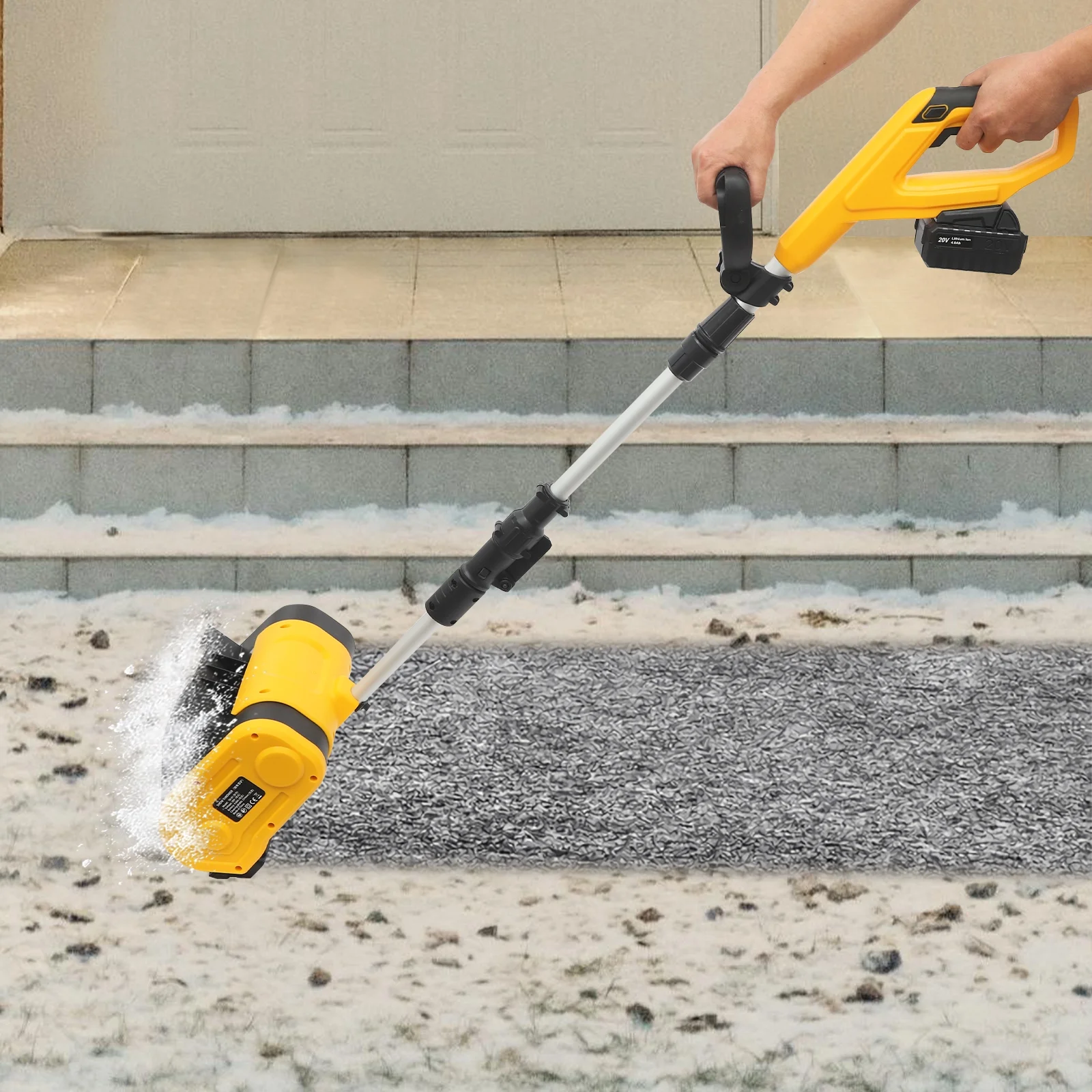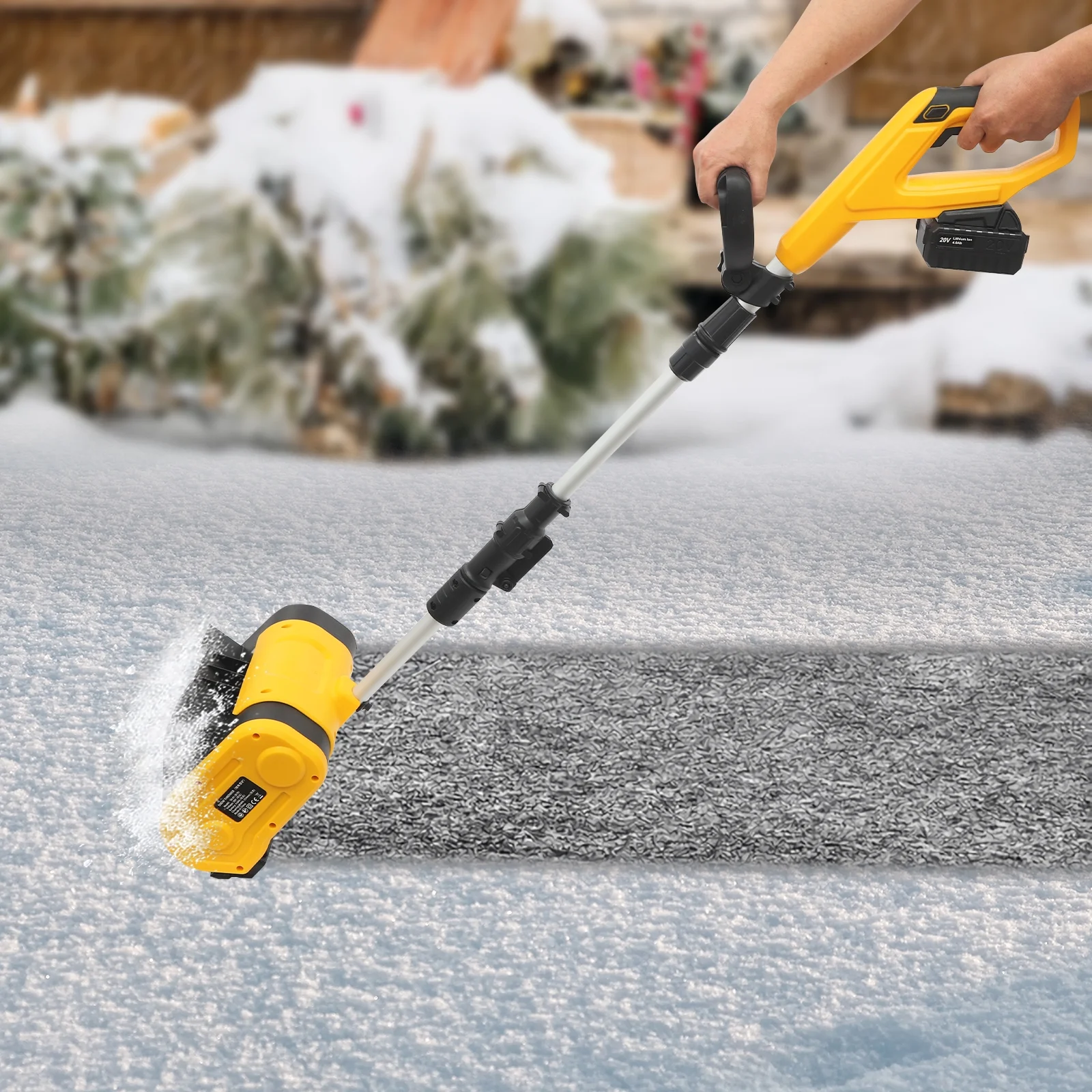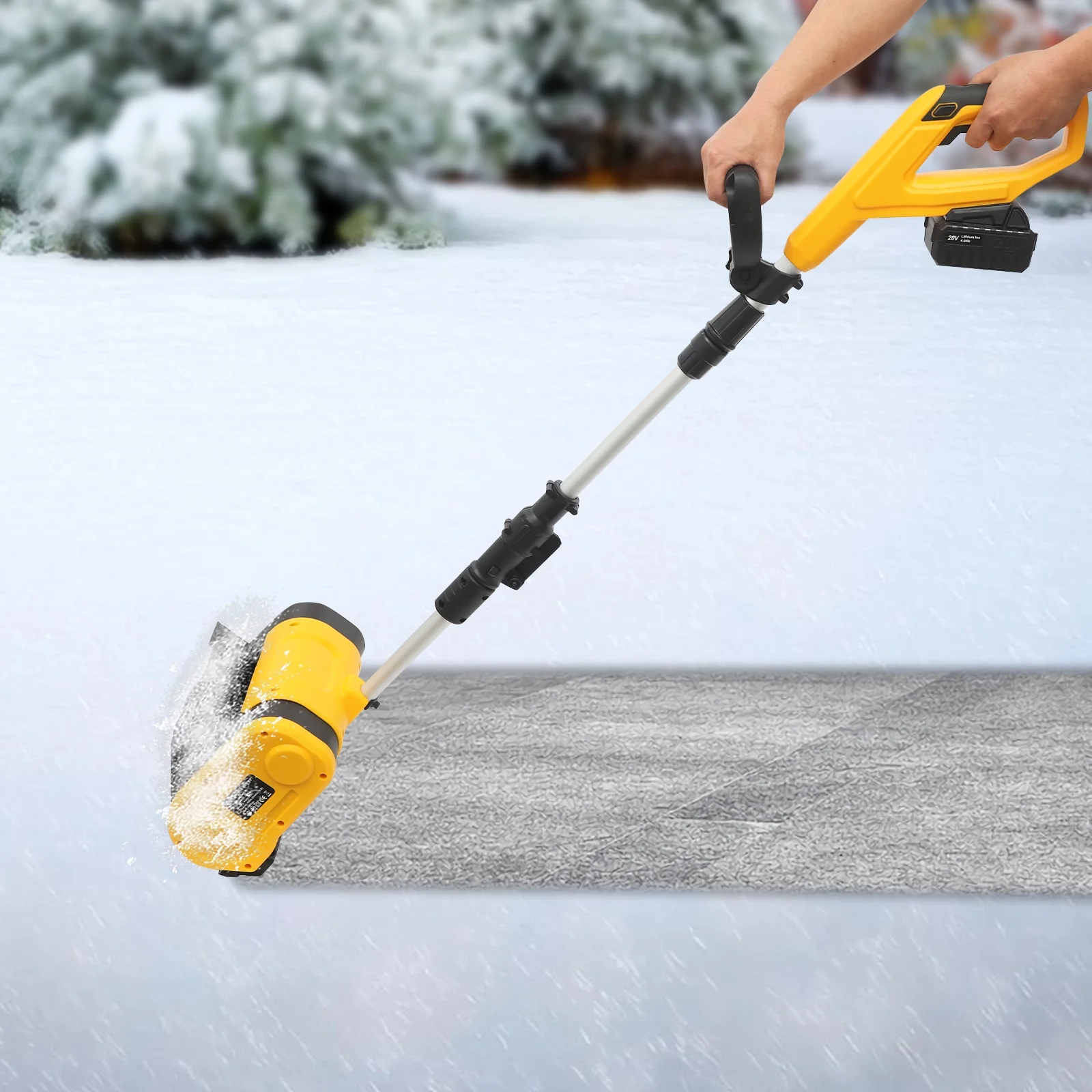 Are you still worried about the thick piles of snow? Our cordless snow shovel can solve your troubles. The premium materials make it sturdy and durable. The high-power copper wire motor, and widened and thickened nylon roller brush enable you to efficiently remove snow. The ergonomic handles provide you with a comfortable user experience. In short, it is your ideal assistant for quickly and easily clearing snow.